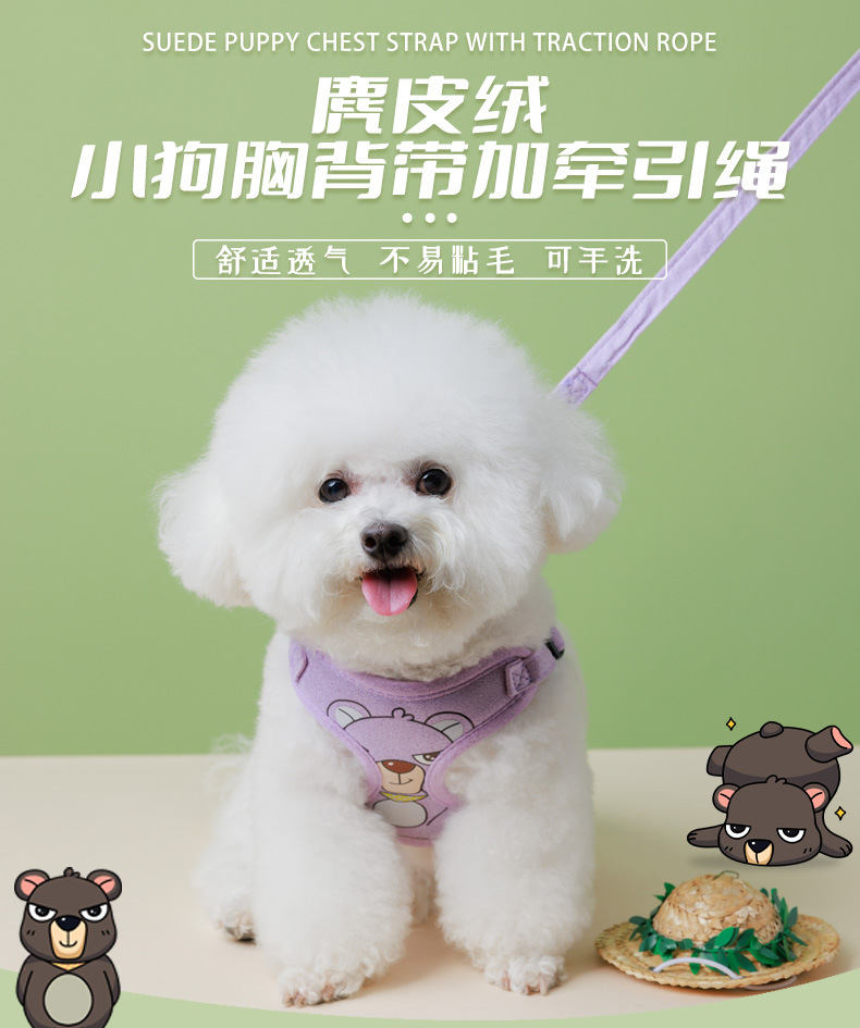 Cross-border hot-selling dog leash, harness type, small dog cartoon printed cat and dog universal rope, pet chest strap. dog toy