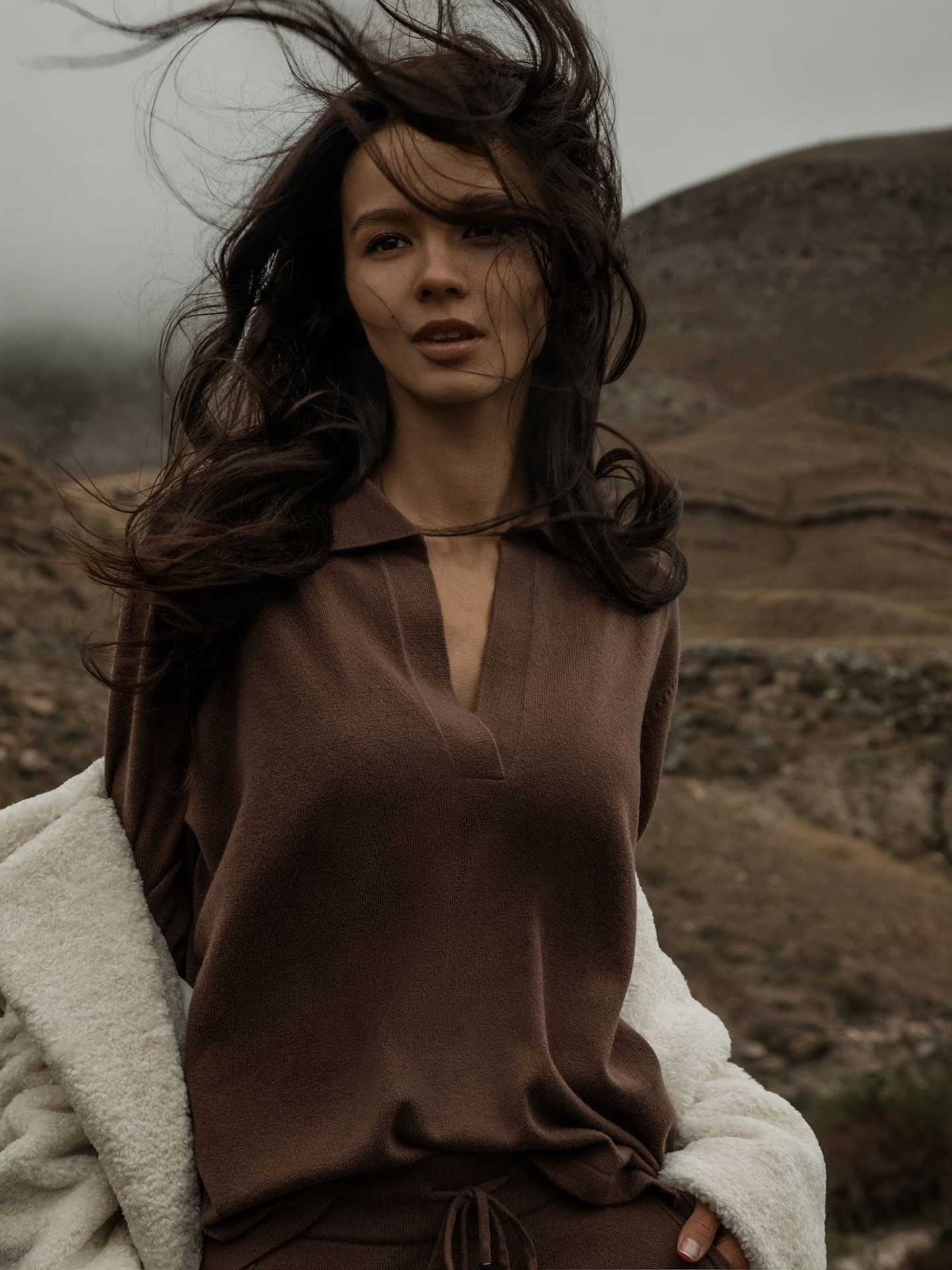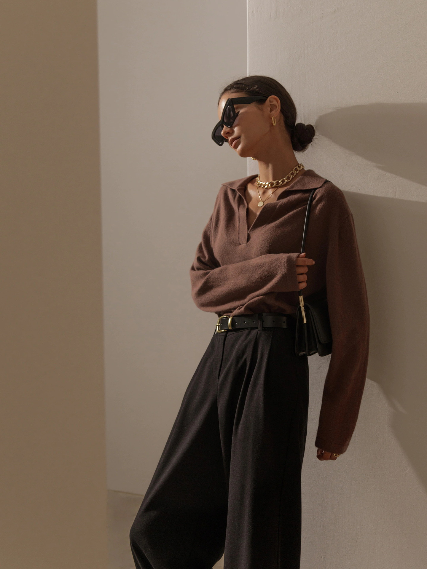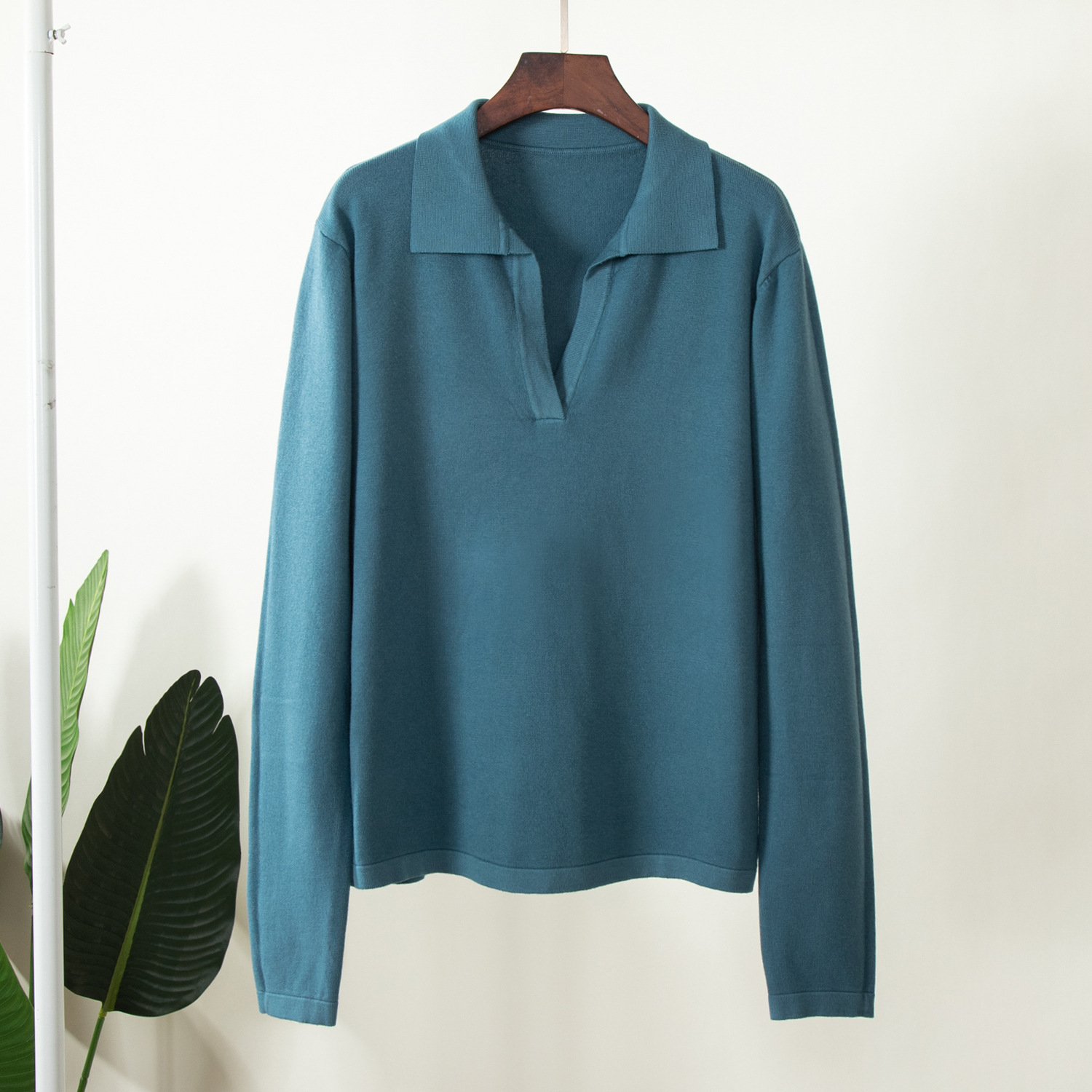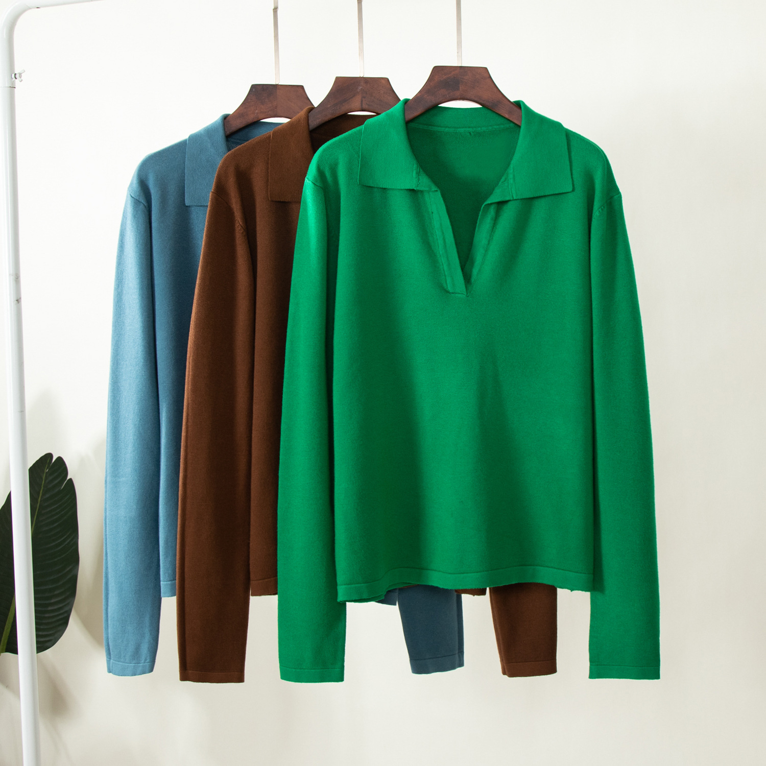 Polo neck sweater European, American autumn and winter Amazon casual versatile lapel knitted pullover sweater women