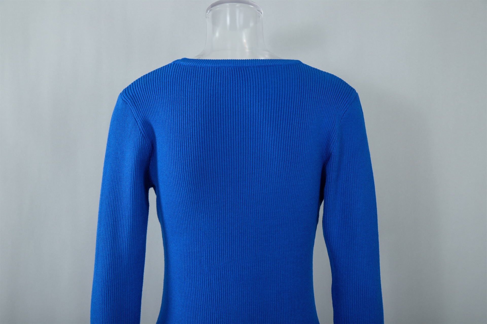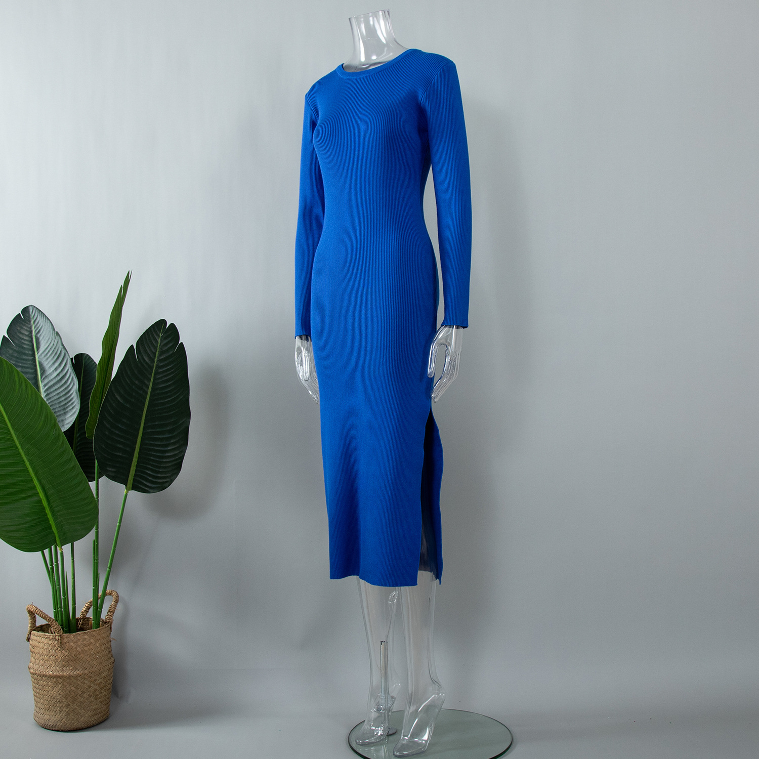 Crew neck split knitted dress European and American autumn and winter temperament versatile solid color high waist tight dress