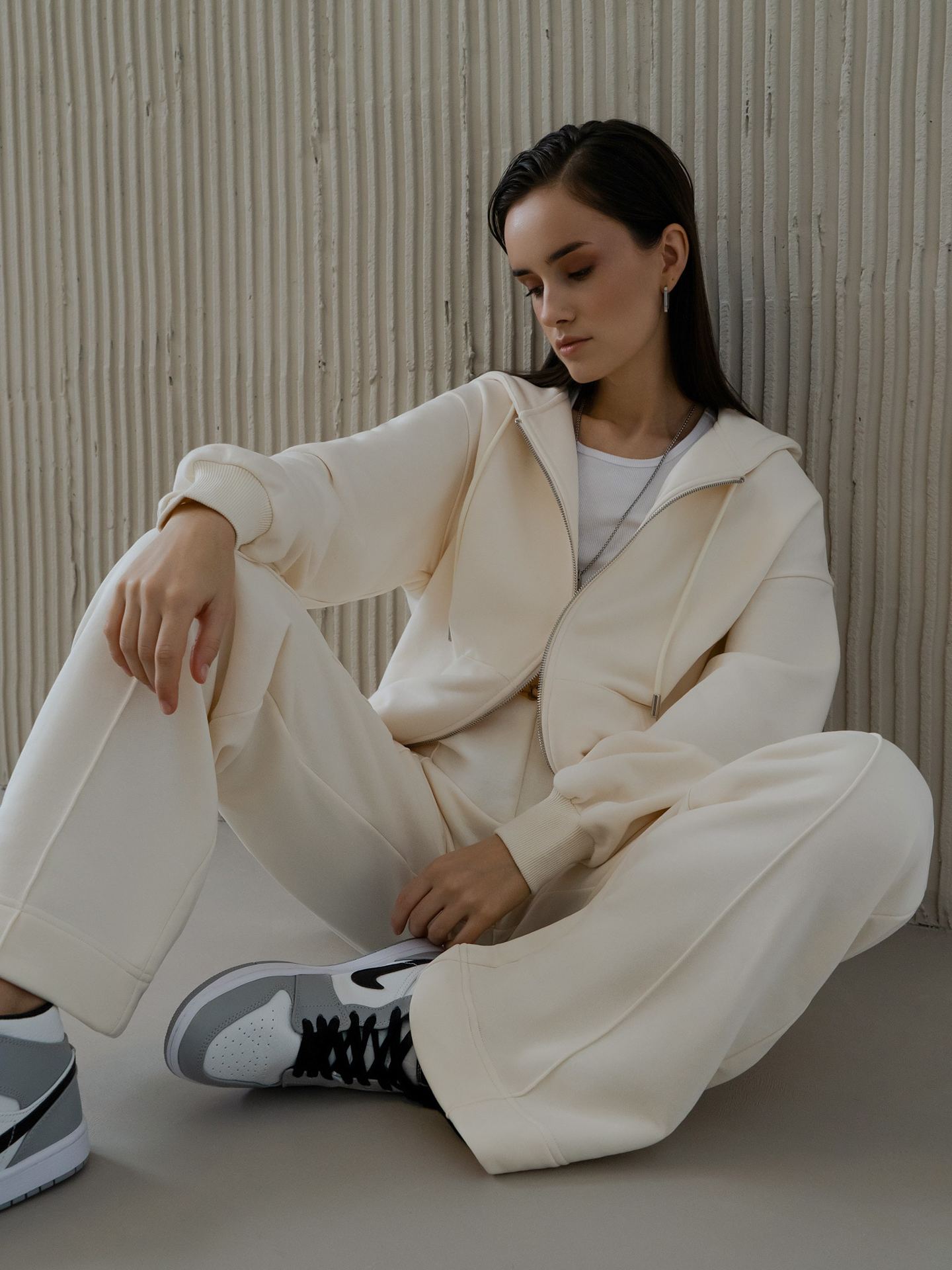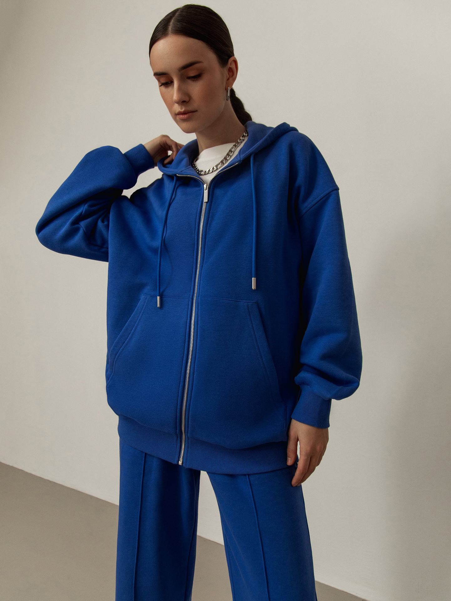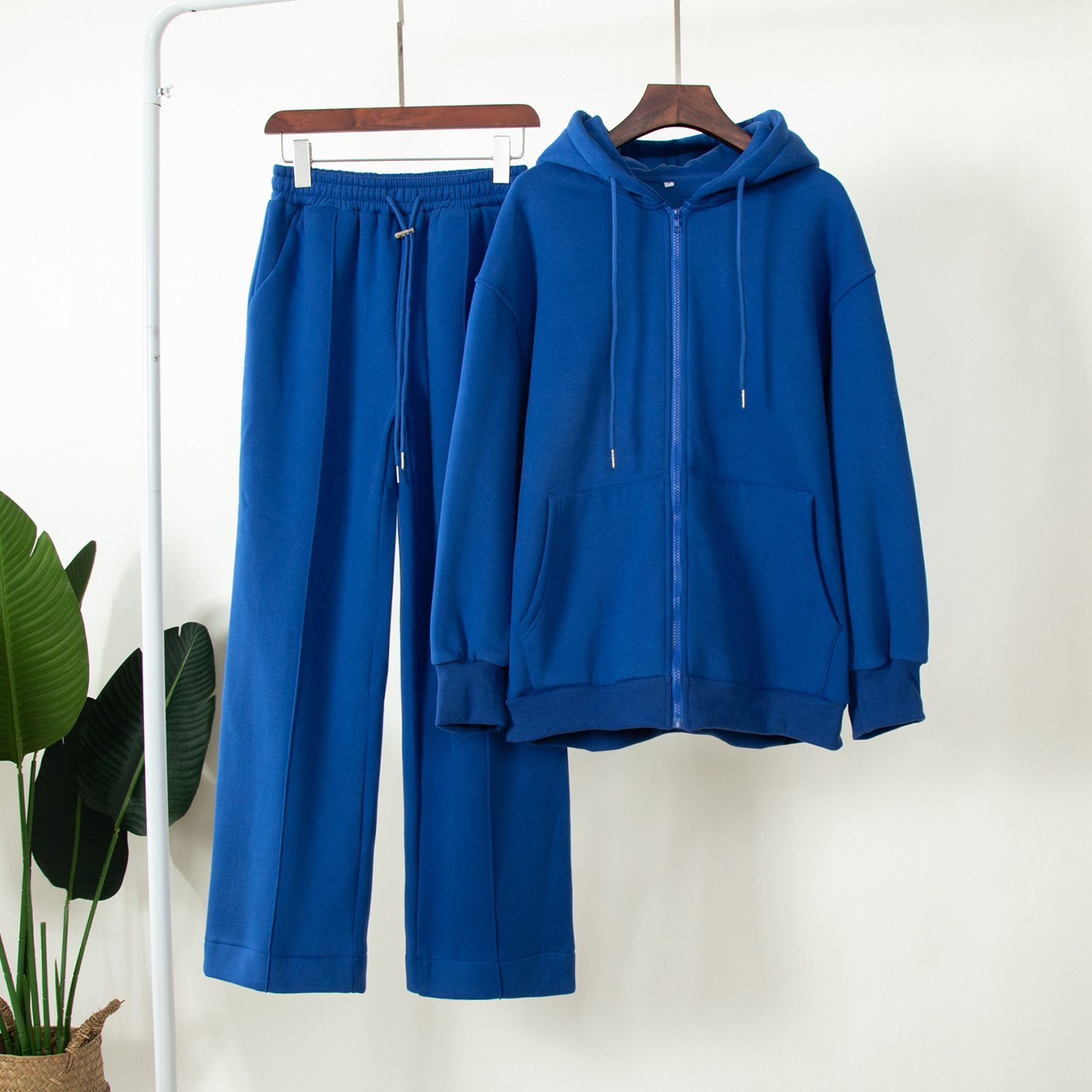 Zipper sweater set European and American autumn and winter fashion simple hoodie jacket + straight pants sweatpants suits