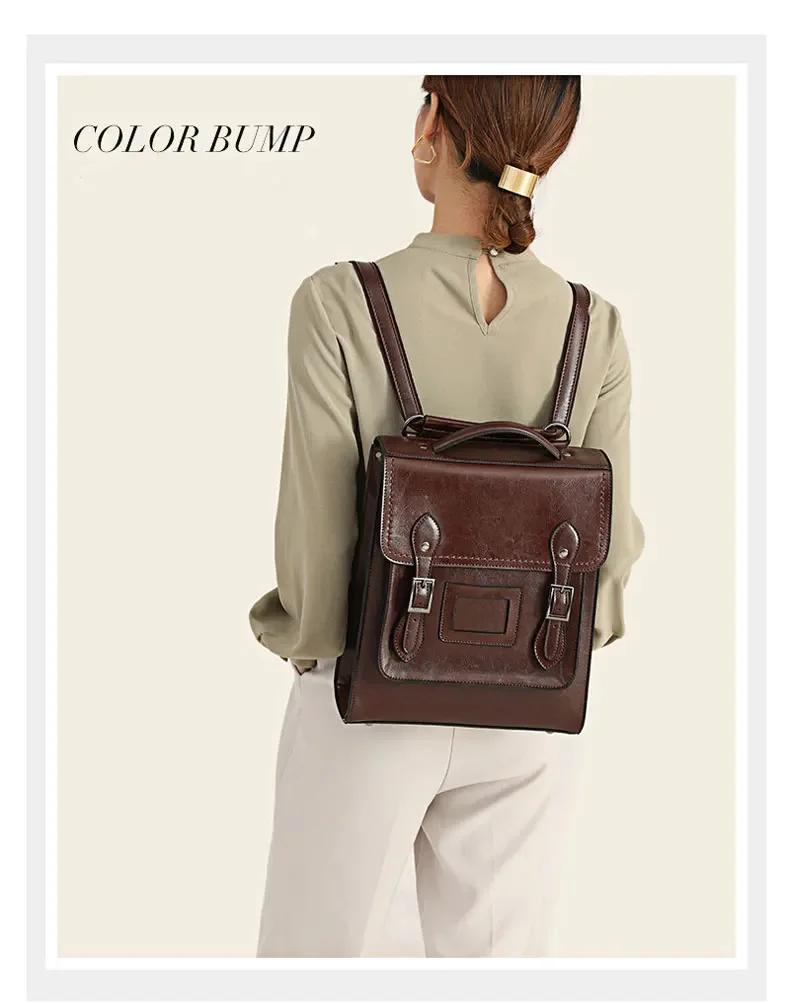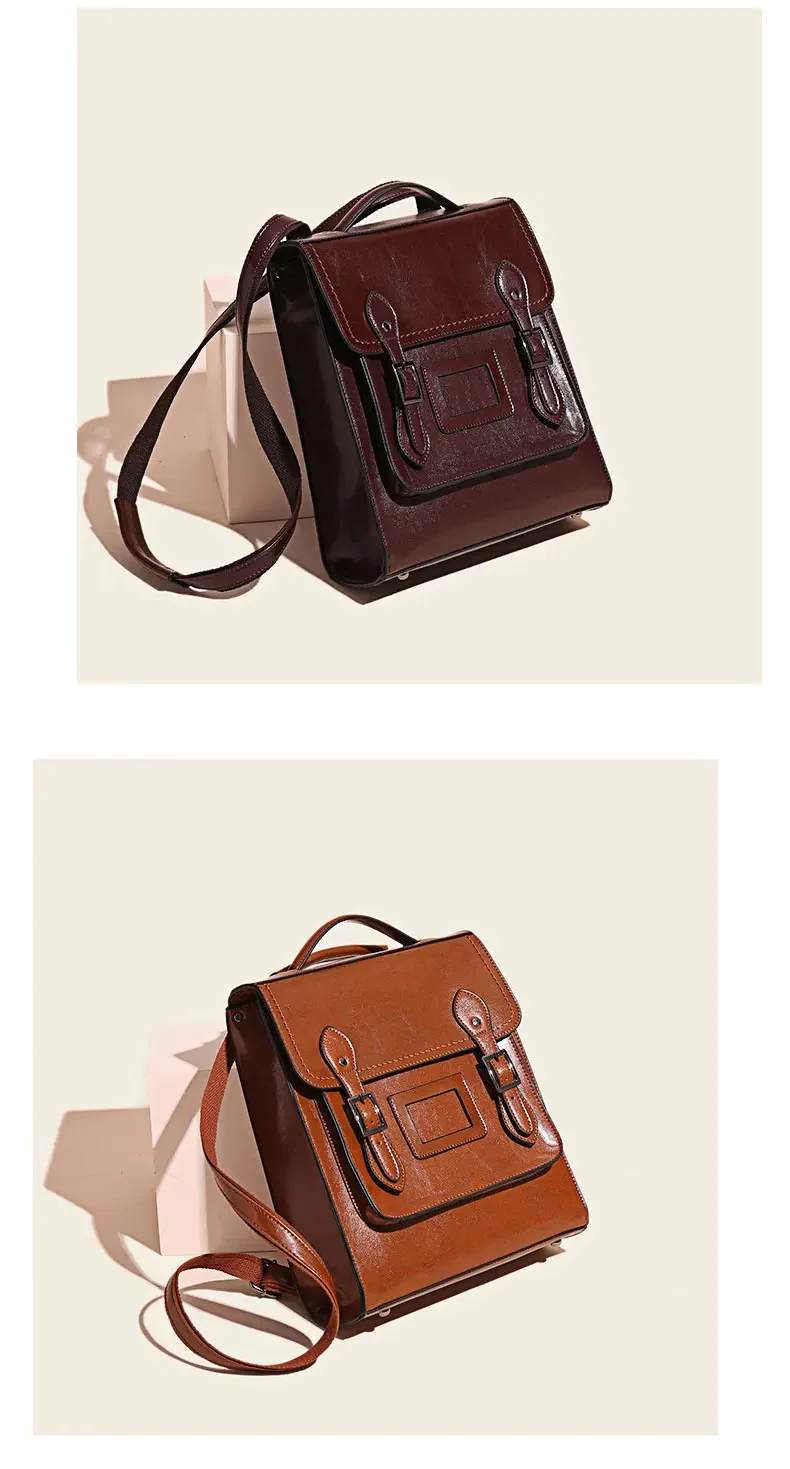 Genuine Leather Women's Backpack Vintage Cowhide Preppy Style Girls School Bag Large Capacity Women Shoulder Bag
