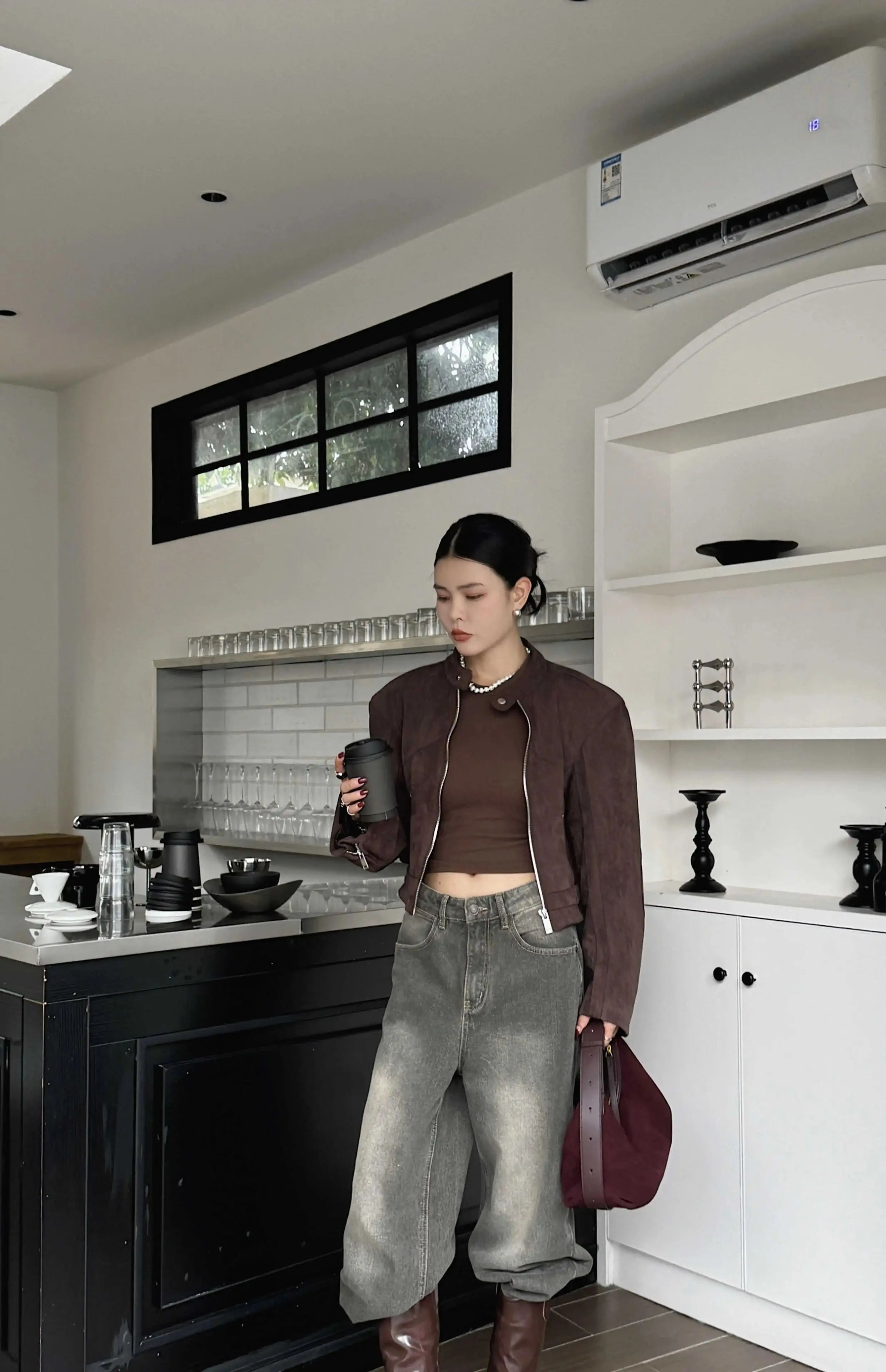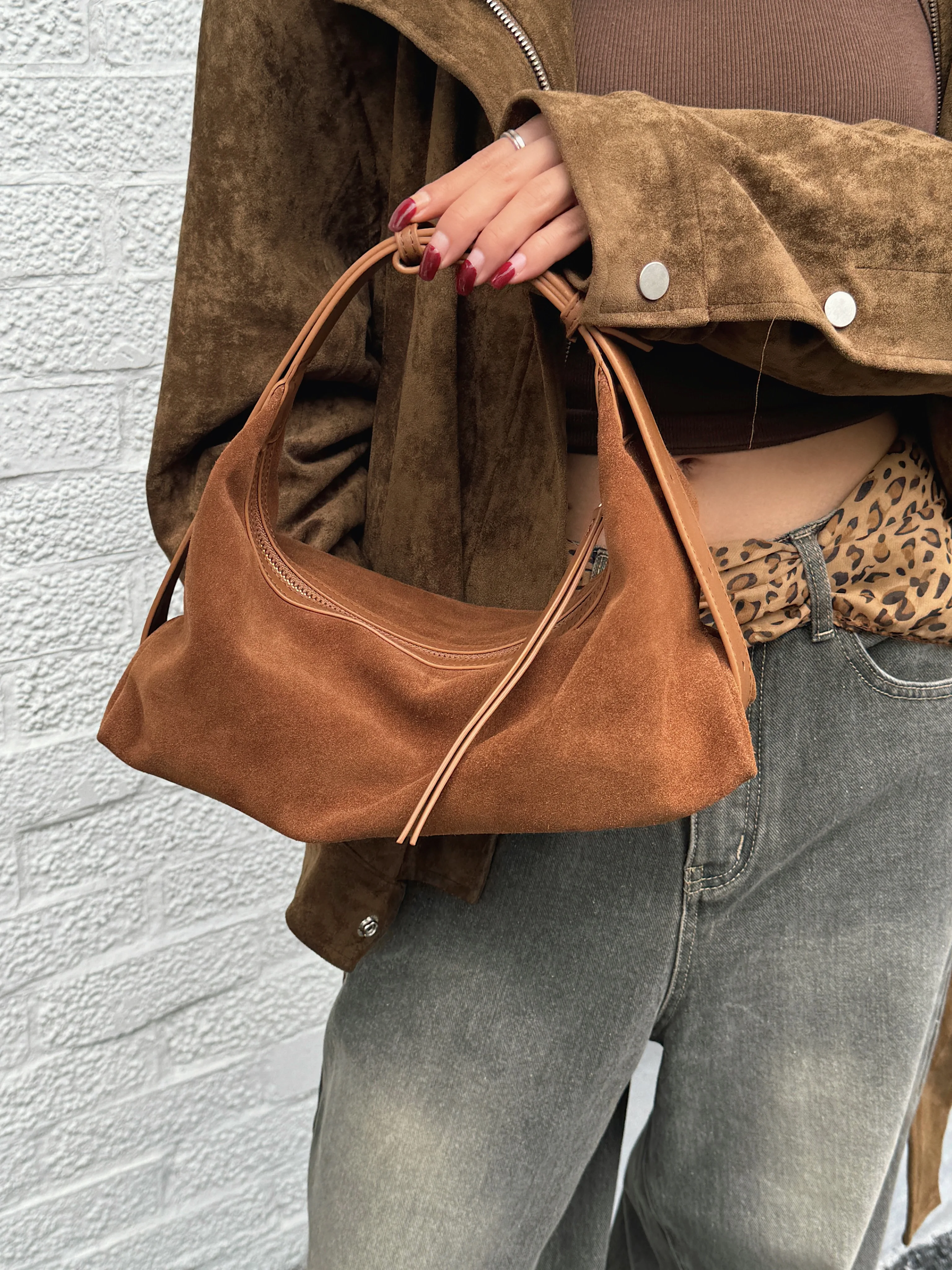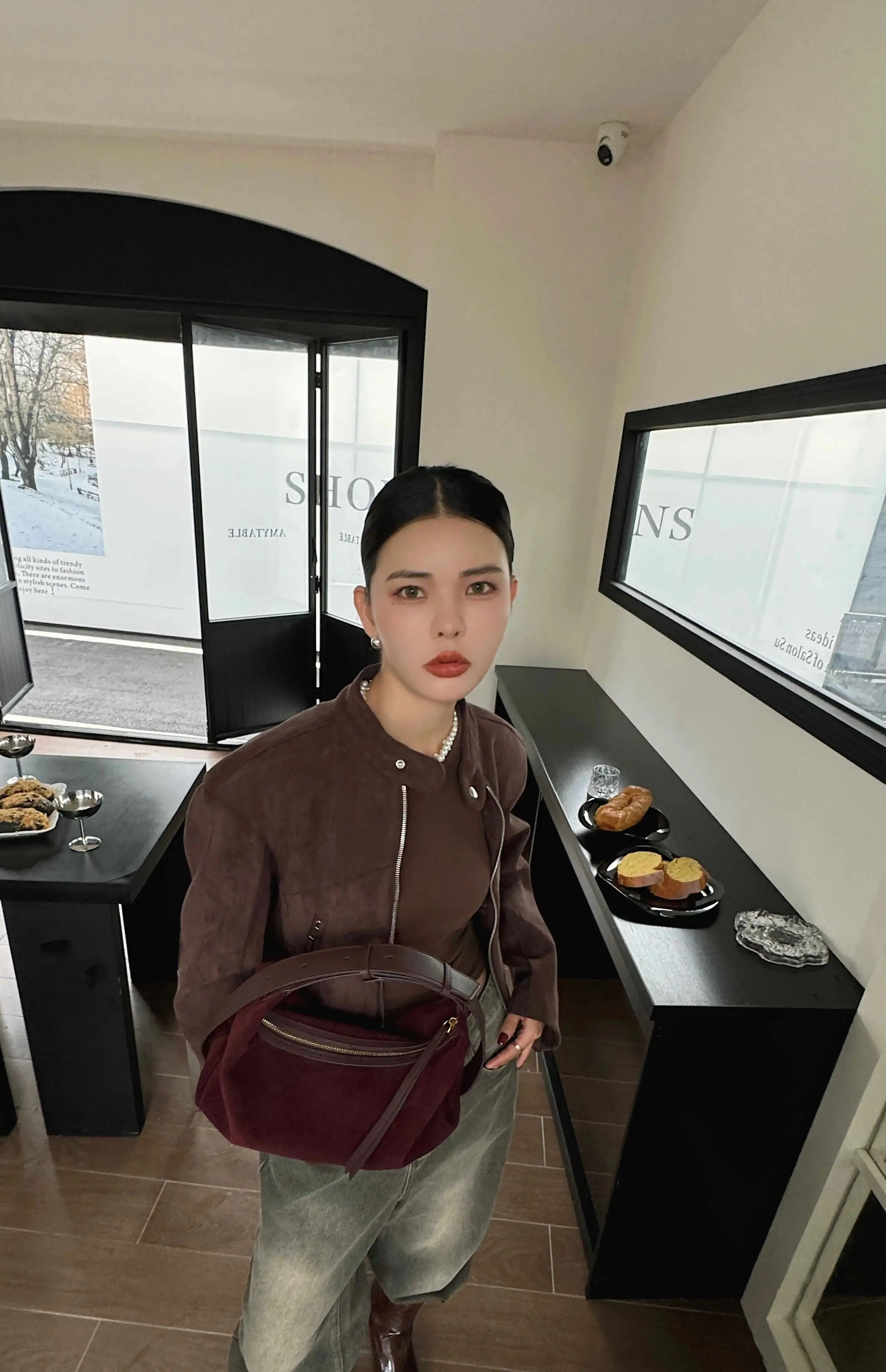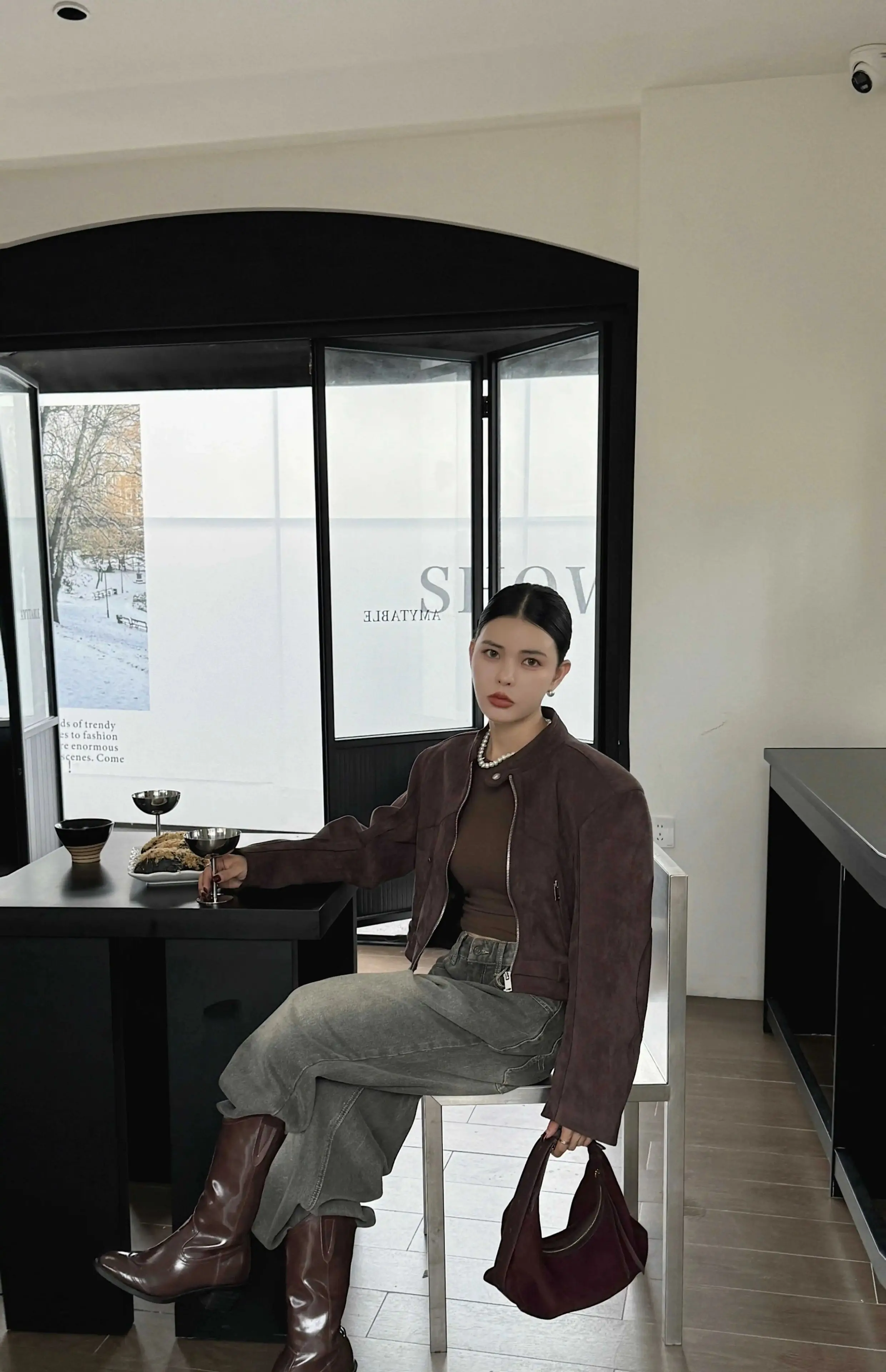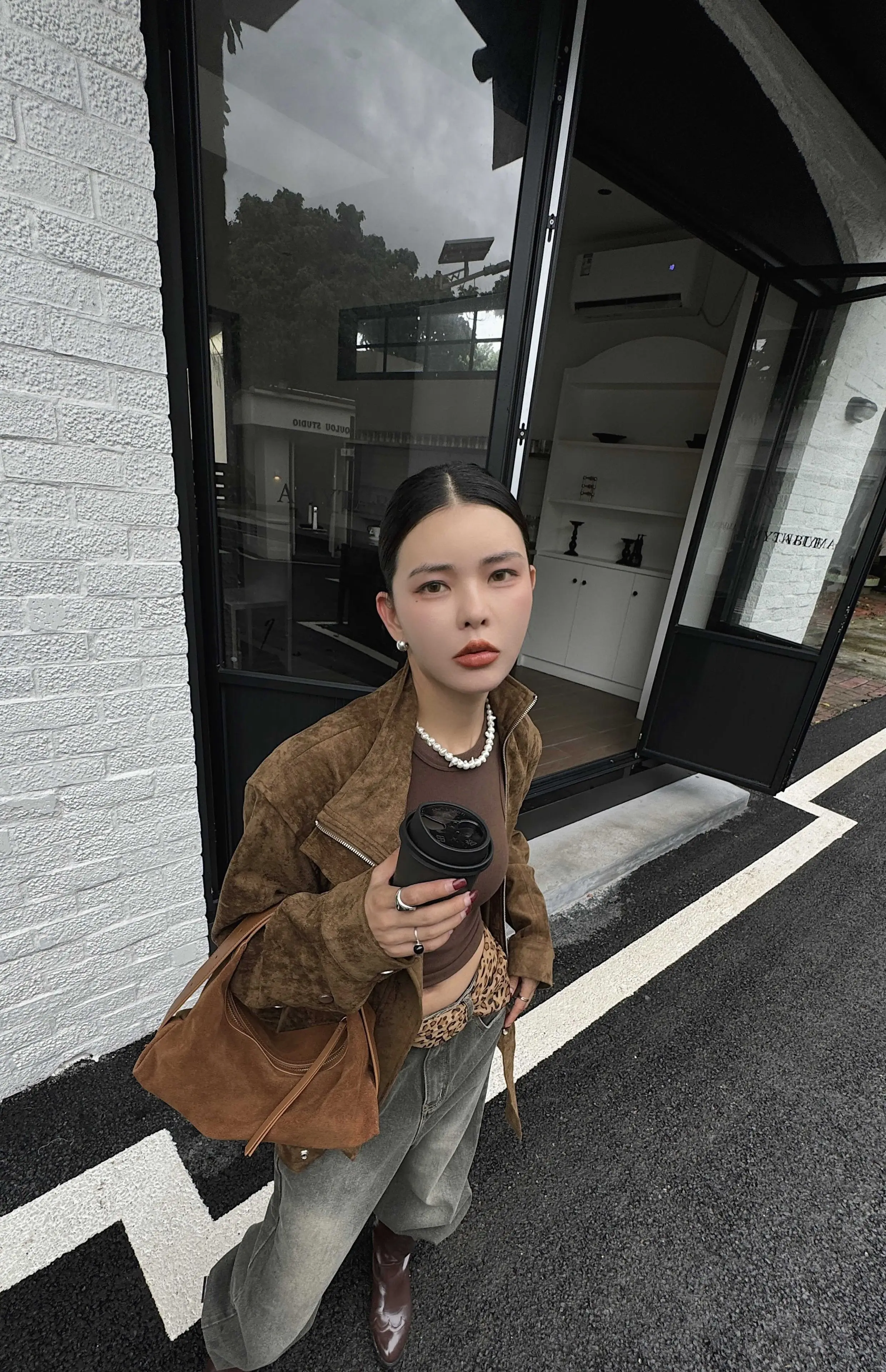 Hot Sale Maillard Coffee Color Triangle Tote Unique Design Thick Suede Cow Leather Women Handbag High Quality Lady Shoulder Bag