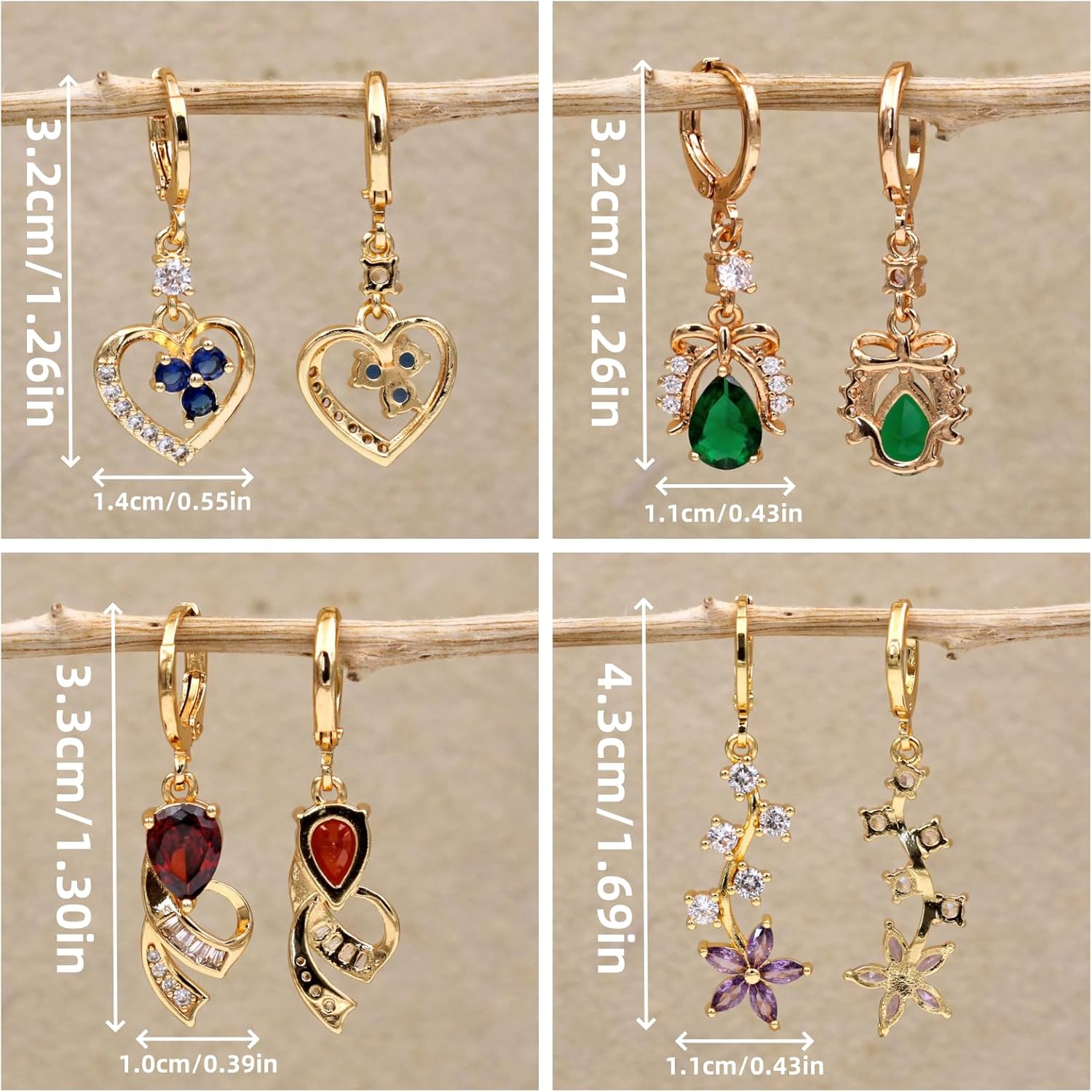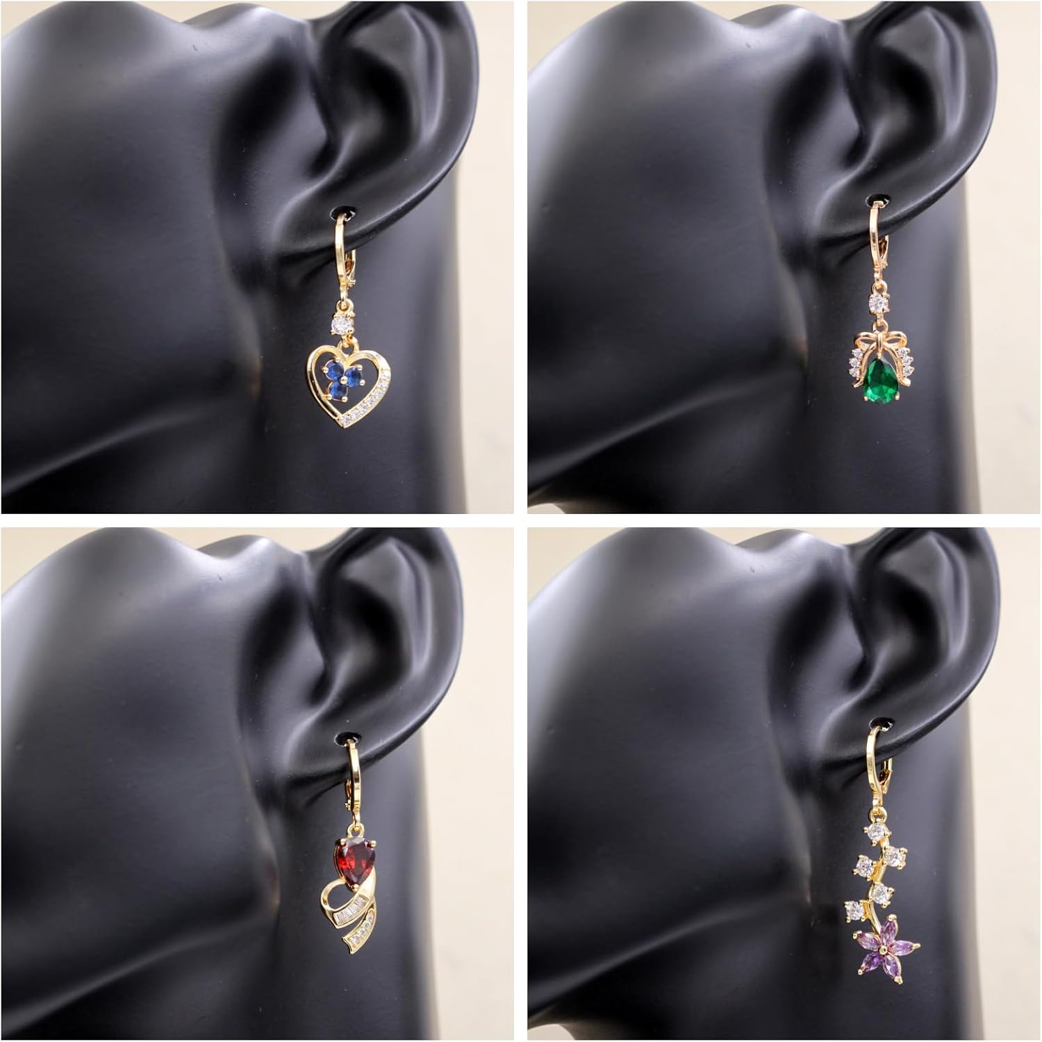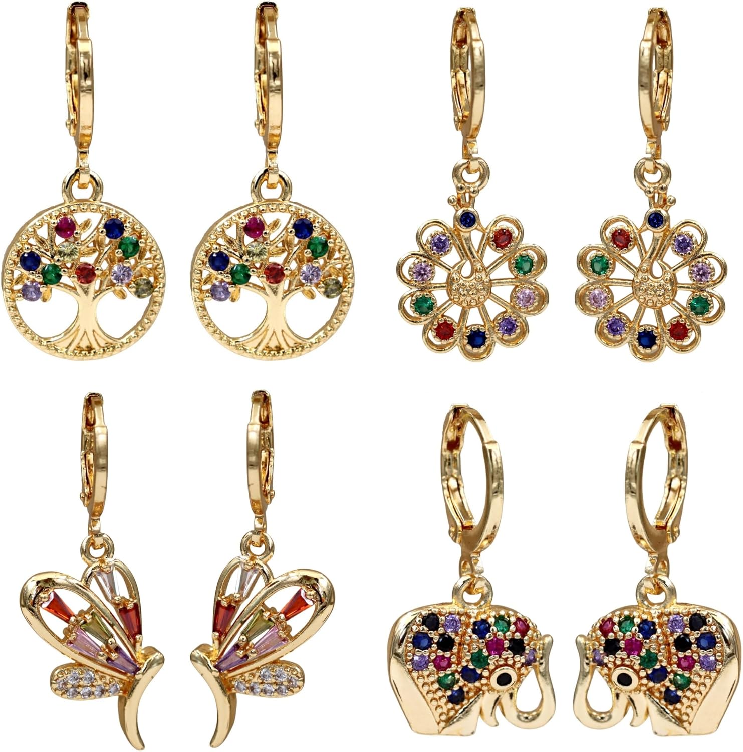 Manufacturer 18K Gold Plated, 4 Pairs Dangle Earrings Set for Women, Flower/Heart/Animal/Pearl Drop earrings, Hypoallergenic Cubic Zirconia Earrings, Lightweight, Party, gold earrings, Jewelry for Gifts, Fashion earring