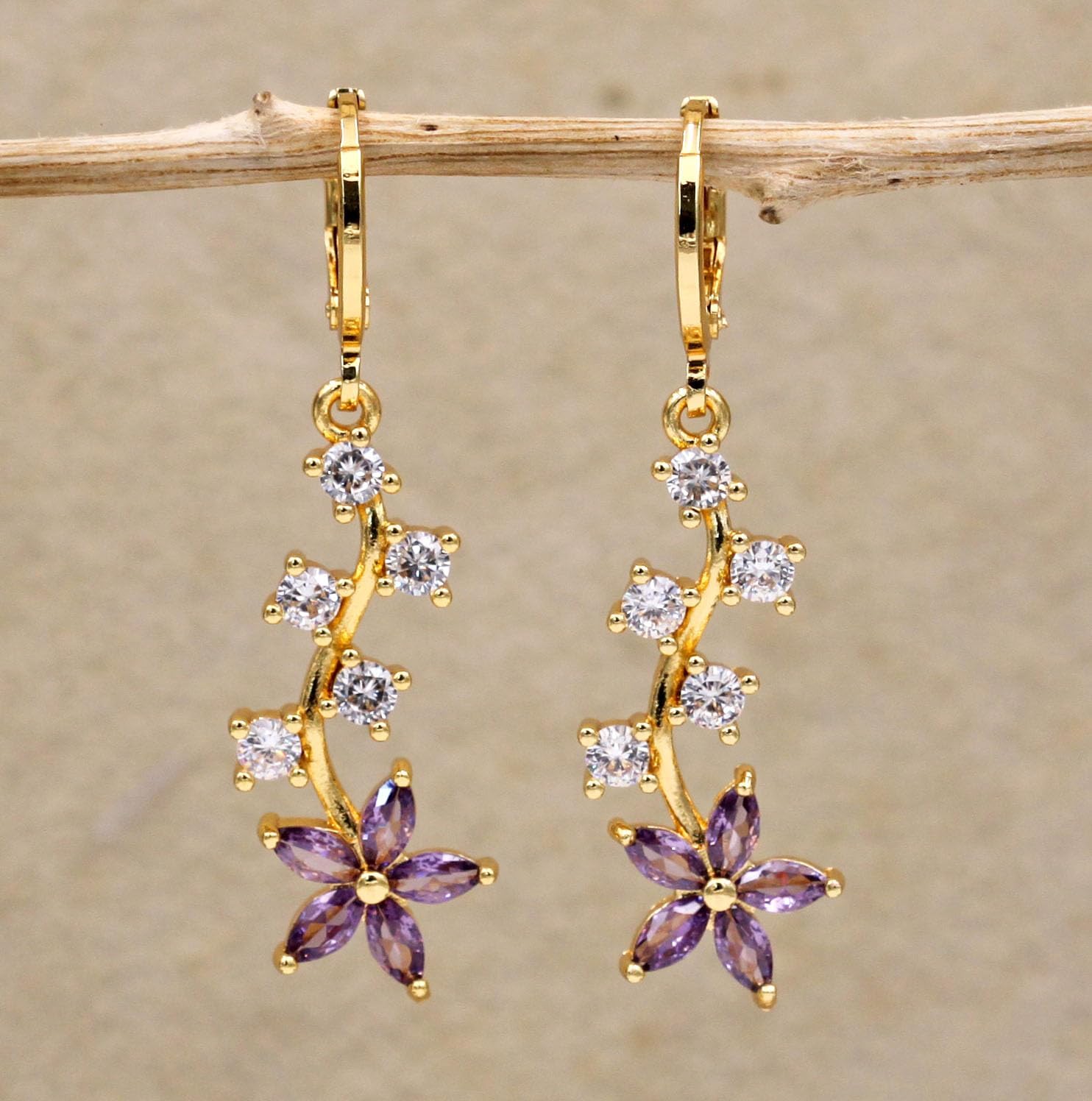 18K Gold Plated, 4 Pairs Drop Dangle Earrings Set for Women, Flower/Heart/Animal/Pearl Drop earrings, Hypoallergenic Cubic Zirconia Earrings, Lightweight, Party earrings, gold earrings, Jewelry for Gifts, Fashion