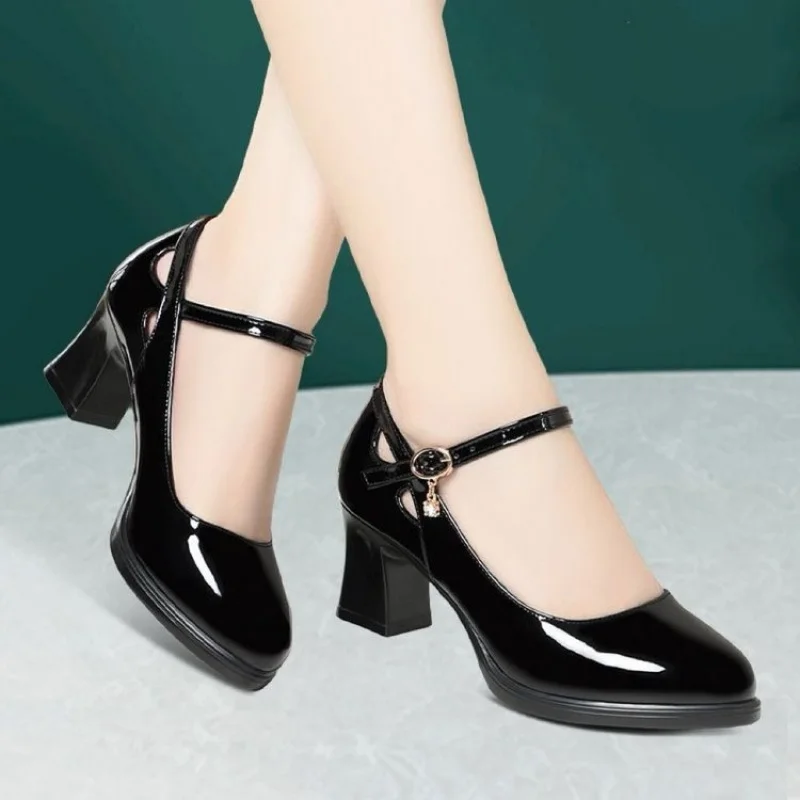 Manufacturer Spring/Fall New Women's Black Professional Work Pumps - Platform Mid Heel Dress Shoes with Strap,Office Shoes for Mothers Pumps