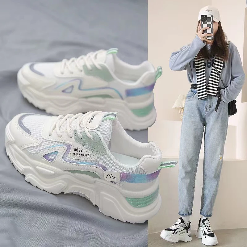 Manufacturer New Style Women's Sports Shoes Platform Flat Shoes Women's Shoes Green casual sneakers Women's Thick Sole Sports Shoes Sneakers