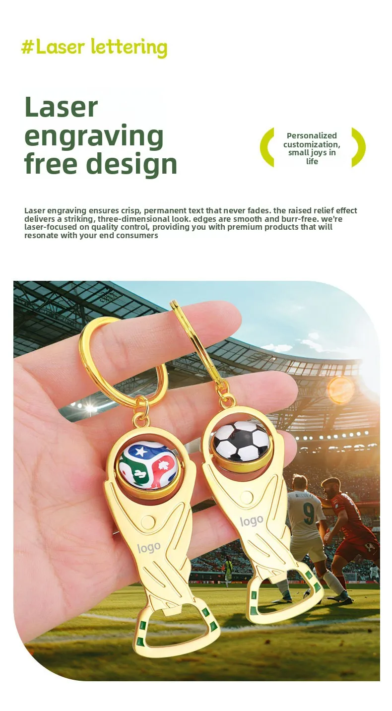 Manufacturer 2026 US-Canada-Mexico Football Cup Trophy Key Chain Bottle Opener Key Chain Pendant Football Hercules Cup Rotatable Fans Small G kitchen gadgets