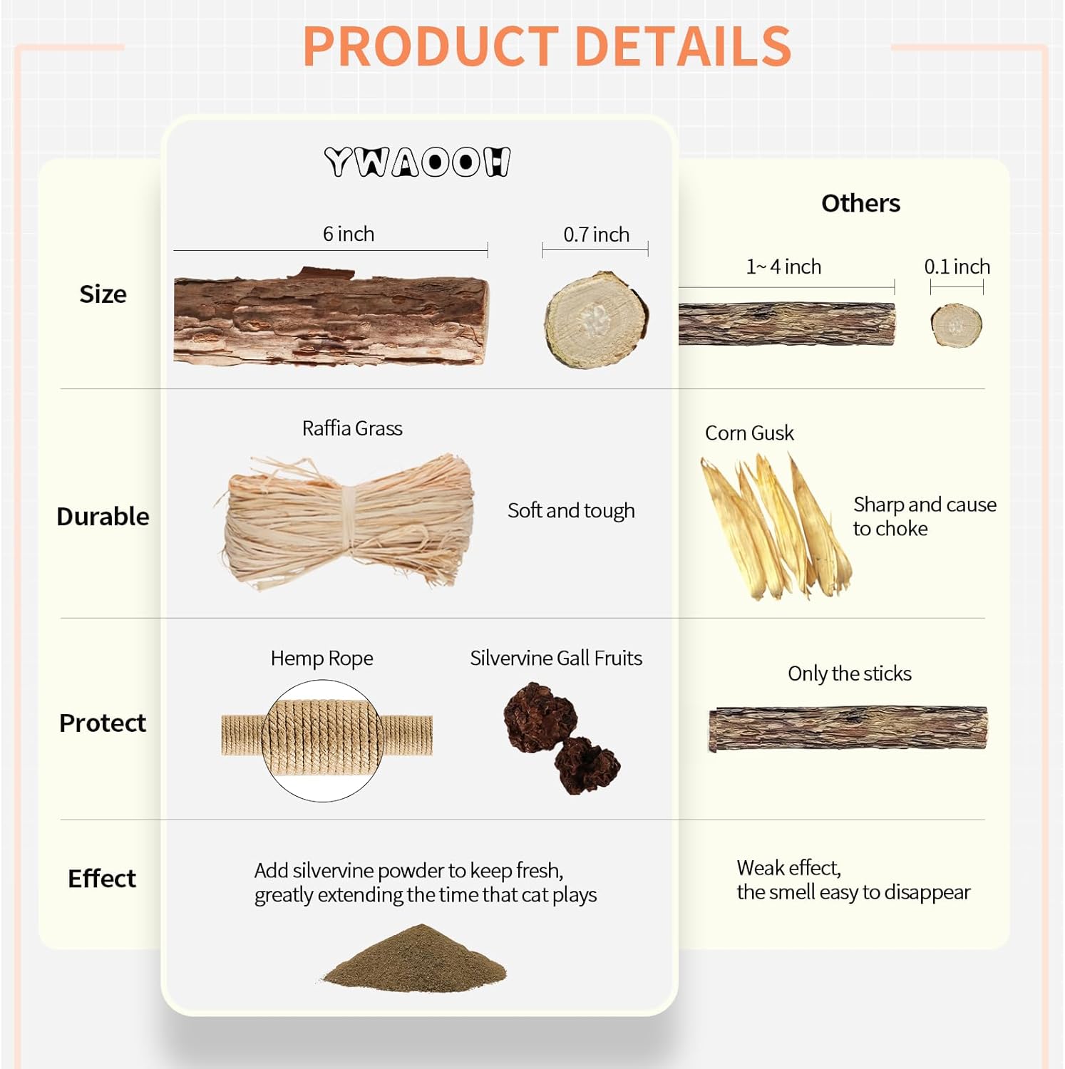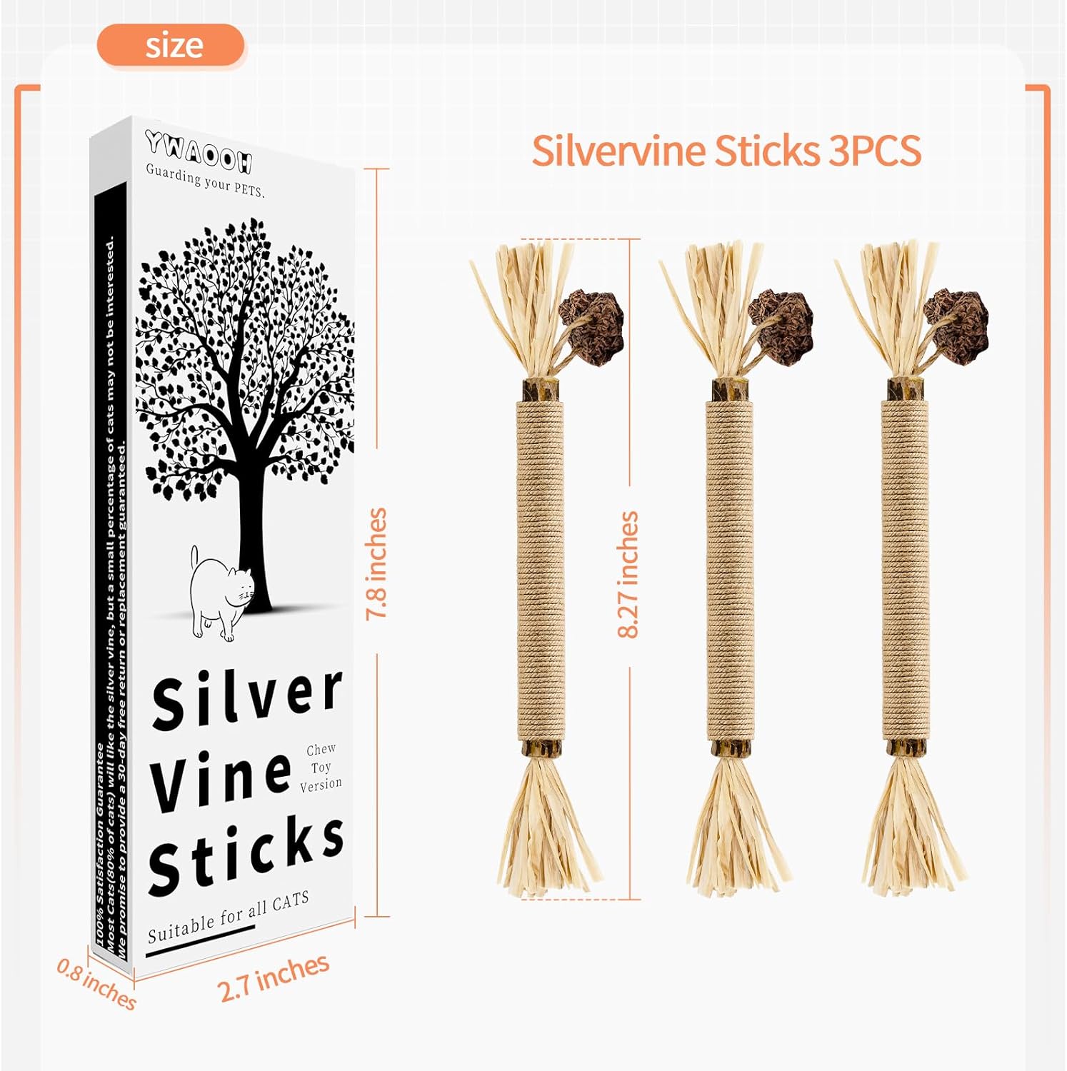 Premium silver vine sticks for cats, crafted for enhanced flavor. Cats respond positively—rolling, rubbing, licking. Effects last 5-30 mins.