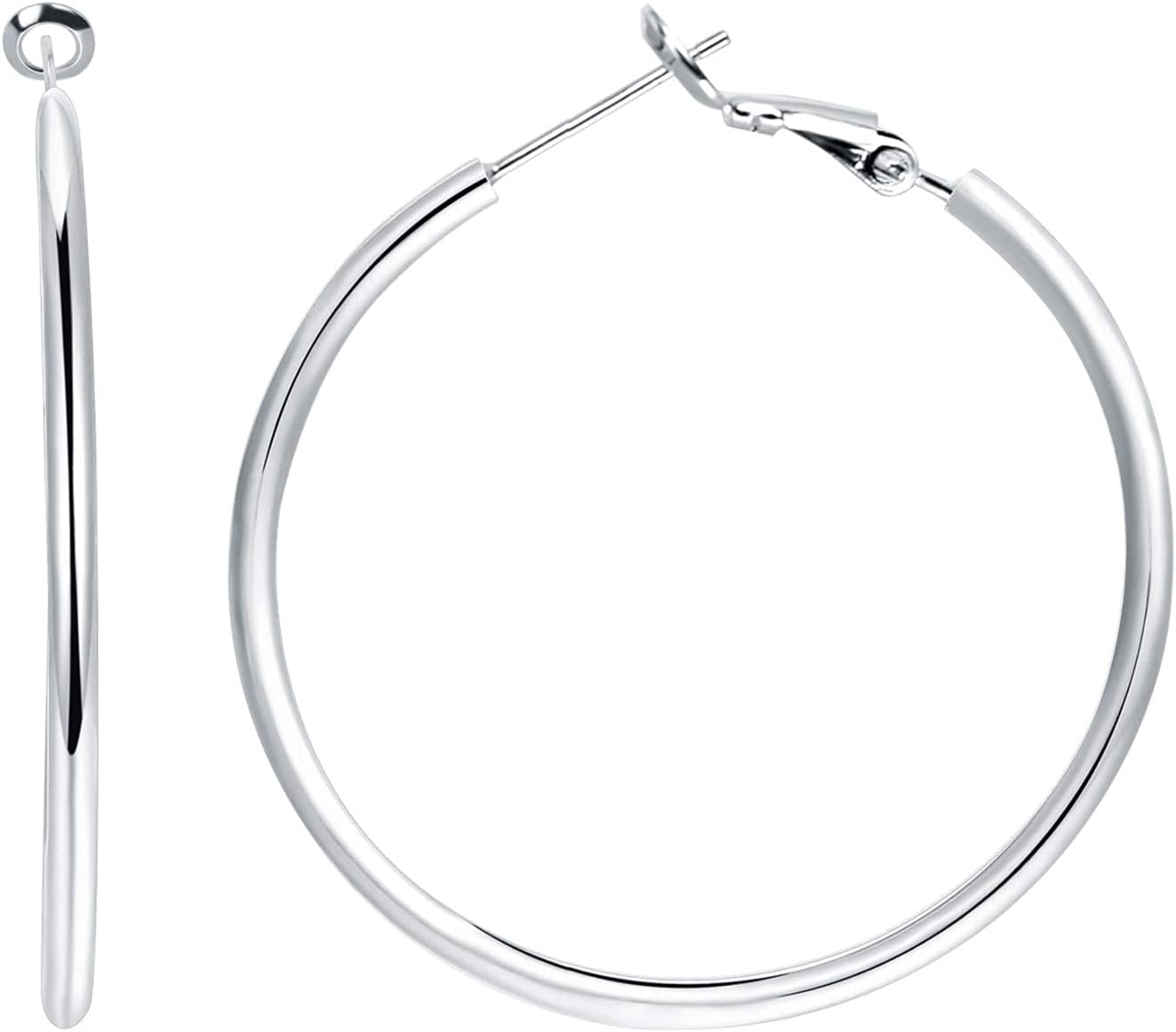 Manufacturer 3 Pairs Sterling Silver Hoop Earrings, 14K White Gold Plated Big Hoop Earrings Set for Women 40 50 60MM earring