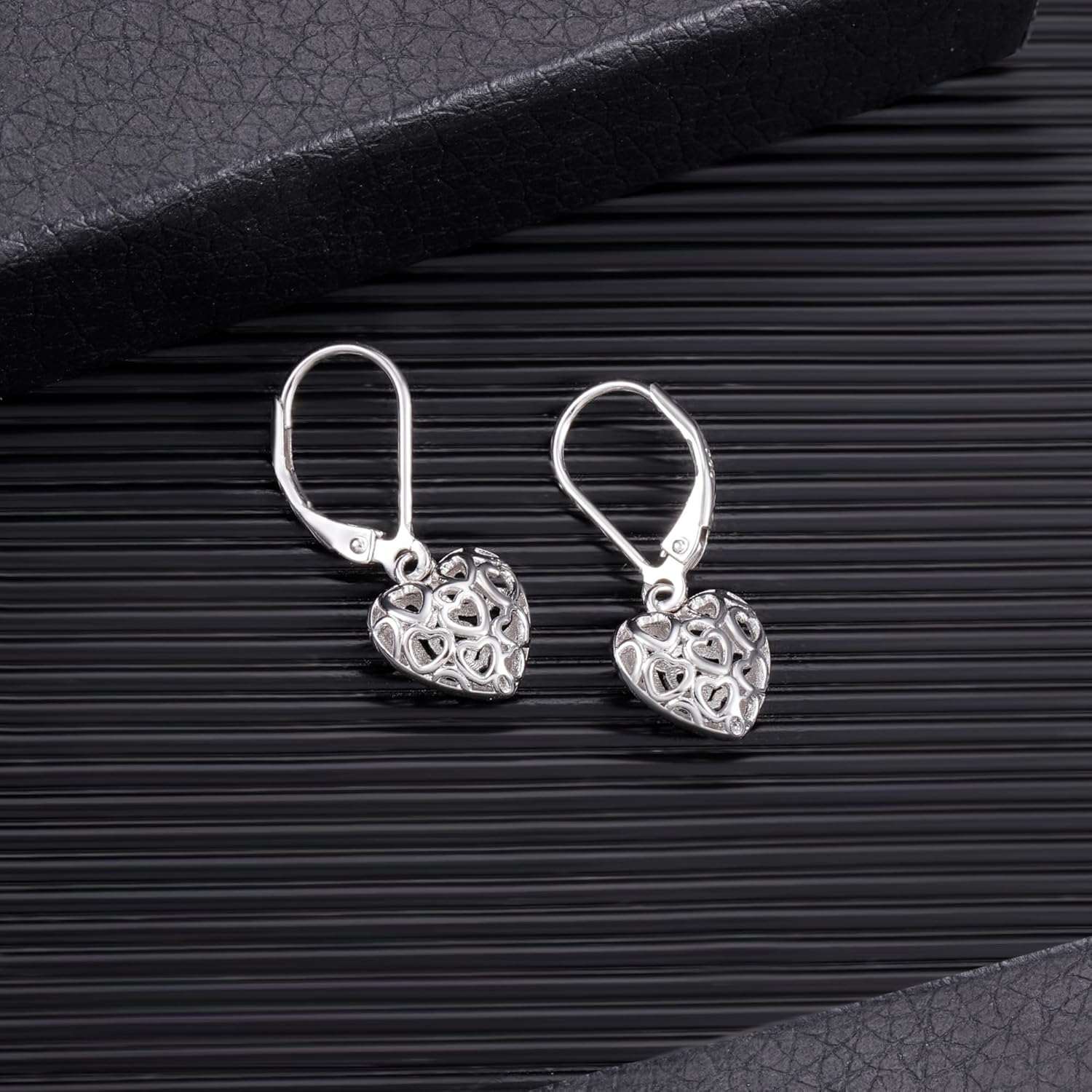 Manufacturer 925 Sterling Silver 14K Gold French Style Leverback Earrings, Heart Dangle Drop Earrings for Women Hypoallergenic Jewelry earring