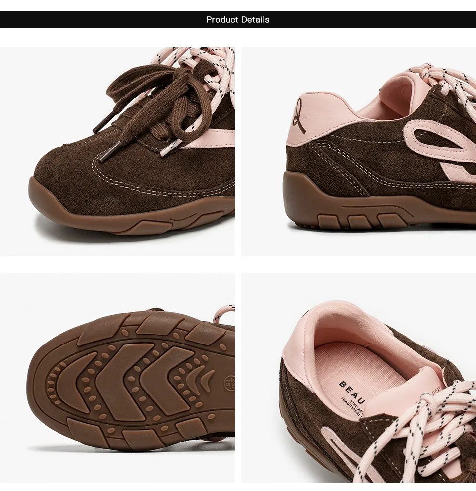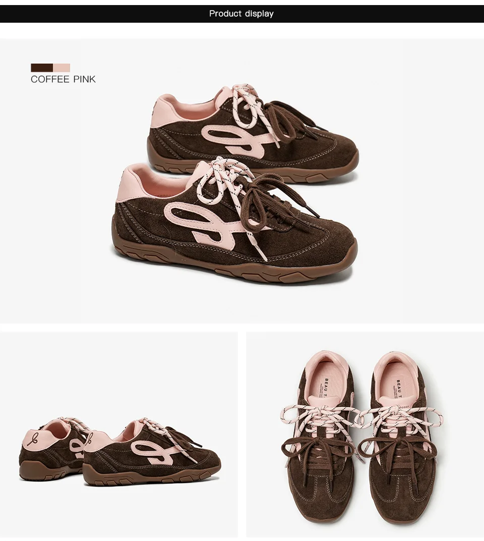 Manufacturer BEAUTODAY Casual Sneaker Cow Suede Leather Mixed Color Round Toe Dual-Colored Shoelaces Trainers Ladies Shoes Handmade 29977 Sneakers