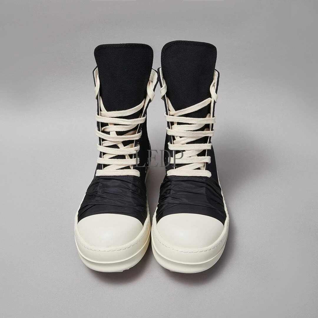 Manufacturer Brand New Luxury Casual O-wen Shoe Men Retro Style Black Canvas High-top Pleated With Black Cloth Boots Women Owens Flat Sneaker Sneakers