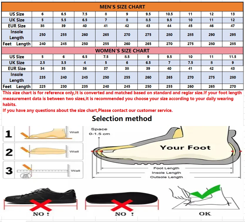 2. Sizes from Euro 34 to 48. Among them, the male size is standard, and the female size is larger,