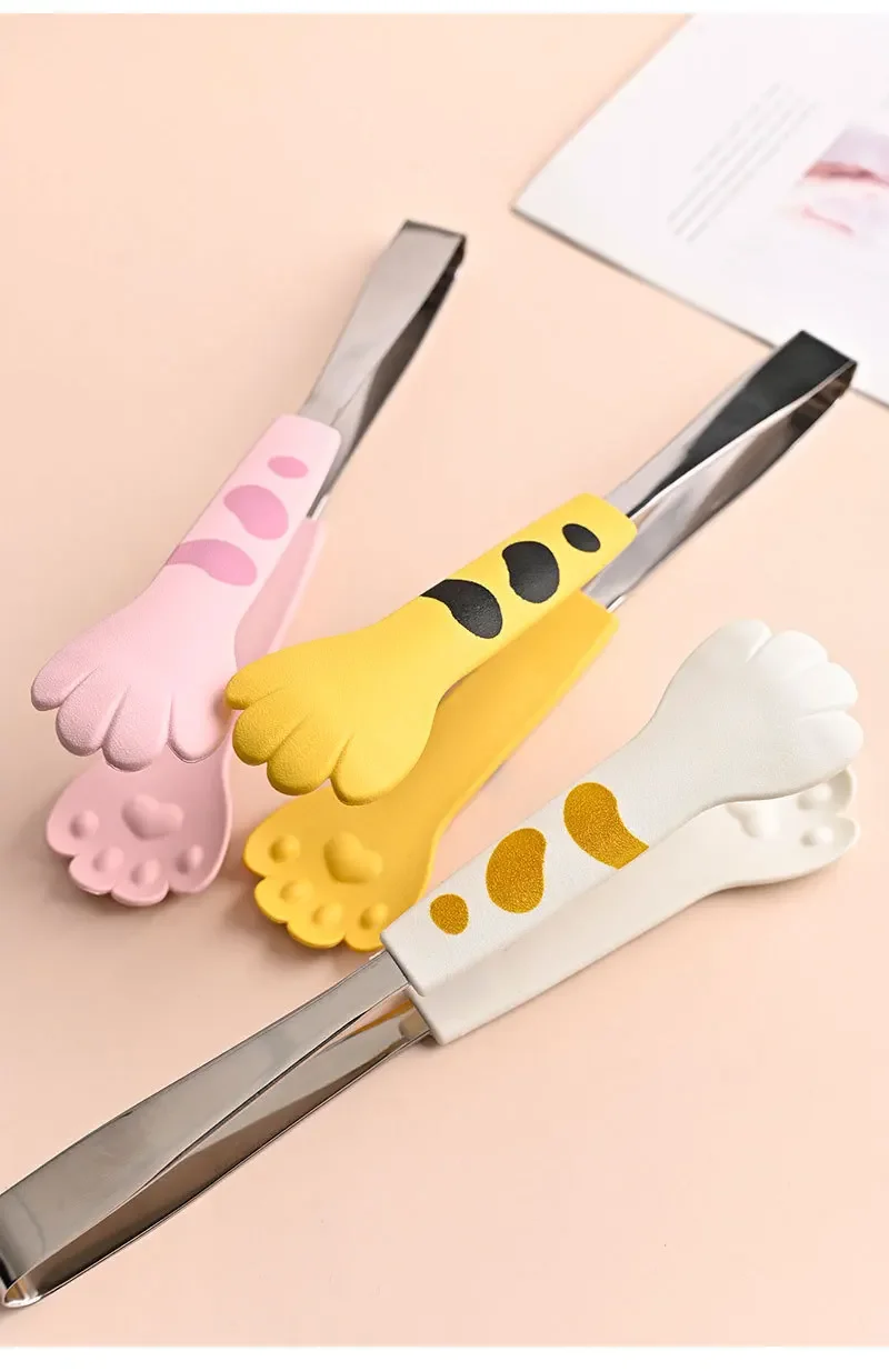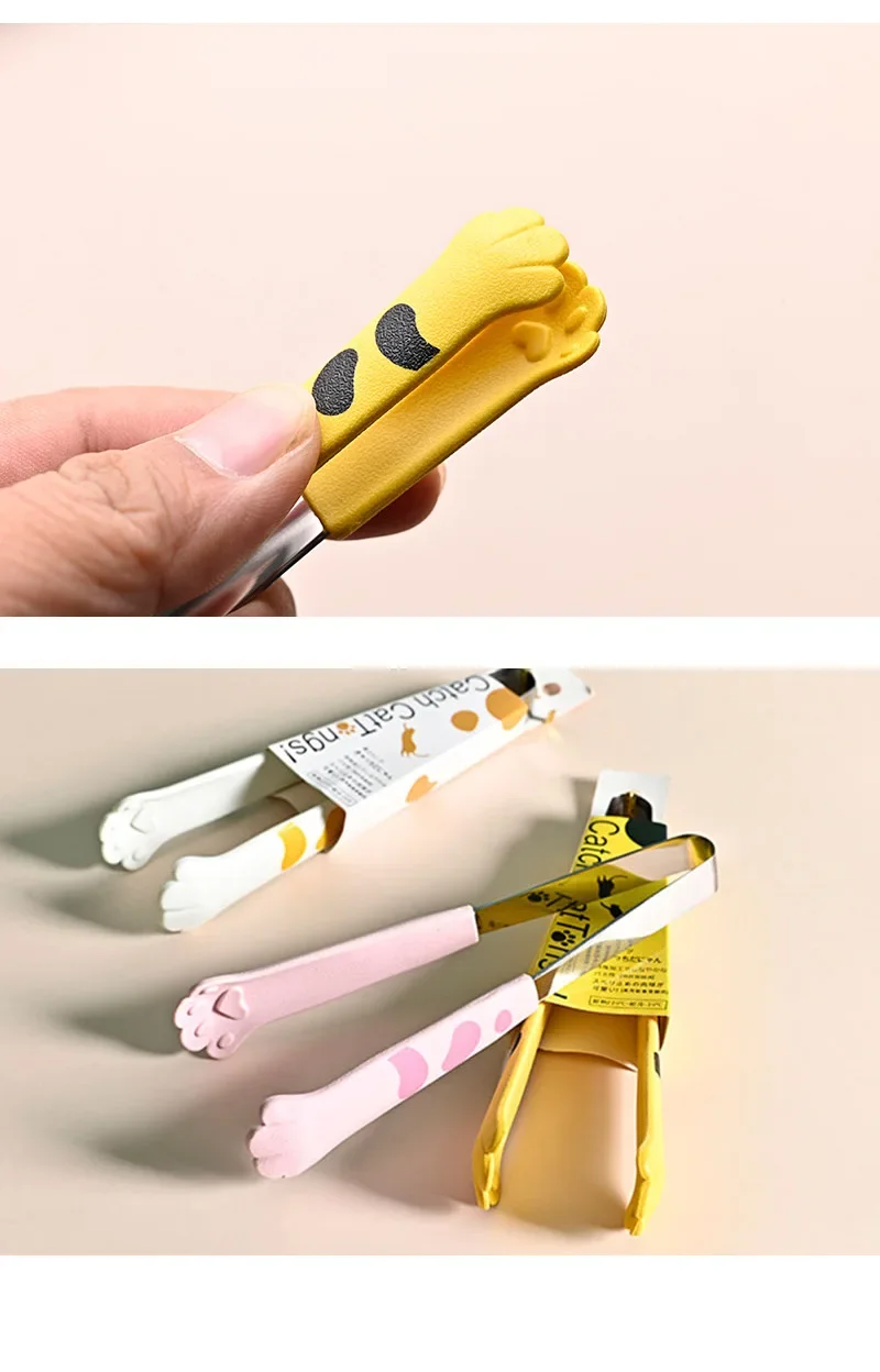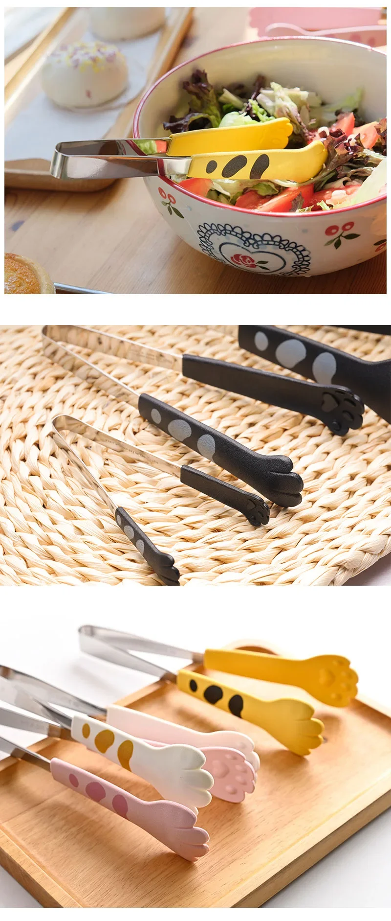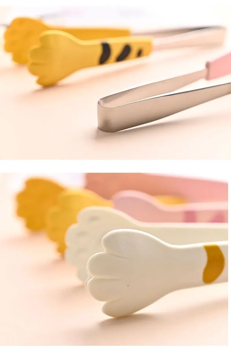 Cat Paw Shape Food Tongs Cute Cartoon Meal Tongs Stainless Steel Barbecue Tongs Sandwich Baking Clip Kitchen Gadgets Japanese