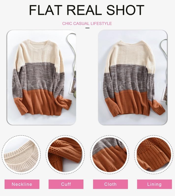 Manufacturer Dokotoo Womens Color Block Sweaters Long Sleeve Crewneck Pullover Knit Jumper Tops sweaters
