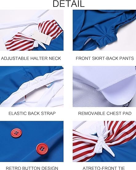 Manufacturer Ekouaer Womens One Piece Swimsuits Vintage Striped Skirt Bathing Suit Vintage Retro Push Up Swimwear Swimsuit