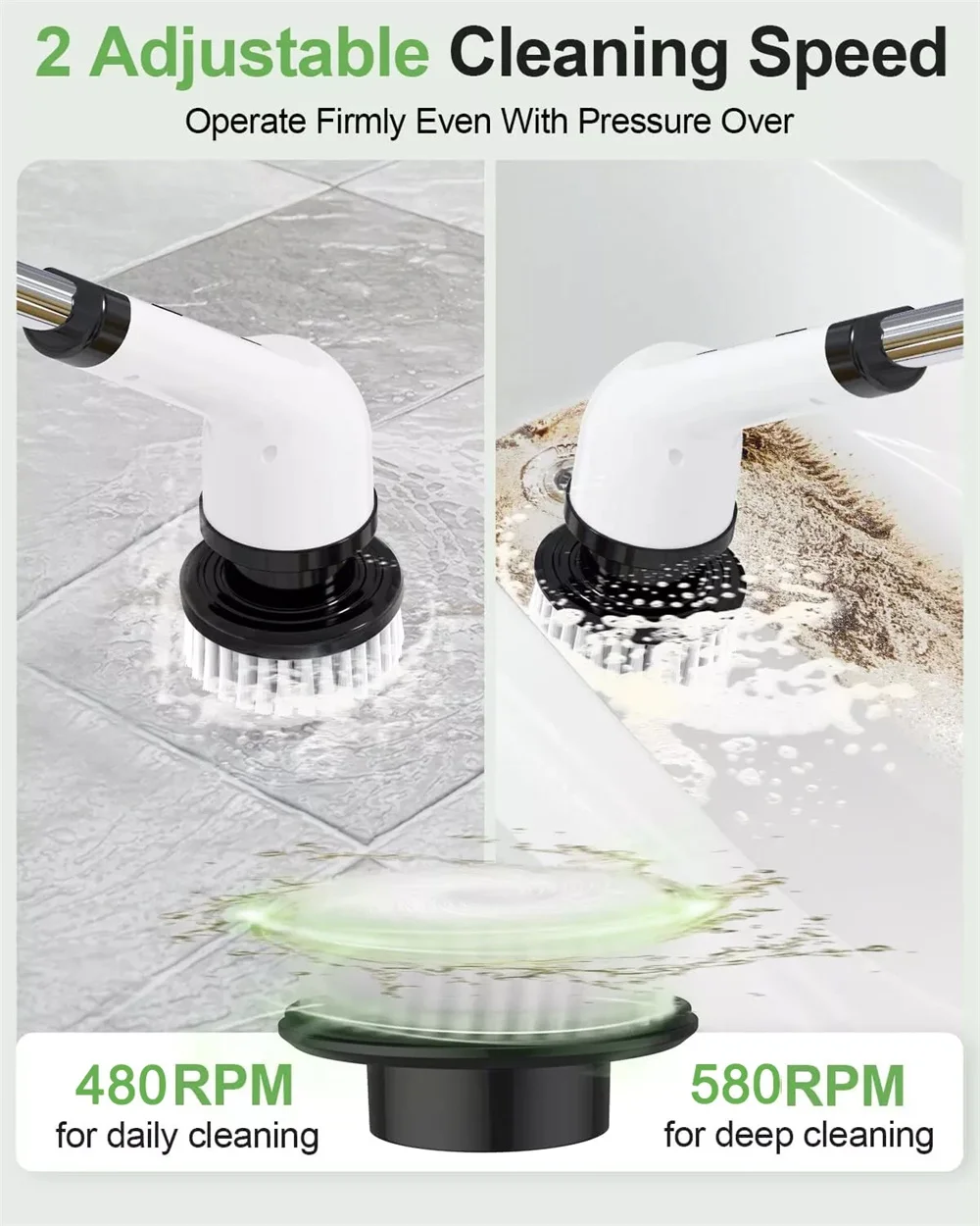 -Our electric cleaning brush is fully waterproof so it can work in the water for a long time without causing any damage, making it perfect for cleaning your bathtub, shower and bathroom tiles. The cordless design ensures that the cord doesn't get in the way of cleaning in hard-to-reach places.
