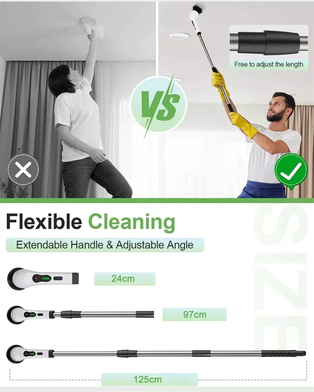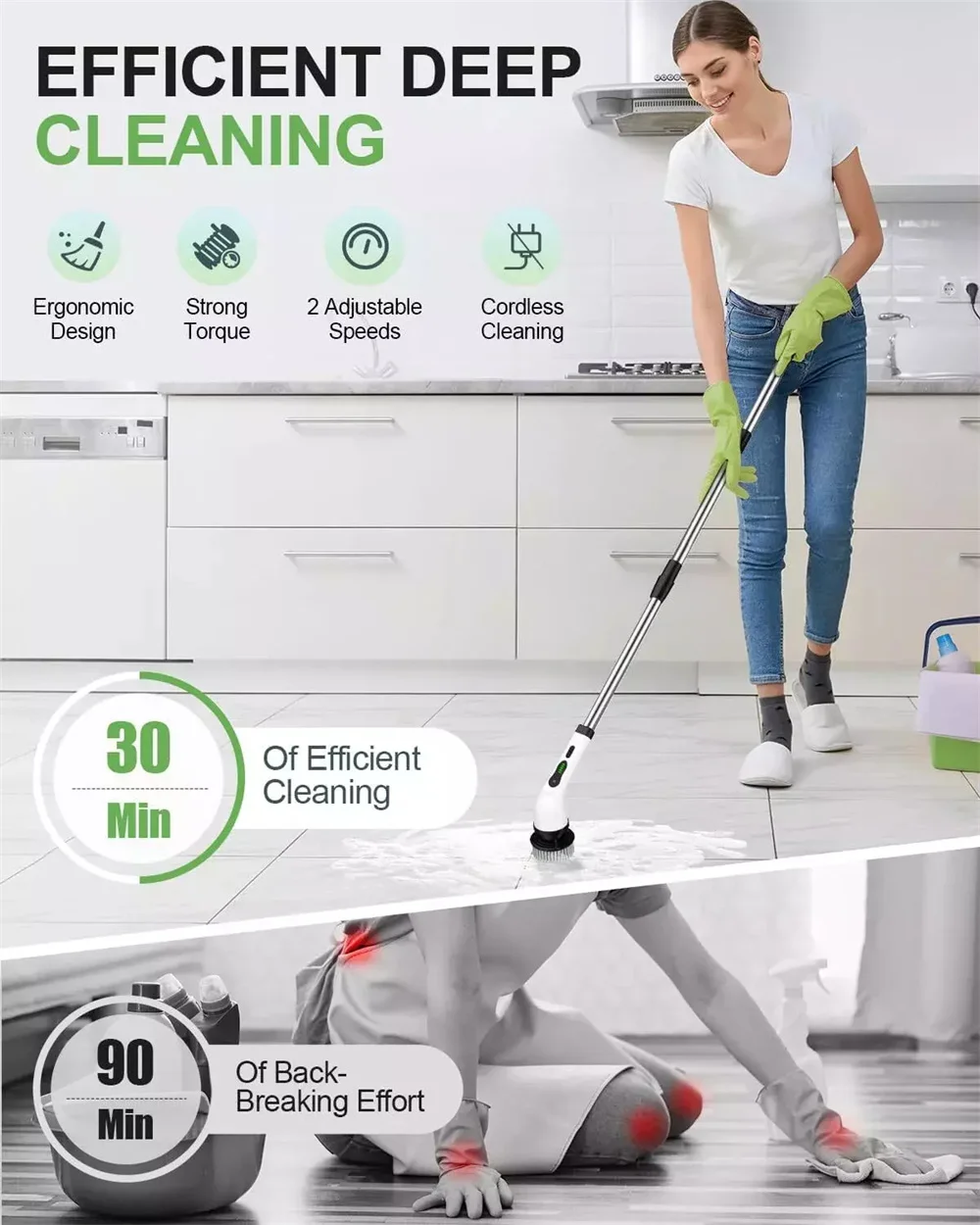 There are 9 interchangeable cleaning brush heads included with each telescopic bathroom scrubber, and the pole of each brush can be adjusted to meet your specific cleaning needs. In comparison to traditional cleaning methods, this power scrubber can easily reach hard-to-reach and uncomfortable places, making cleaning easier and more comfortable.