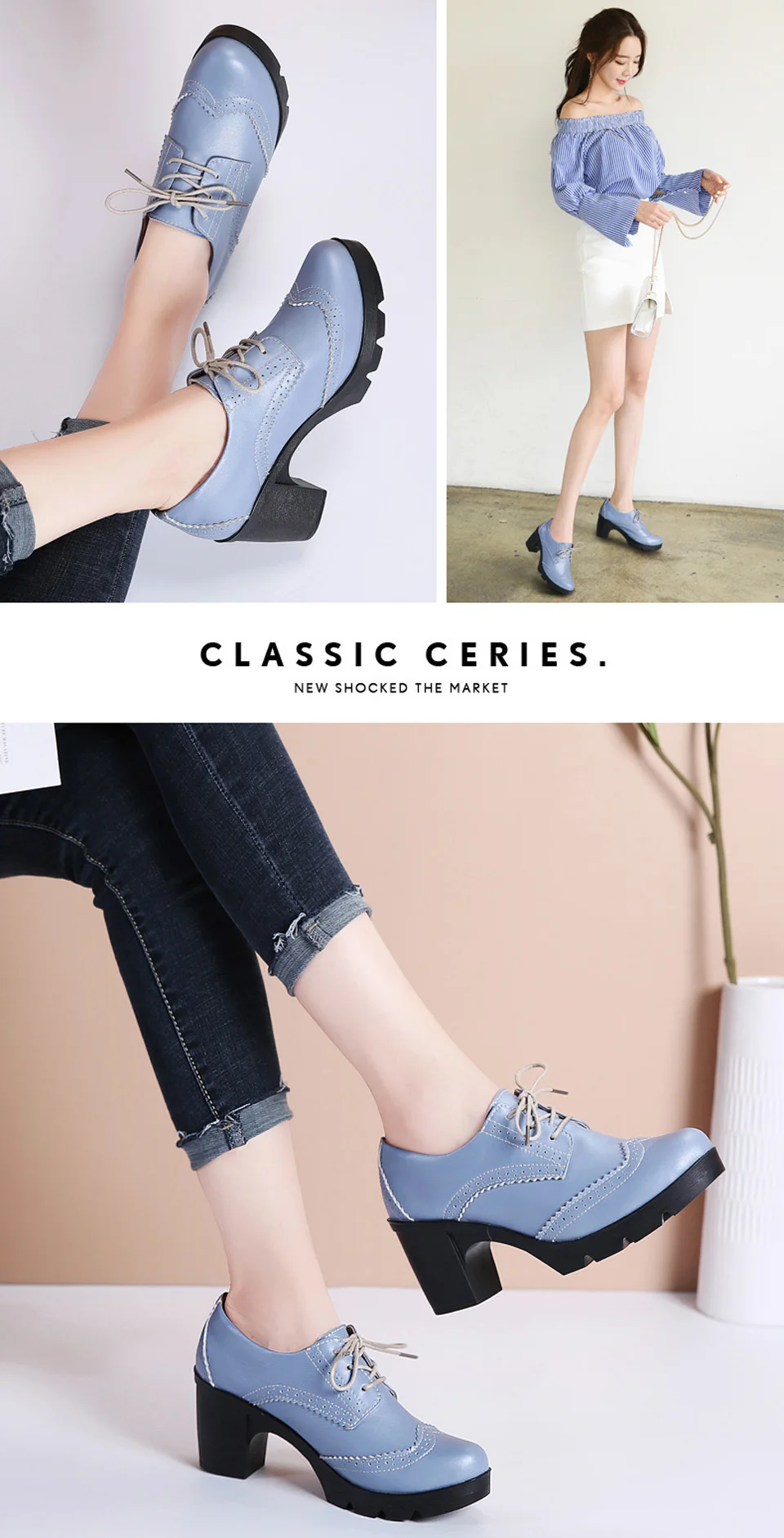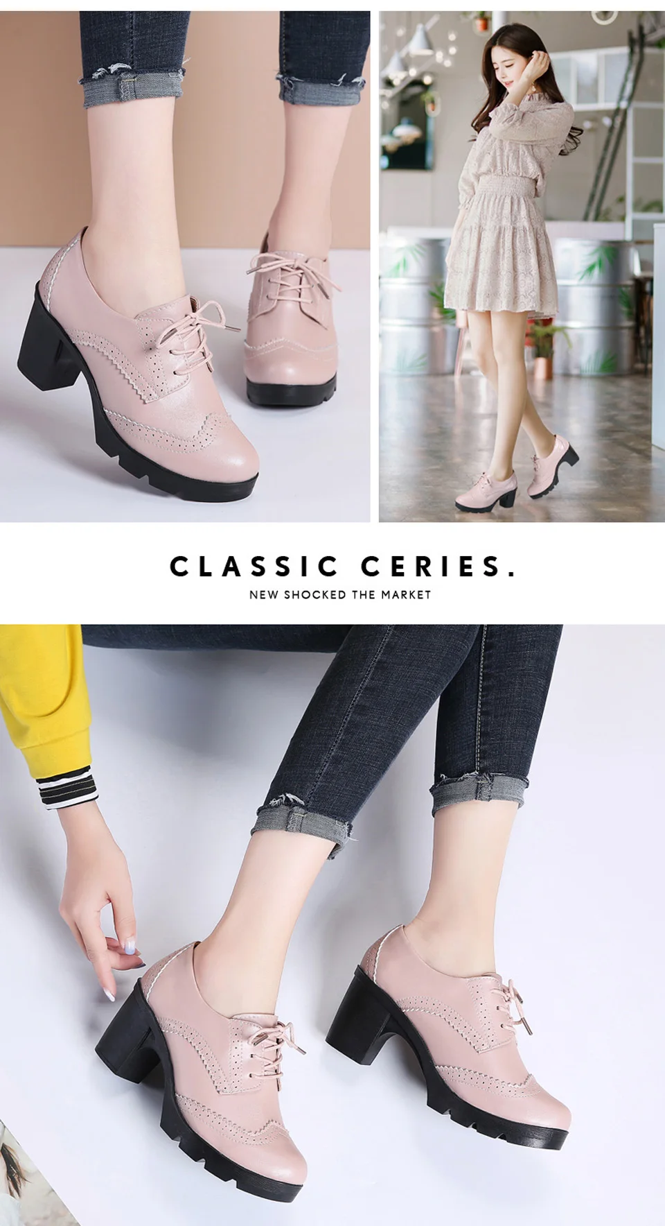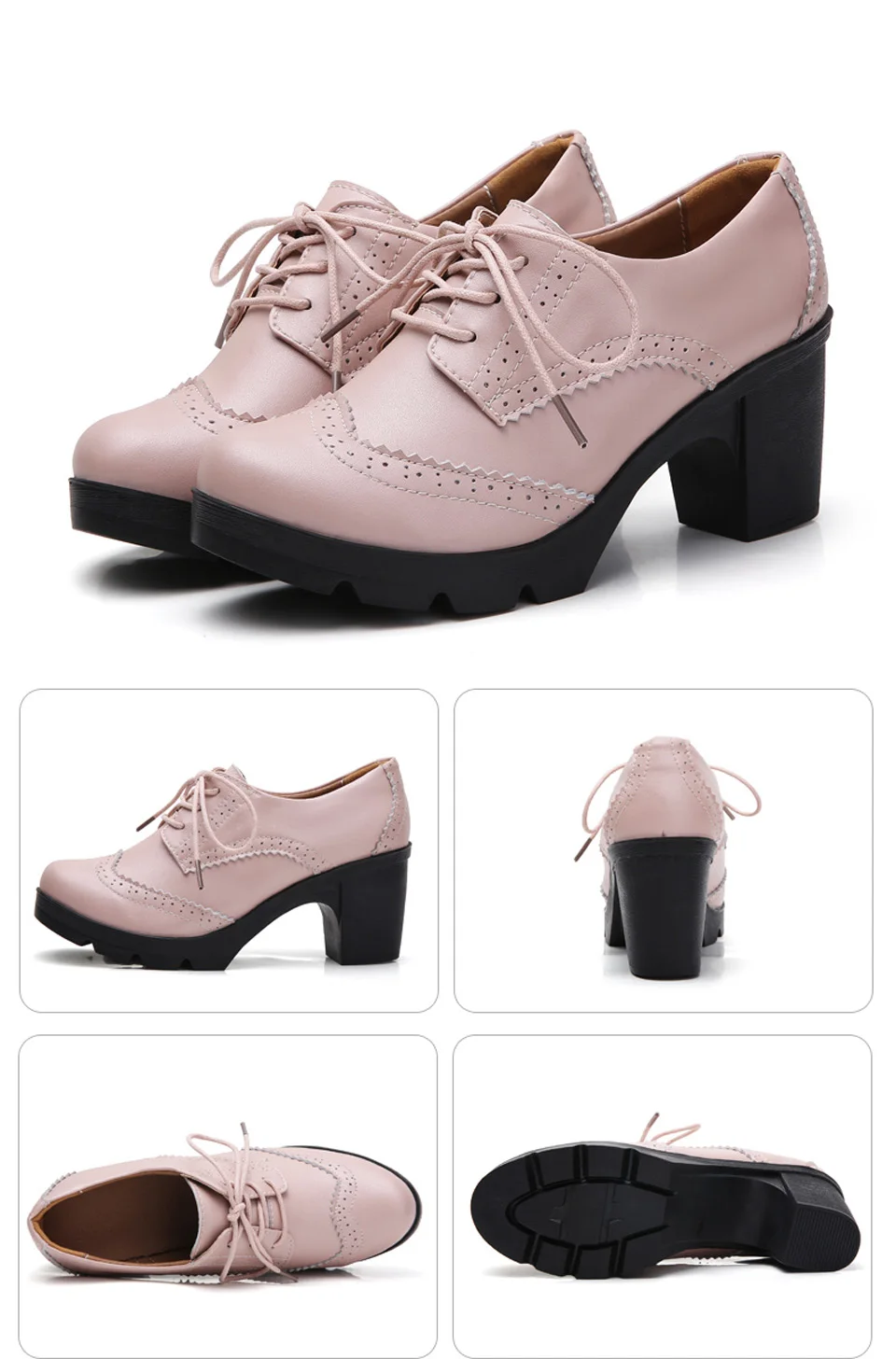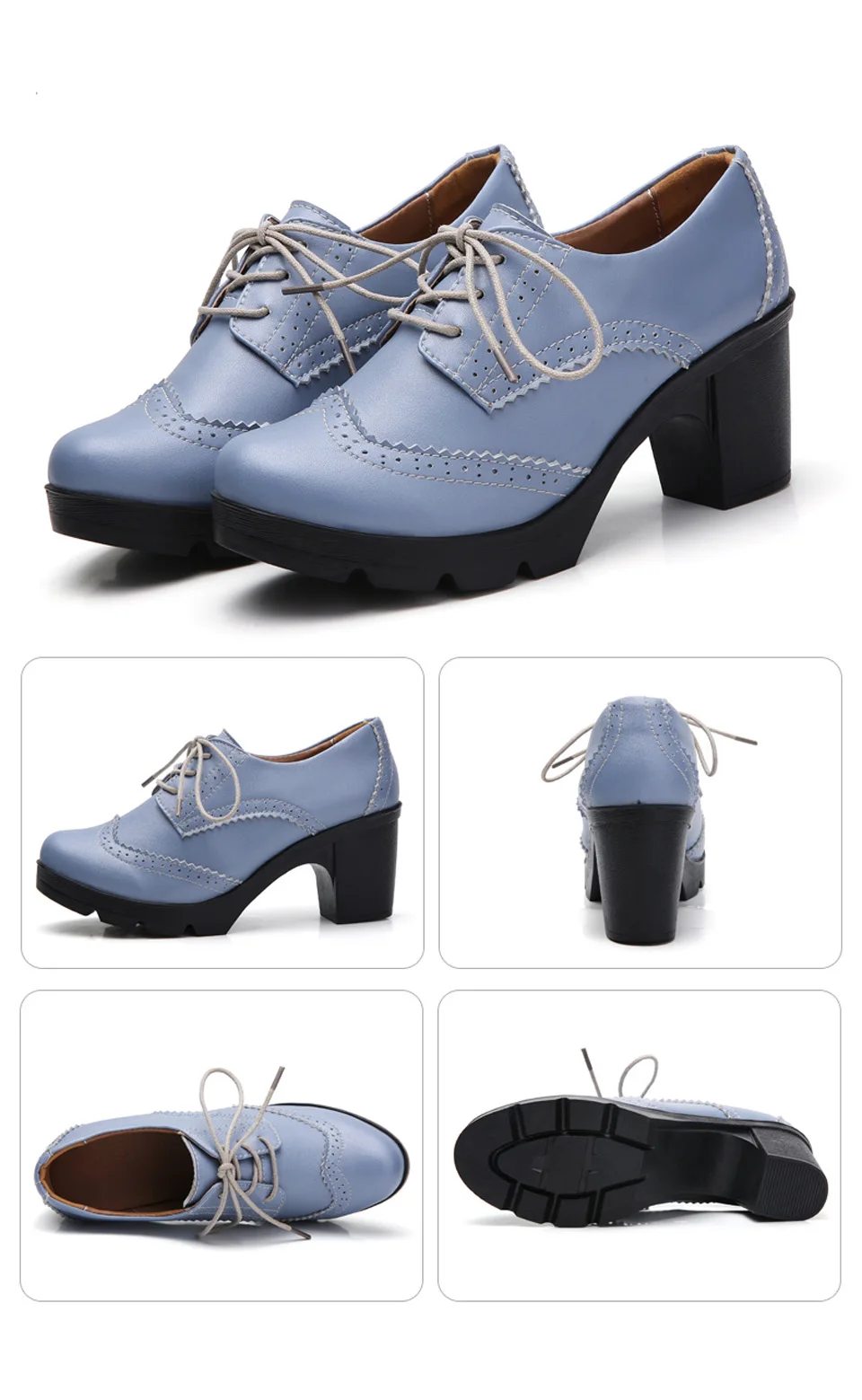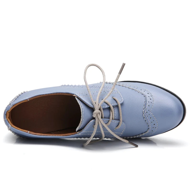 Manufacturer EOFK Women Brogue Shoes New Quaity High Square Heel Derby Genuine Leather High Heels Wedge Shoes Woman Female Shoes Pumps Casual Pumps