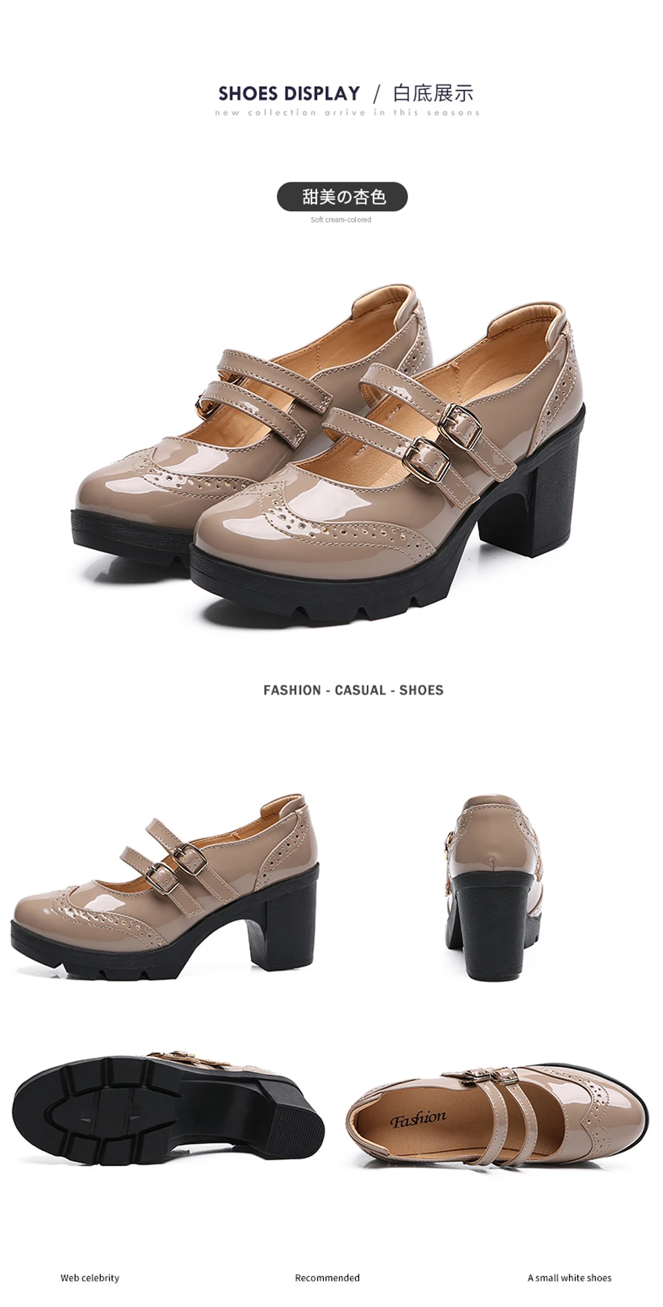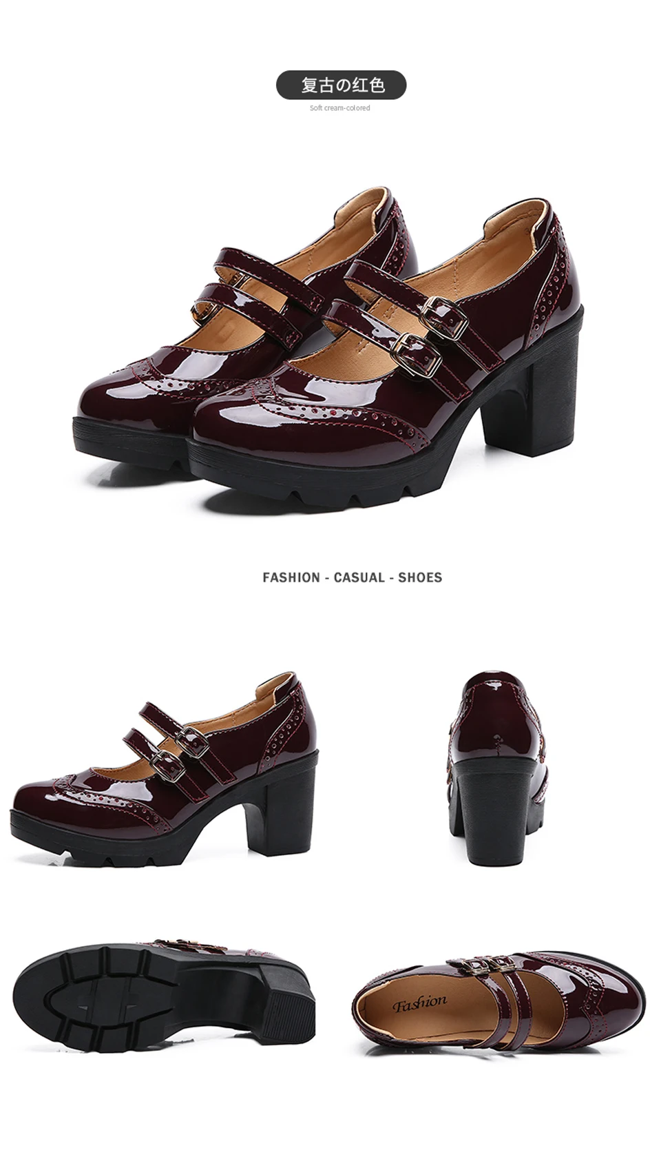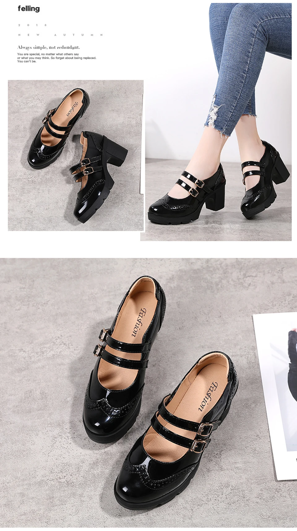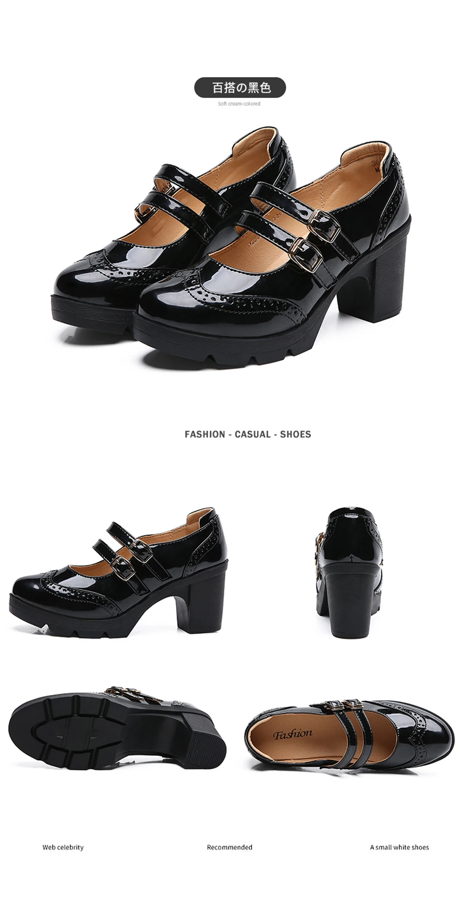 Manufacturer EOFK Women Pumps Shoes Genuine Leather New Mary Jane High Heels Shinny Patent Woman Ladies Shoes Pumps Brogue High Square Heel Pumps
