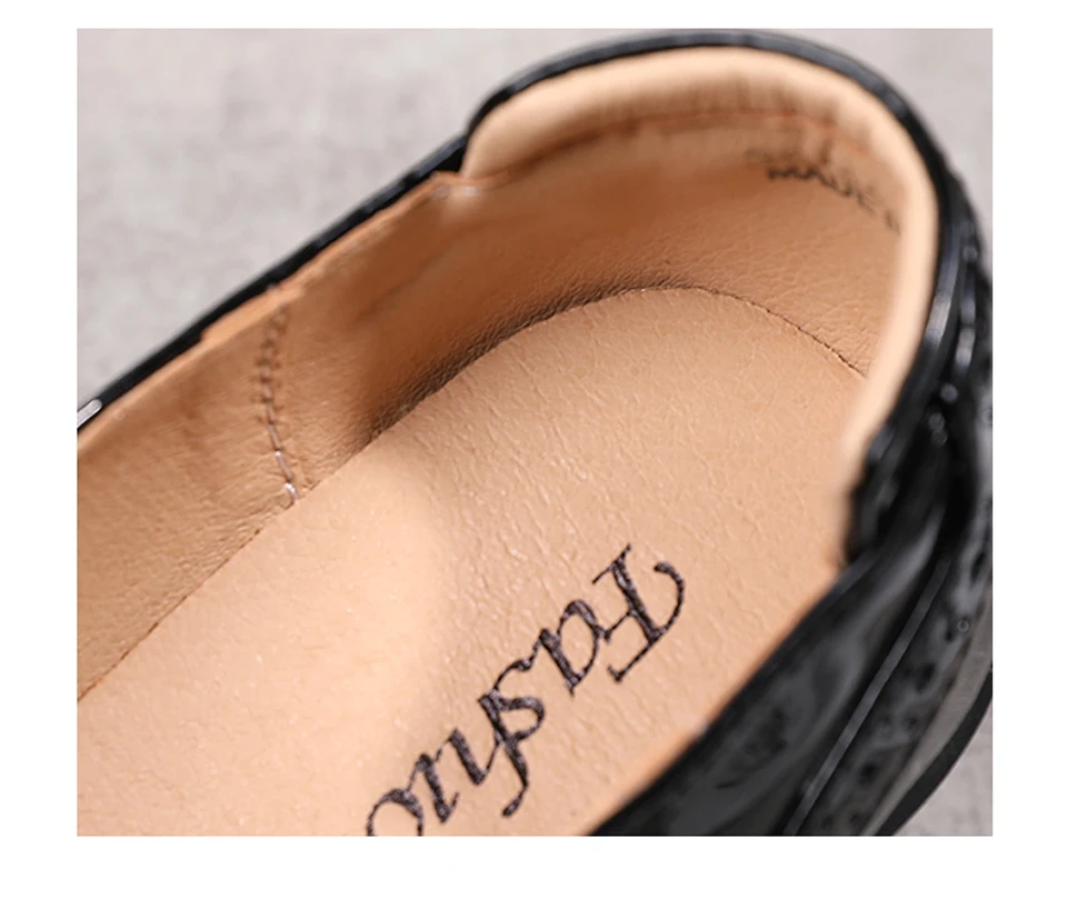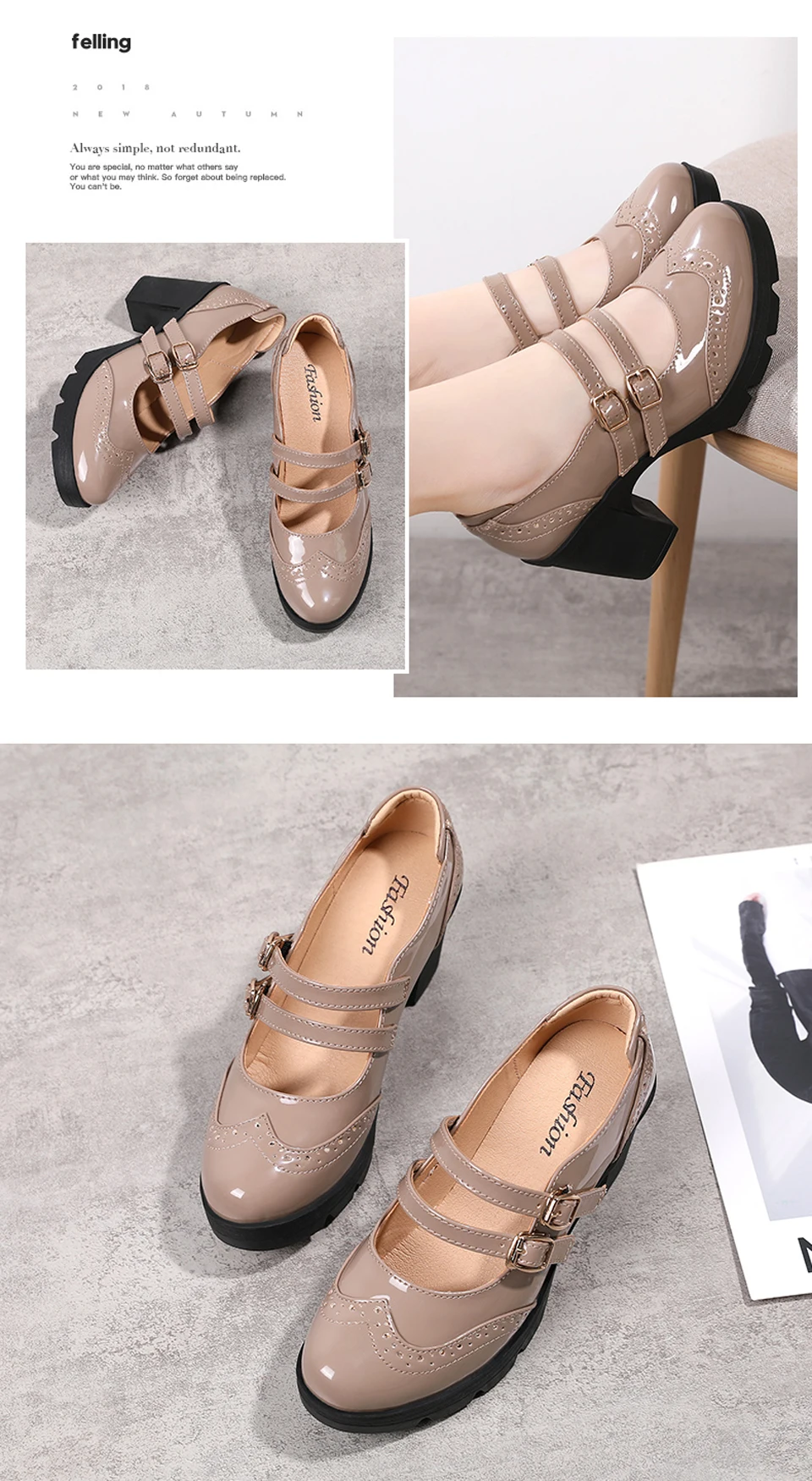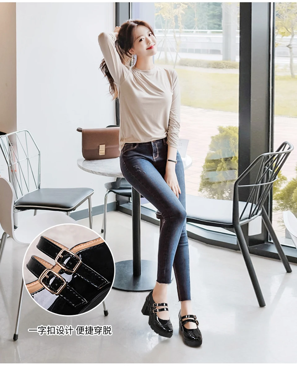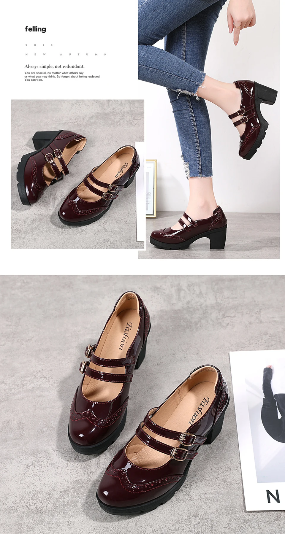 Manufacturer EOFK Women Pumps Shoes Genuine Leather New Mary Jane High Heels Shinny Patent Woman Ladies Shoes Pumps Brogue High Square Heel Pumps