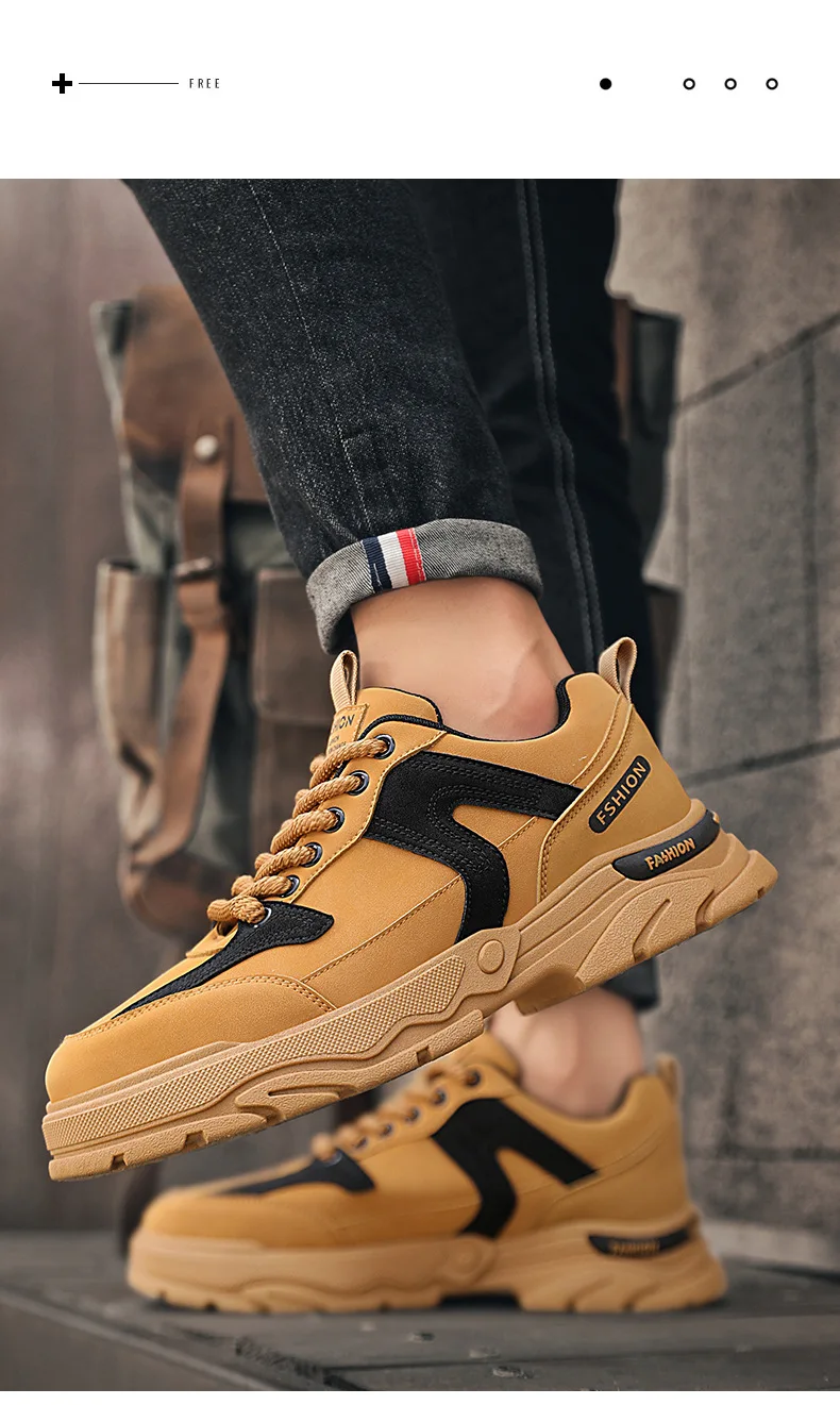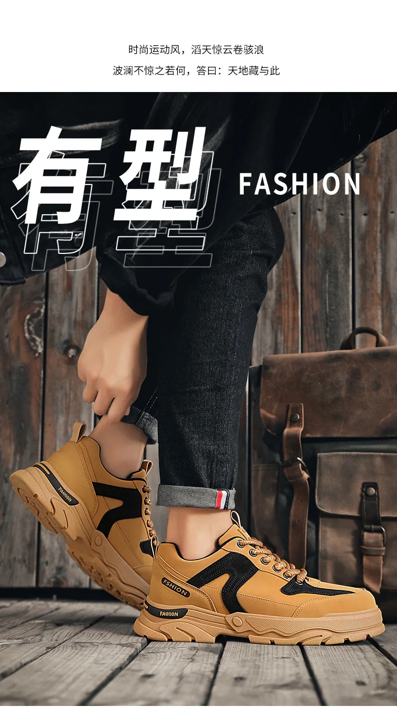 Manufacturer Fipatbu Men's Spring Casual Shoes Wearproof Leather Luxury Sneakers Chelsea Tactical Denim Combat Comfortable Work Safety Shoes Sneakers