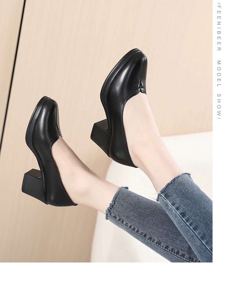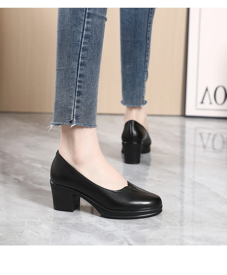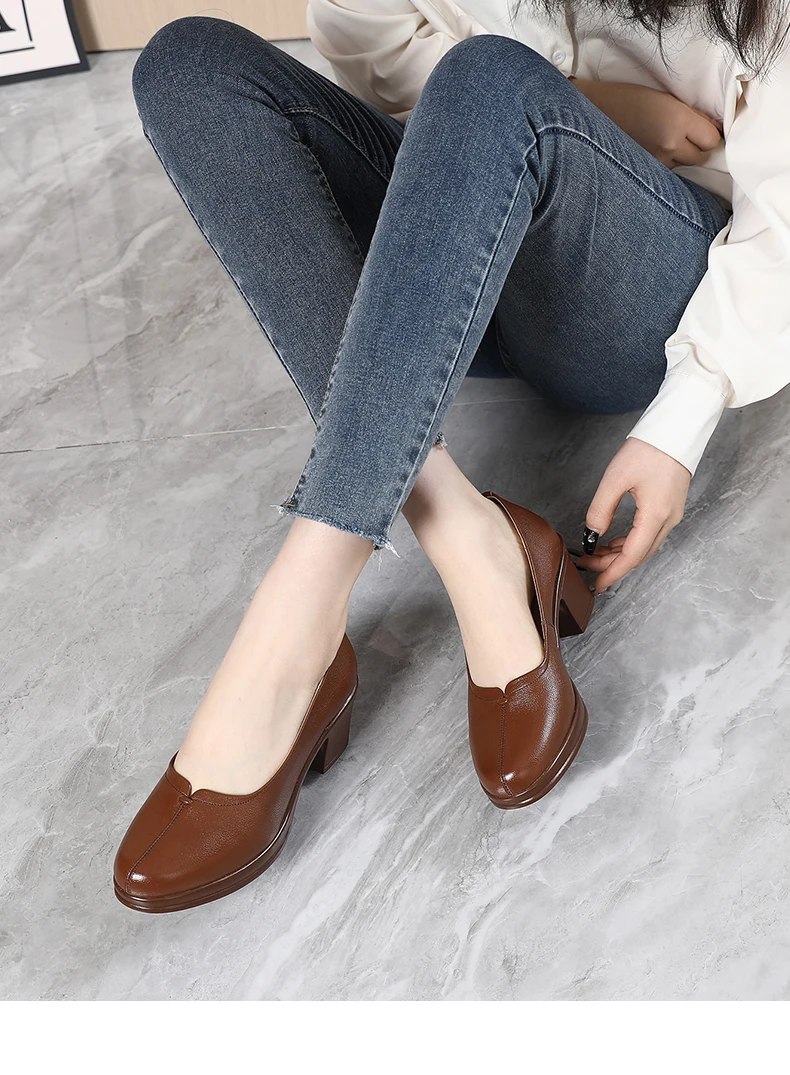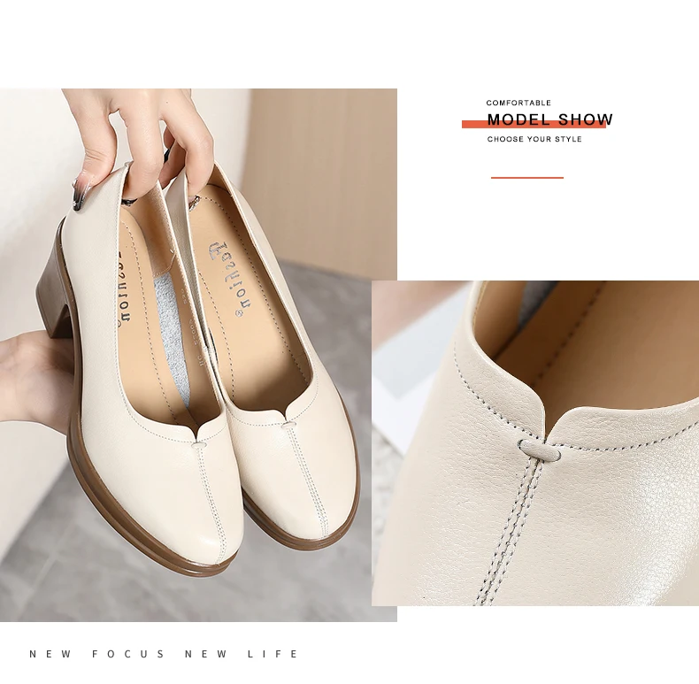 Manufacturer New Fashion Women Pumps Round Toe Thick Heels Genuine Leather Shoes Woman Spring Summer Office Ladies Shoes Comfort Pumps