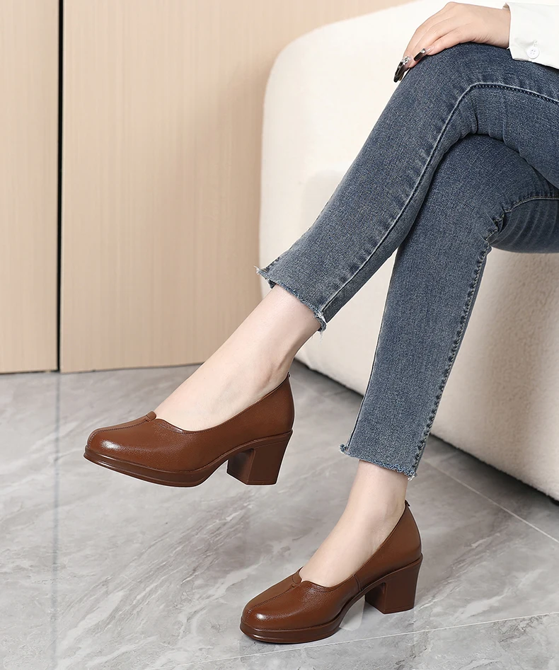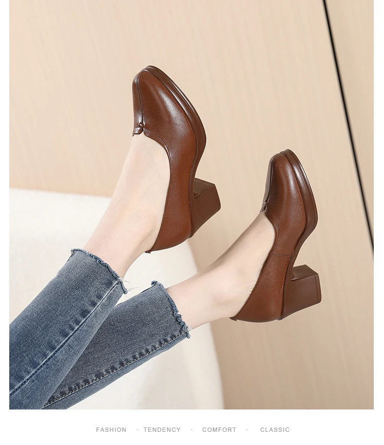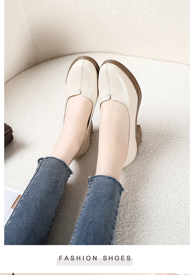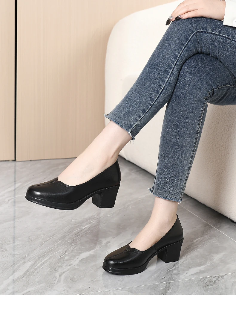 Manufacturer New Fashion Women Pumps Round Toe Thick Heels Genuine Leather Shoes Woman Spring Summer Office Ladies Shoes Comfort Pumps