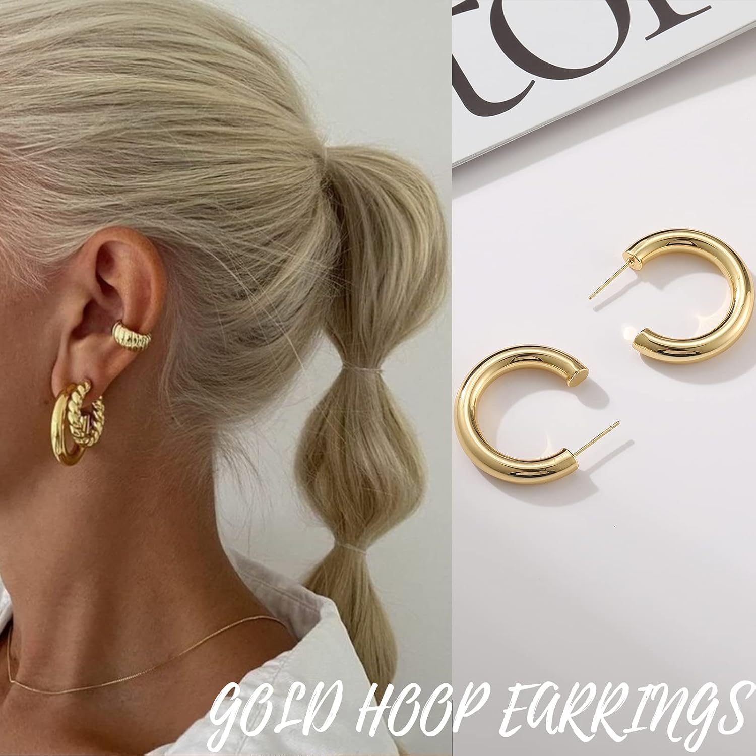 Manufacturer Hoop Earrings Set for Women, 6 Pairs 14K Gold Plated Lightweight Hypoallergenic Chunky Open Twisted Hoops Earrings Pack Jewelry earring