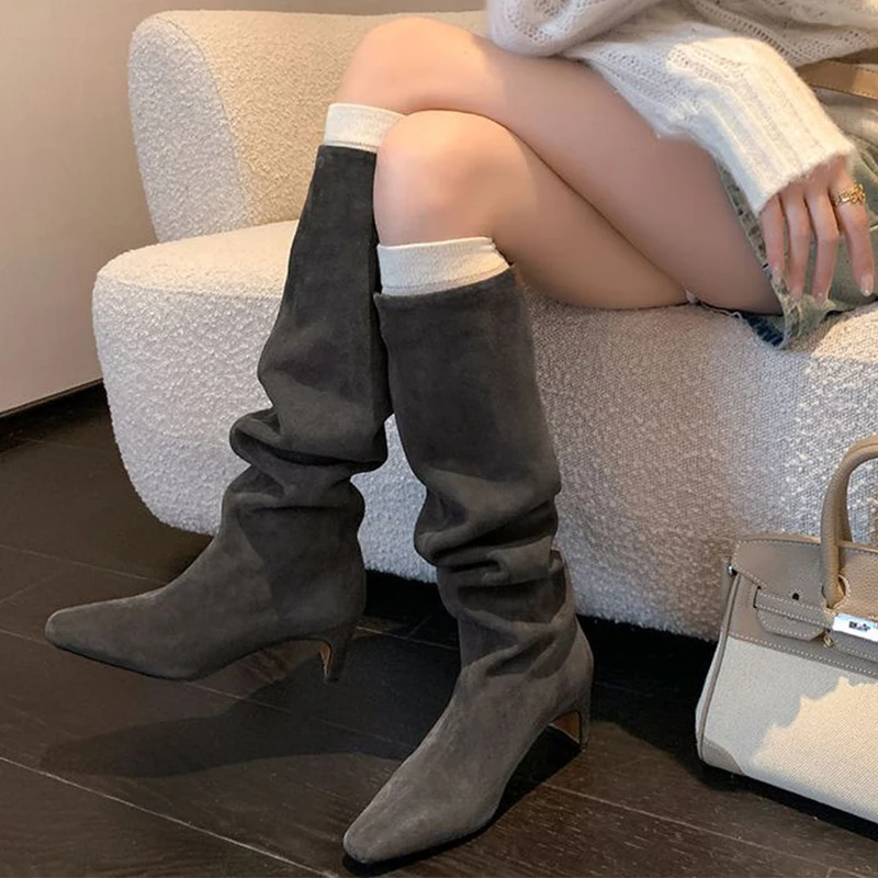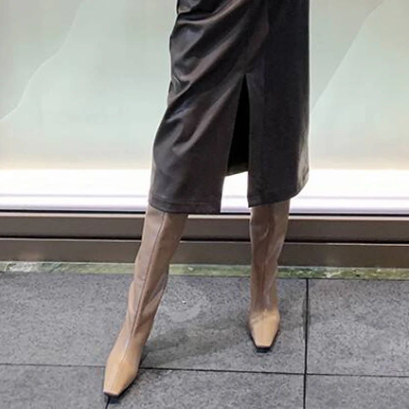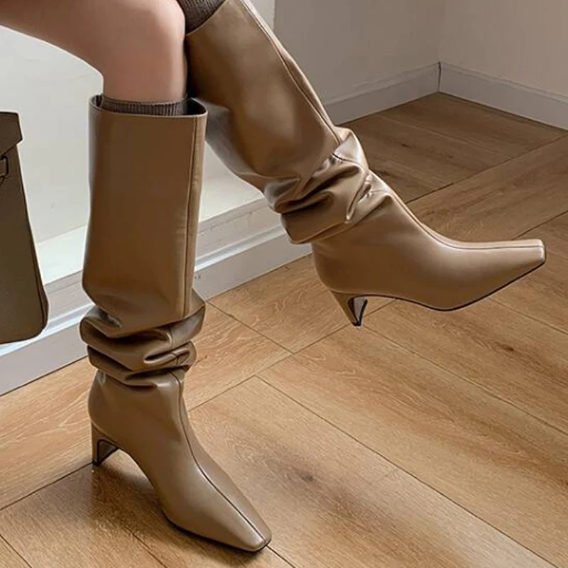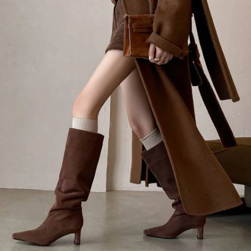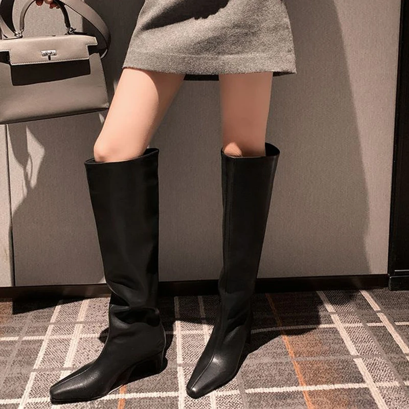 Manufacturer JOZHAMTA Size 34-43 Women Real Leather Long Boots Fashion High Heels Shoes For Winter Boots Office Lady Daily Dress Shoes boots