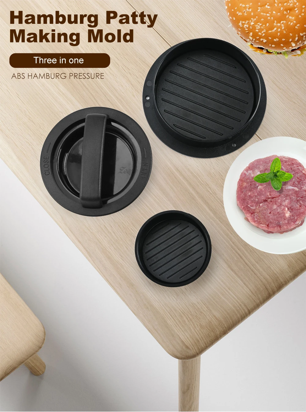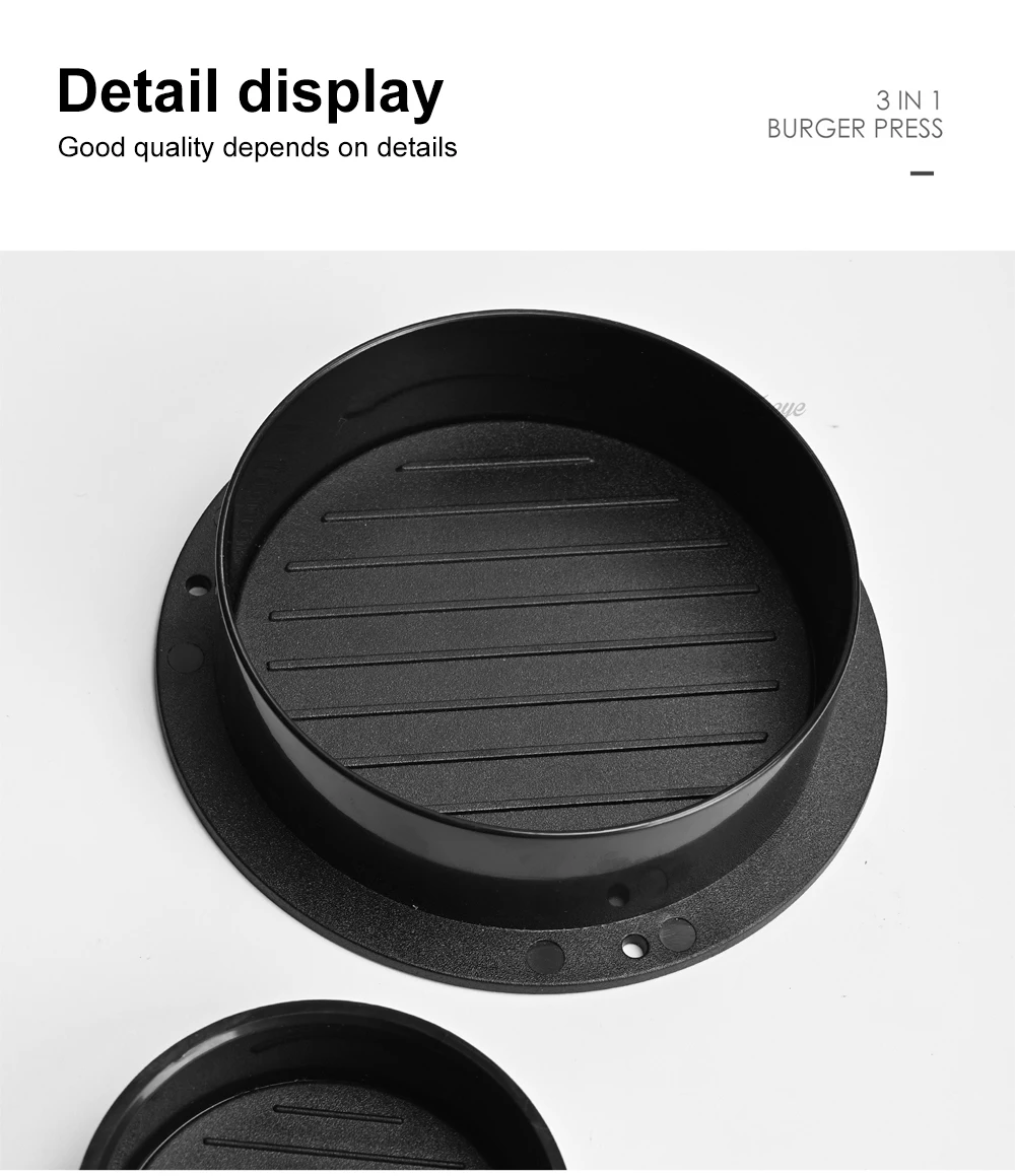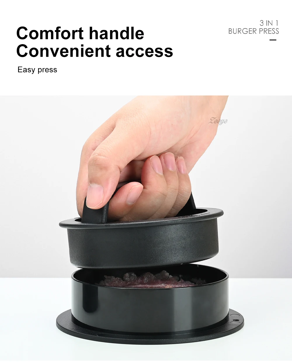 1. 3 in 1 Hamburg maker, a professional design gadget, has 3 different functions. The main three functions of the separate filling Hamburger Press are the extra Mini Burger mold, innovative design, the best filling burger and the removable bottom, keeping the pie in the same shape as you form.