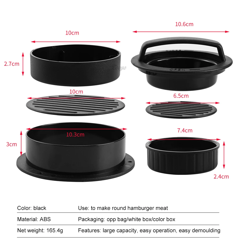 2. Non-sticky coatings - simply speaking, special hamburger printing materials can create Hamburg shapes and do not need to worry about removing them. Meat will not stick to durable non BPA sticky plastic. For example, the aluminum burger tool needs extra pies or some tools to remove the pie from the mold.