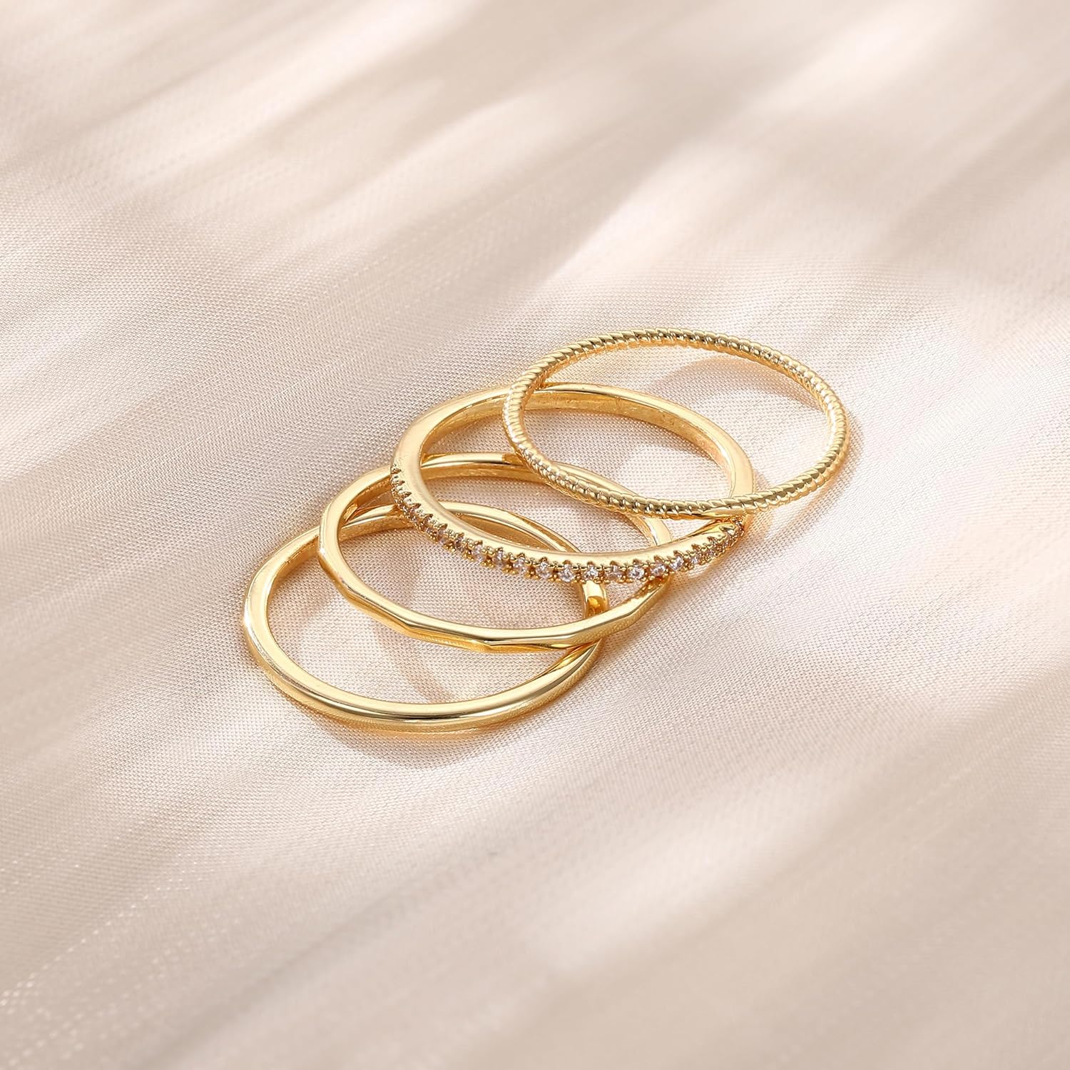 Manufacturer MILACOLATO 14K Gold Filled 1.3mm Thin Stackable Rings for Women - Minimalist Non Tarnish Half Cubic Zirconia Band Rings - Dainty Trendy Statement Stacking Rings Set Size 5-10 rings