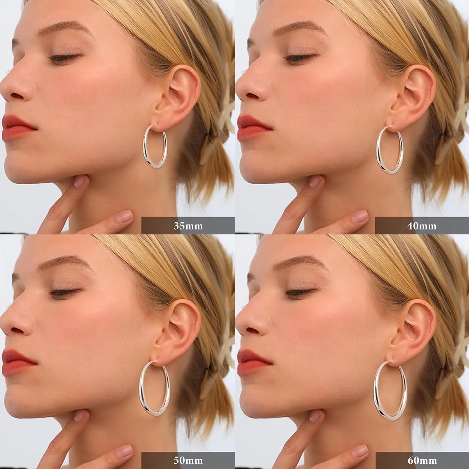 Manufacturer PABBEU S925 Sterling Silver Hoop Earrings Large Silver Hoop Earrings for Women Hypoallergenic Lightweight Big Thick Silver Hoop Earrings for Women Girls 35/40/50/60/70mm earring