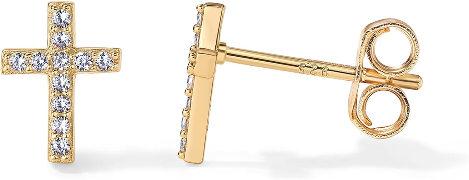 Manufacturer PAVOI 14K Gold Plated Sterling Silver Posts Cross Earrings for Women | Small Religious Faith Cubic Zirconia Cross Studs Huggies Earrings earring