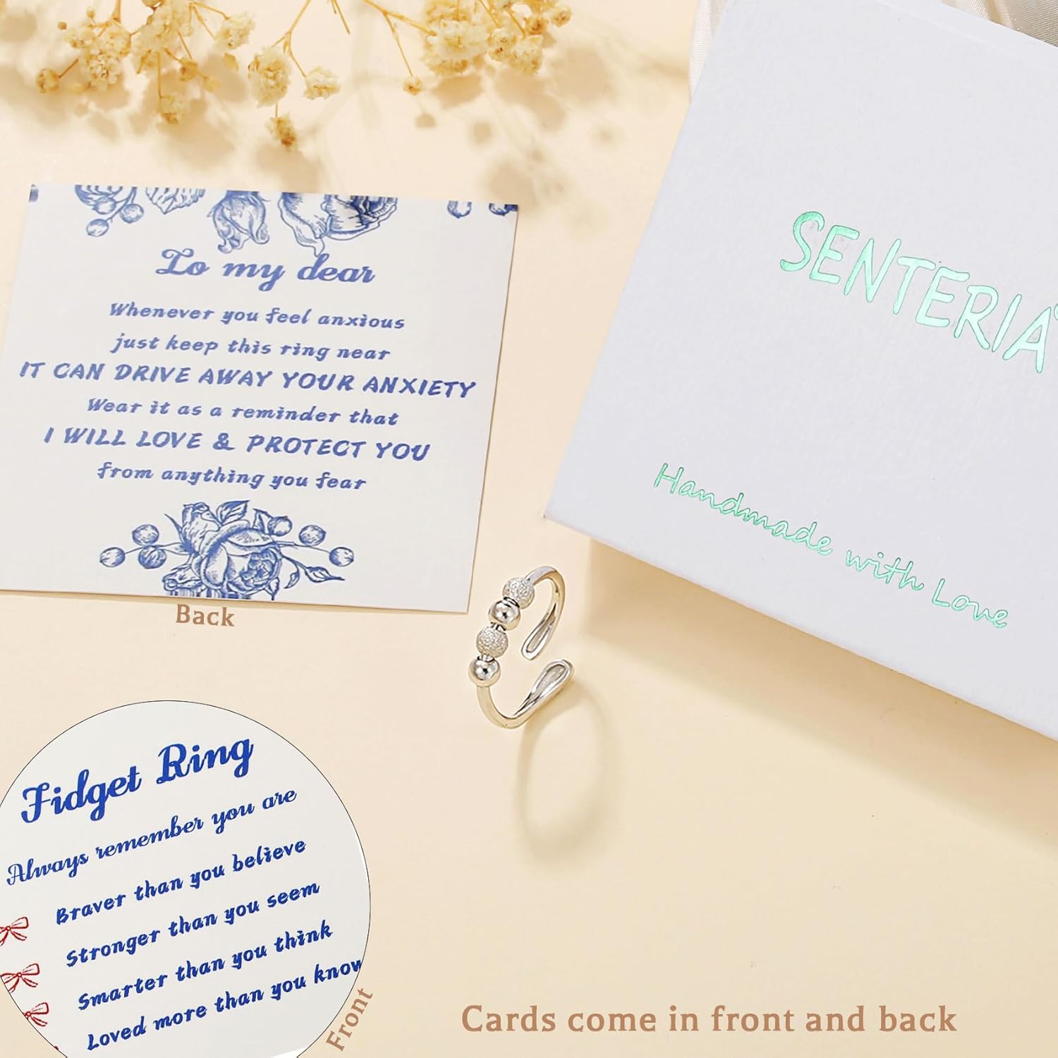 Manufacturer Senteria Anxiety Rings for Women Sterling Silver Rings Adjustable Stress Spinner Rings with Beads Fidget Rings for Anxiety Women rings