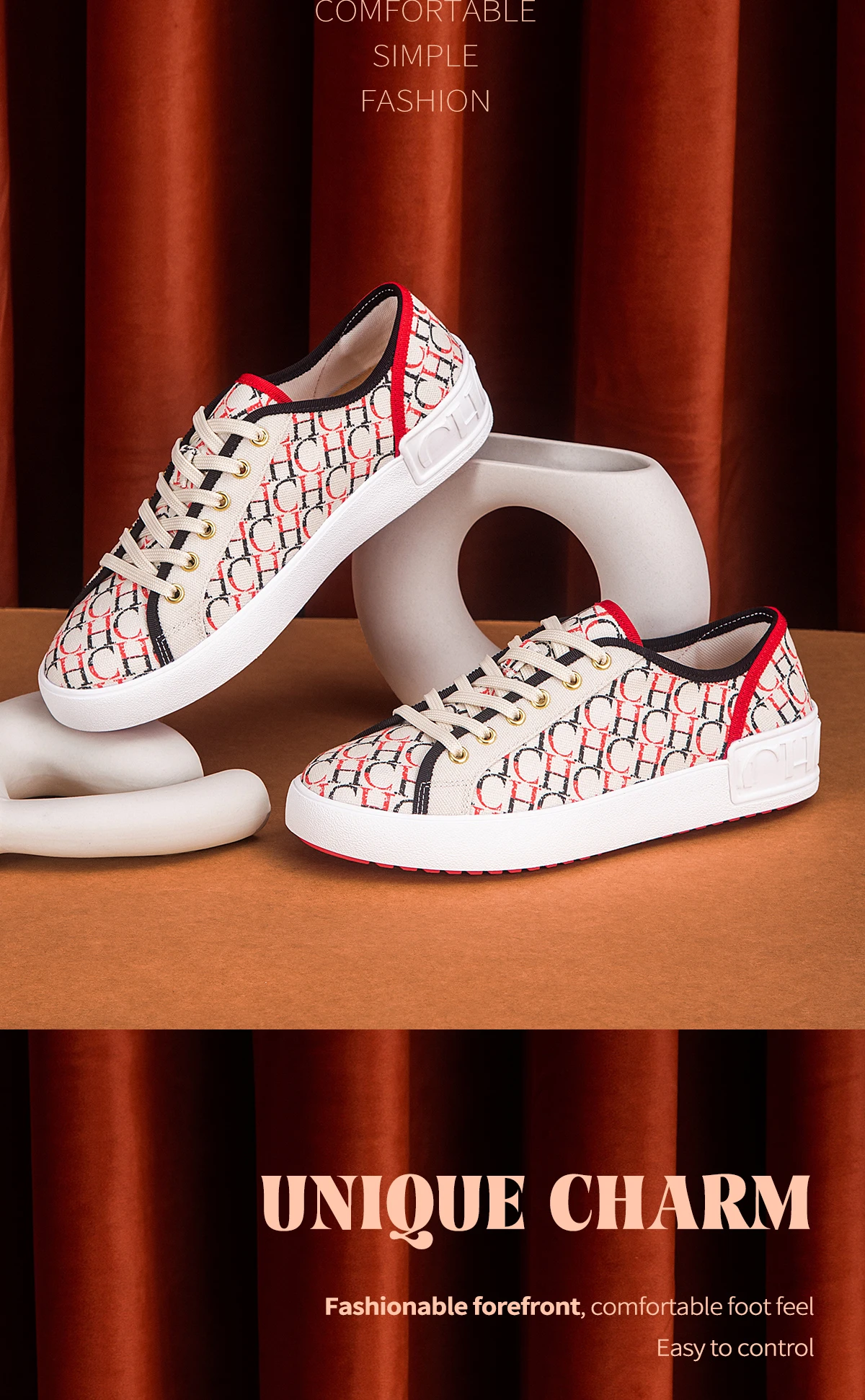 Manufacturer Shoes for woman Luxury brand canvas shoes girls' casual shoes, lace-up flat sneakers student-style lettered casual shoes boots