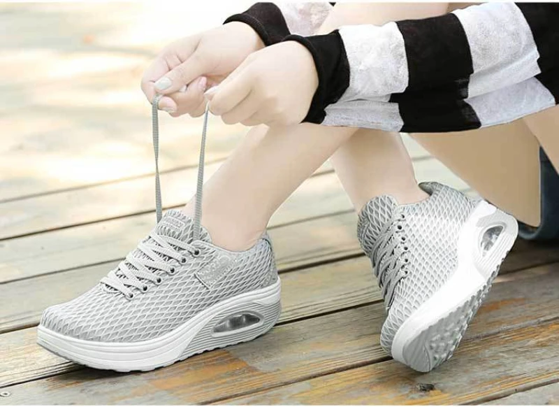 Manufacturer Spring Breathable Large Net Rocking Shoes For Women Fashionable Sports And Casual Shoes Korean Style Mesh Thick Sole Comfortable Sneakers