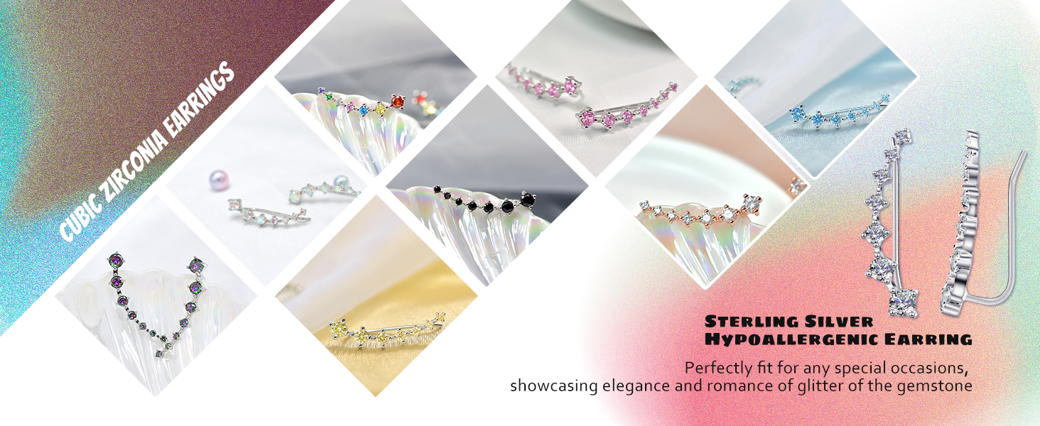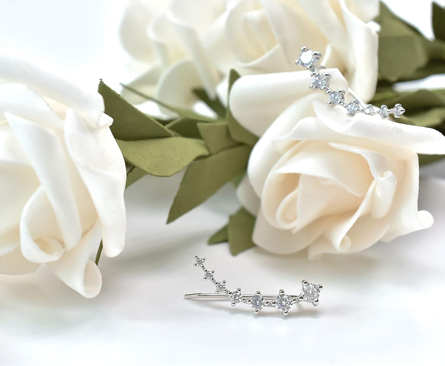 Manufacturer Sterling Silver 7 Crystals Ear Cuffs Climber Cartilage Earrings Dainty Trendy Jewelry Hypoallergenic Fashion Earring Charms Birthday Gift for Women earring