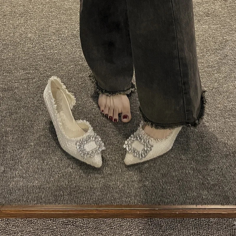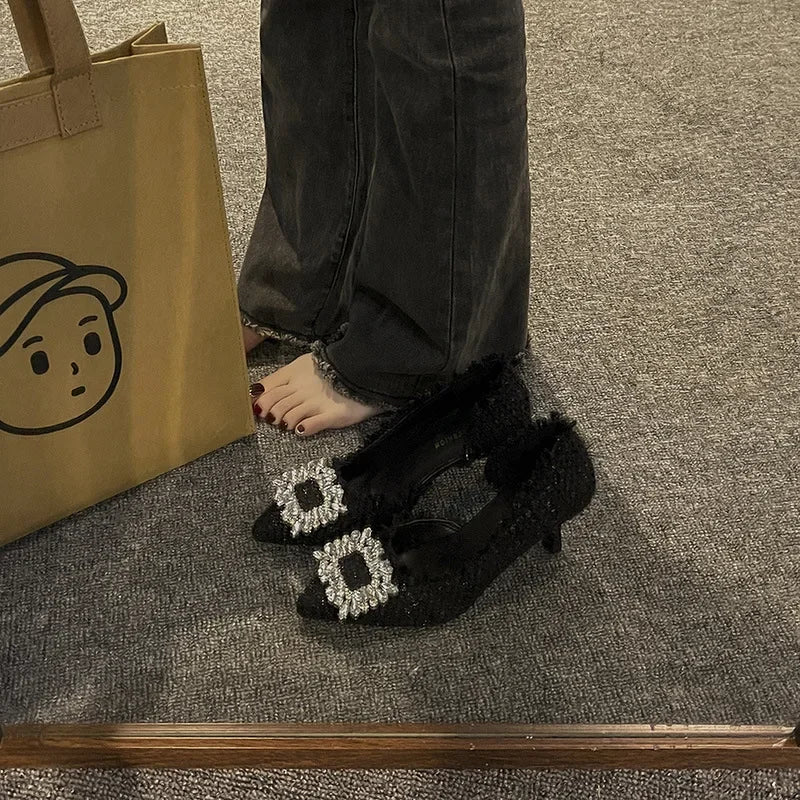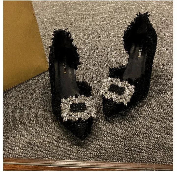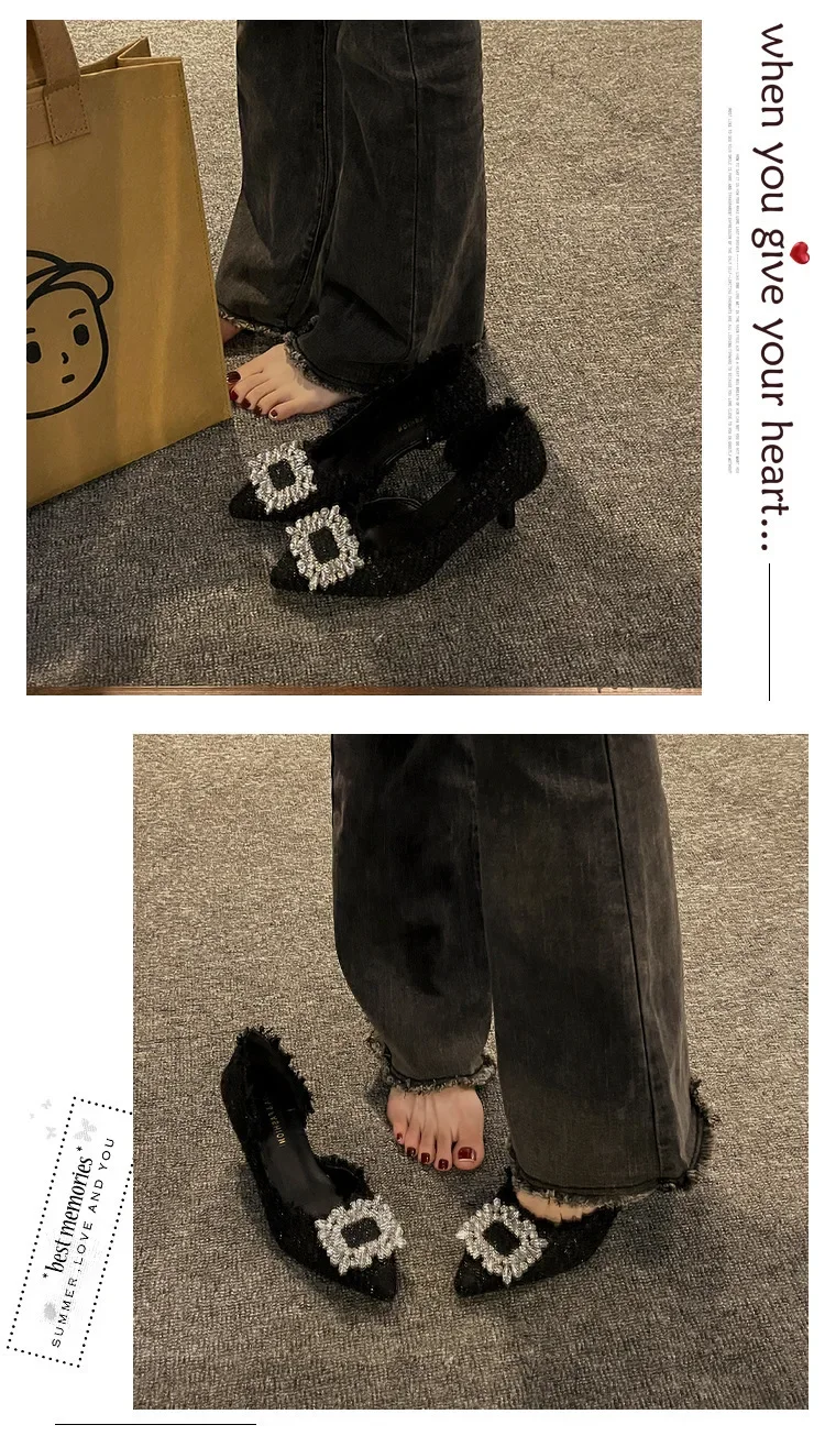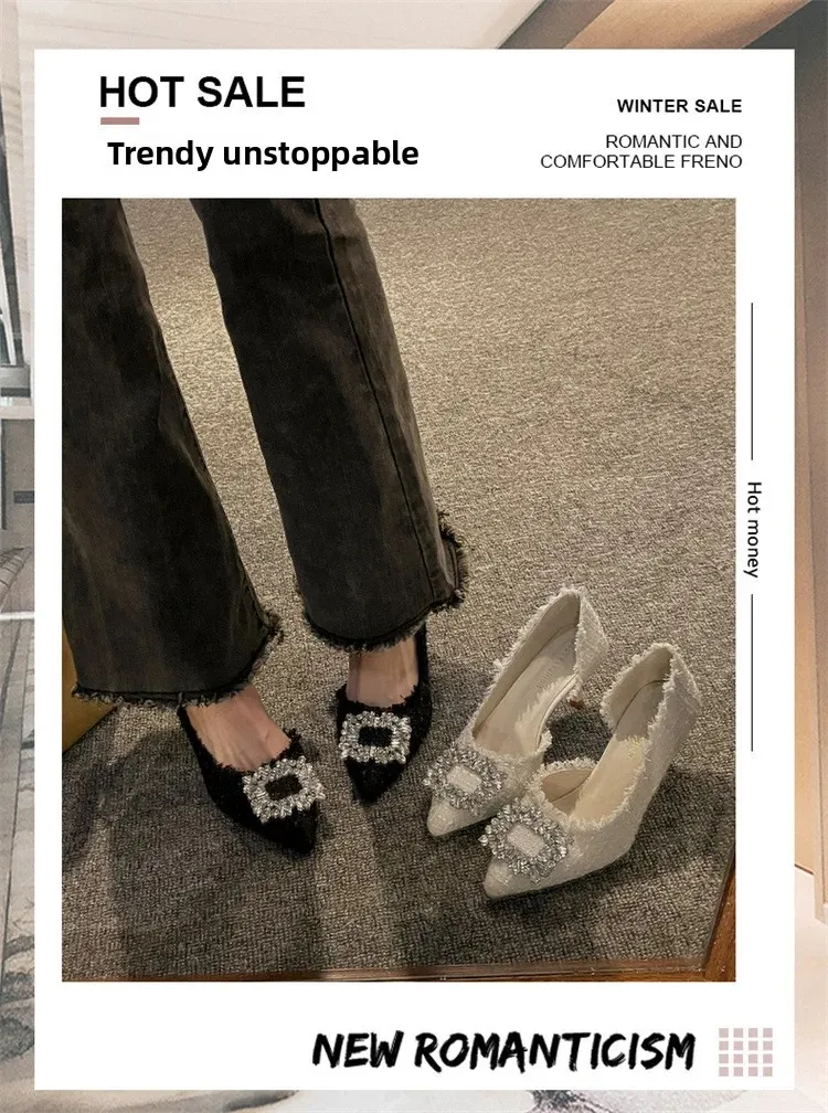 Manufacturer Summer French Design Pointed Toe High Heels Crystal Embellished Slim Stiletto Women's Single Shoes Elegant Minimalist Footw Pumps