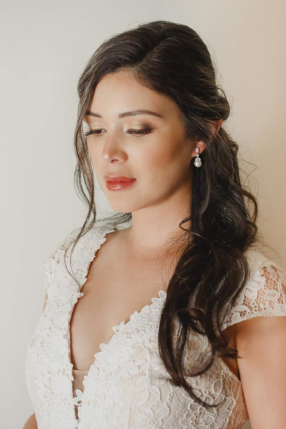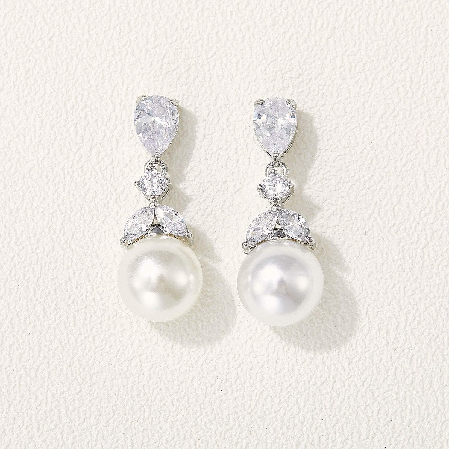 Manufacturer SWEETV Cubic Zirconia Pearl Drop Wedding Earrings for Brides, Ivory Bridal Pearl Earrings for Bridesmaid Jewelry Gift earring