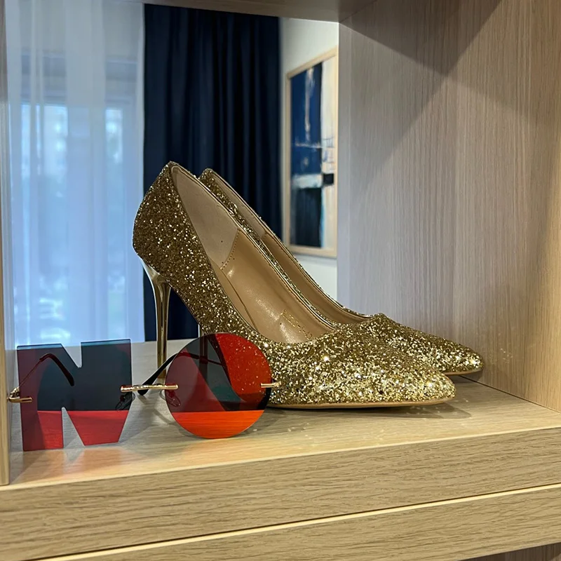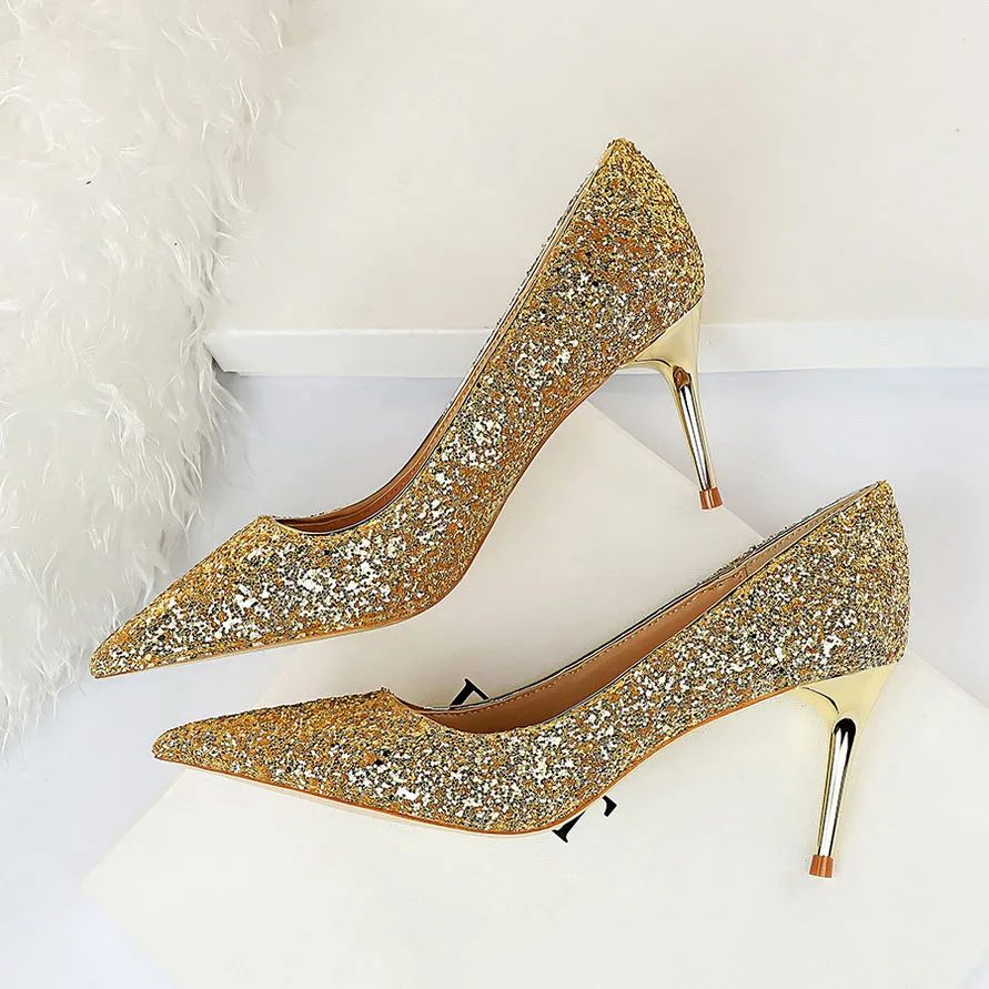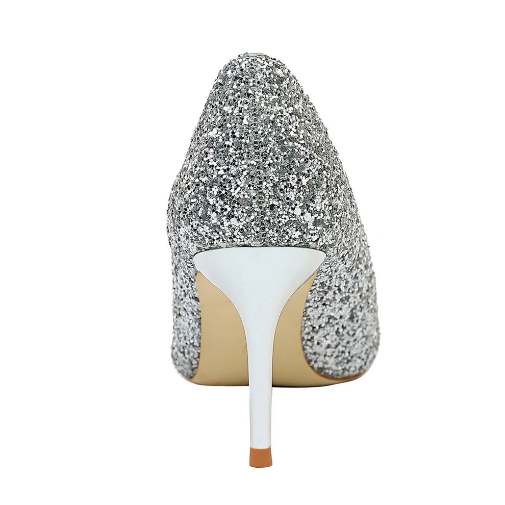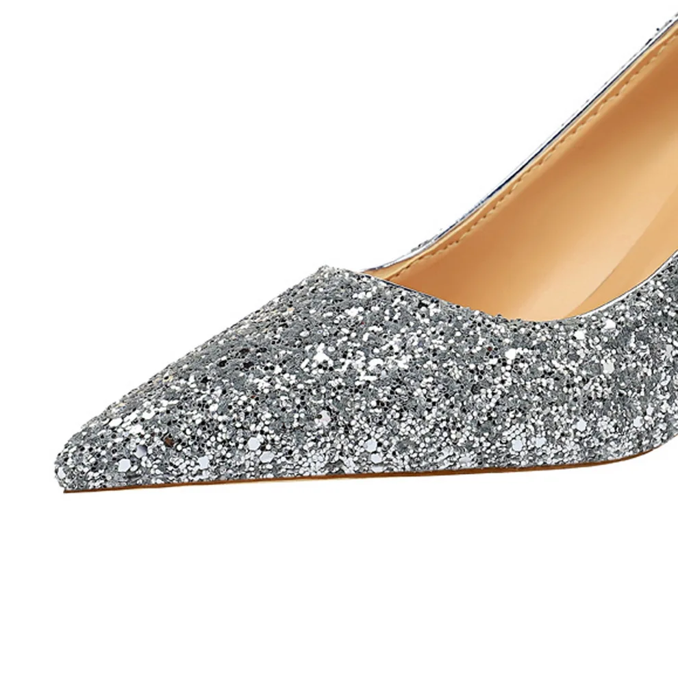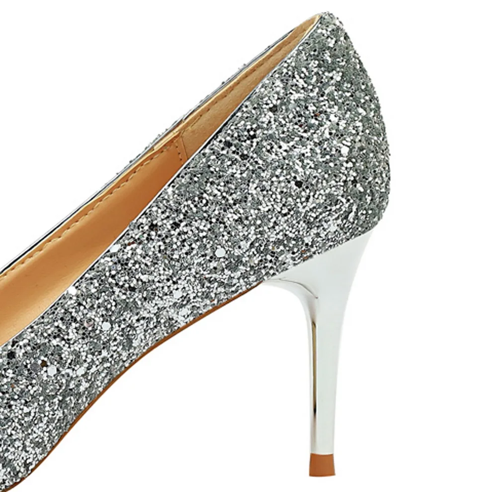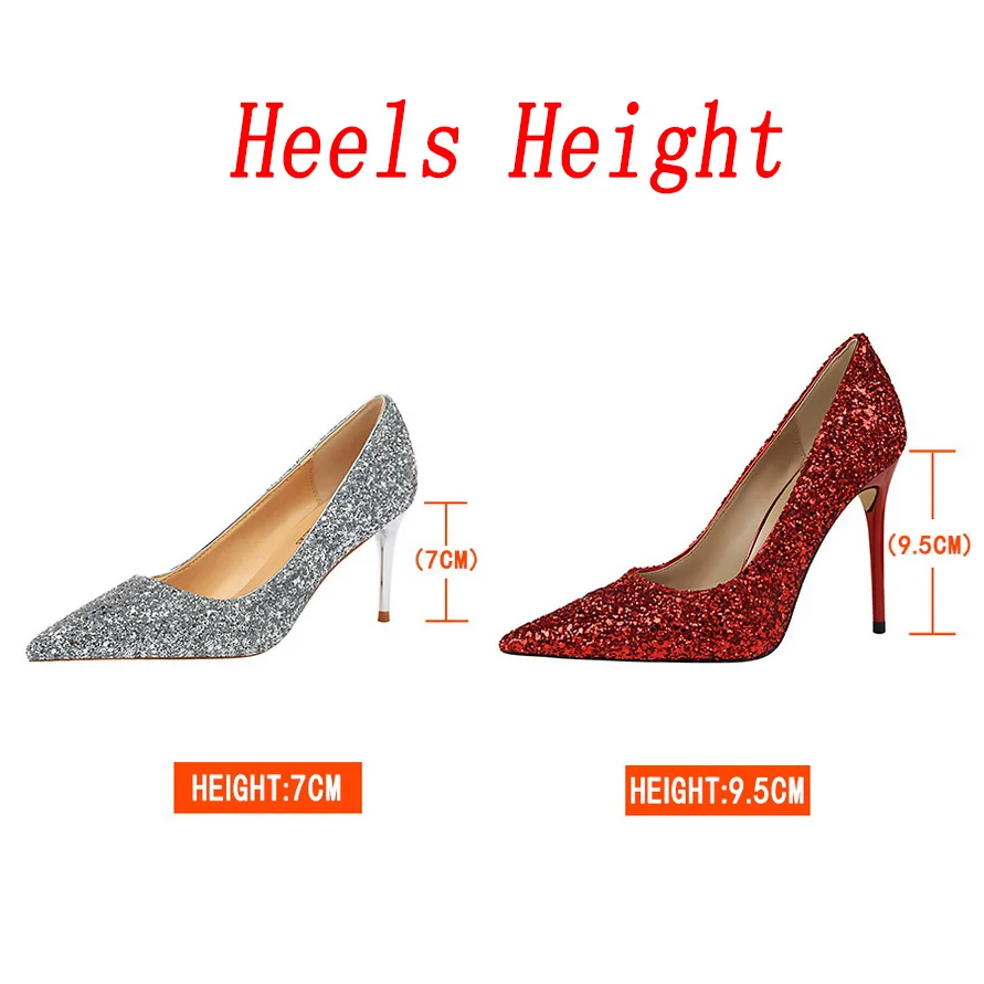 Manufacturer Women 7cm 9.5cm High Heels Pumps Wedding Bridal Scarpins Sparkly Mid Heels Lady Party Sequins Glitter Evening Gold Silver Shoes Pumps