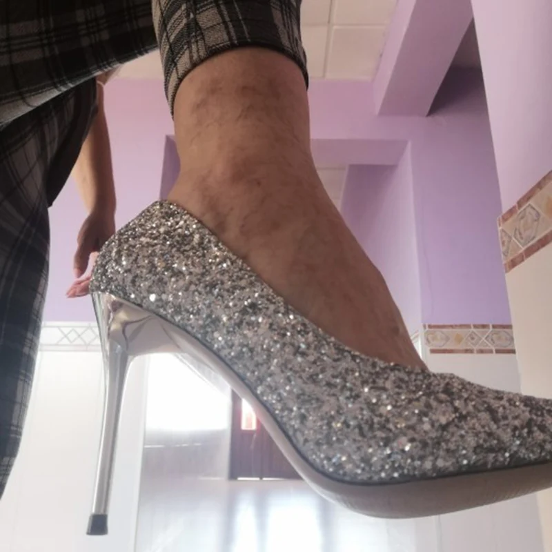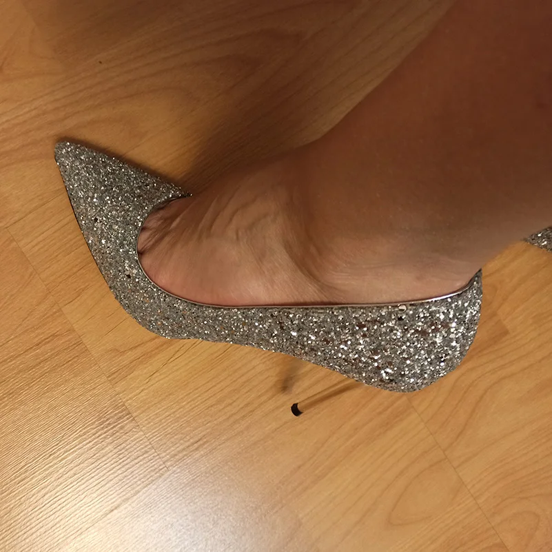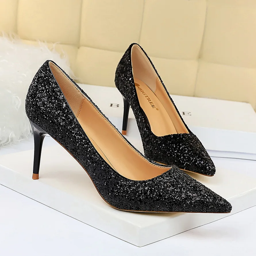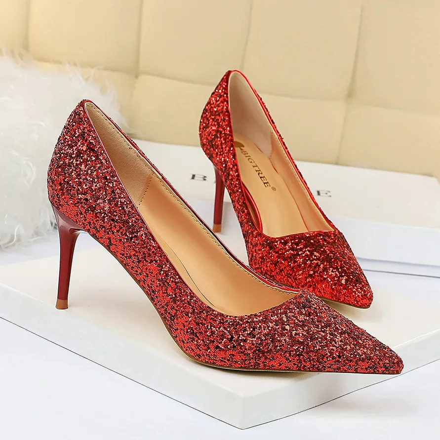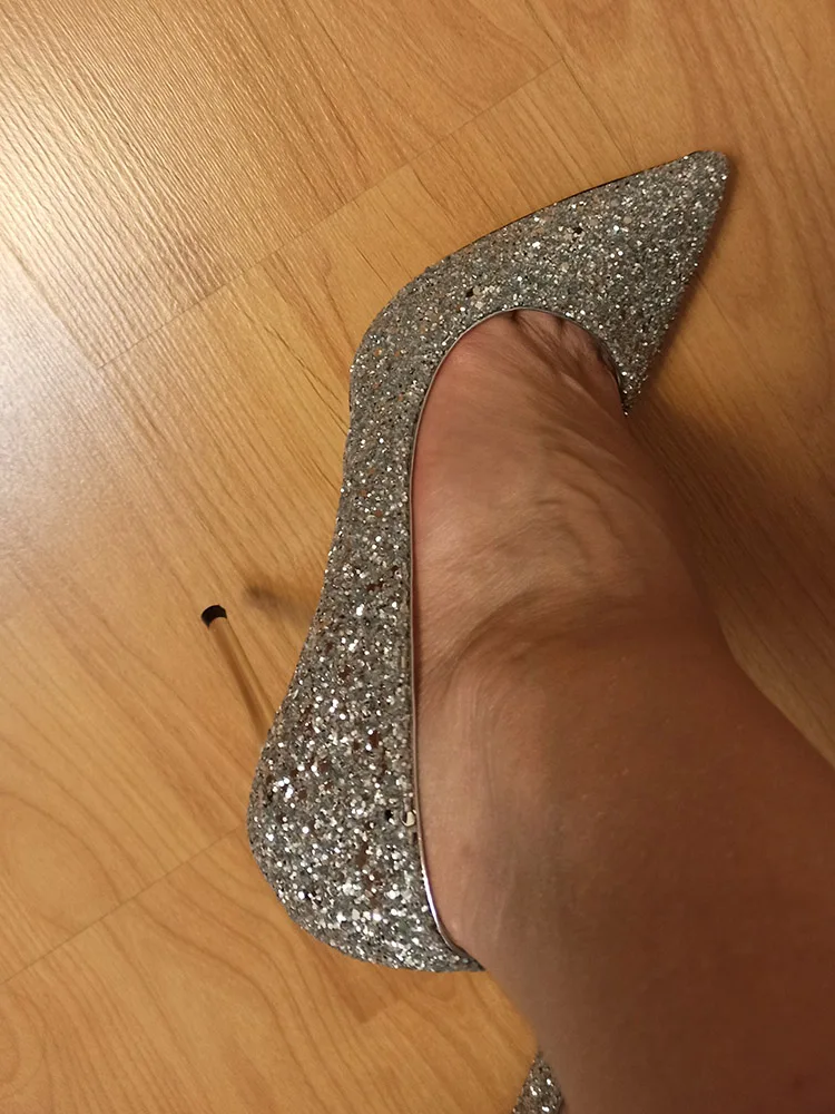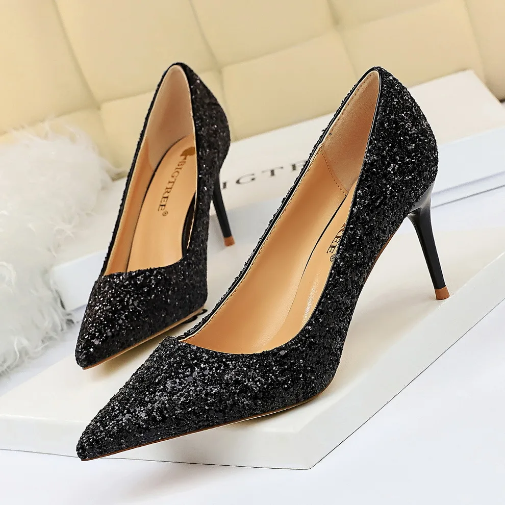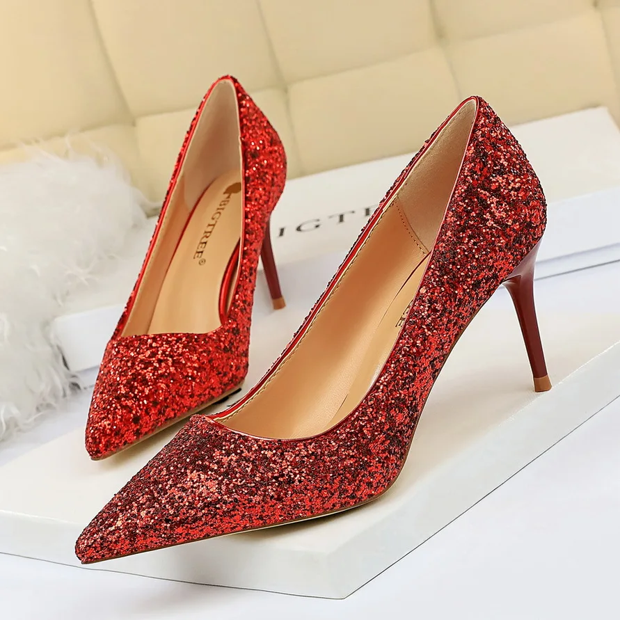 Manufacturer Women 7cm 9.5cm High Heels Pumps Wedding Bridal Scarpins Sparkly Mid Heels Lady Party Sequins Glitter Evening Gold Silver Shoes Pumps