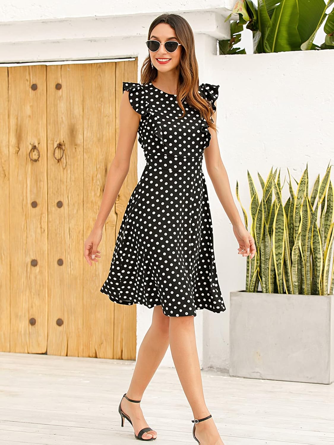 Design Feature: This women's dresses have Ruffle Trim Sleeve, O-neck,Semi-swing style design.