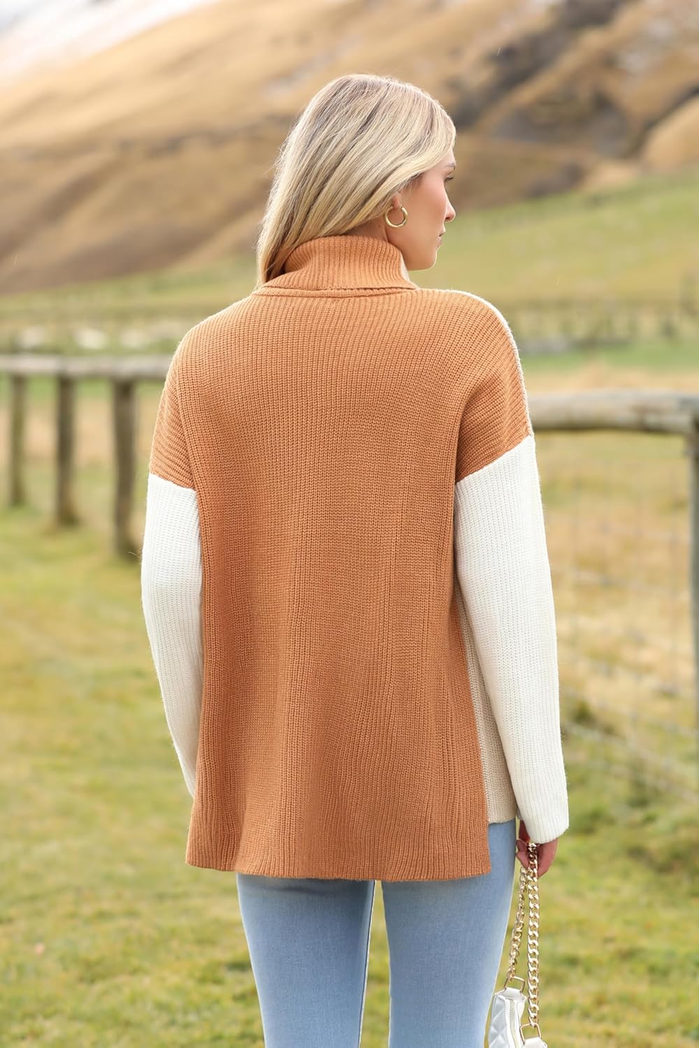 Manufacturer Zeagoo Womens Turtleneck Sweater Fall Fashion Long Sleeve Chunky Knitted Pullover Color Block Trendy Jumper Top sweaters