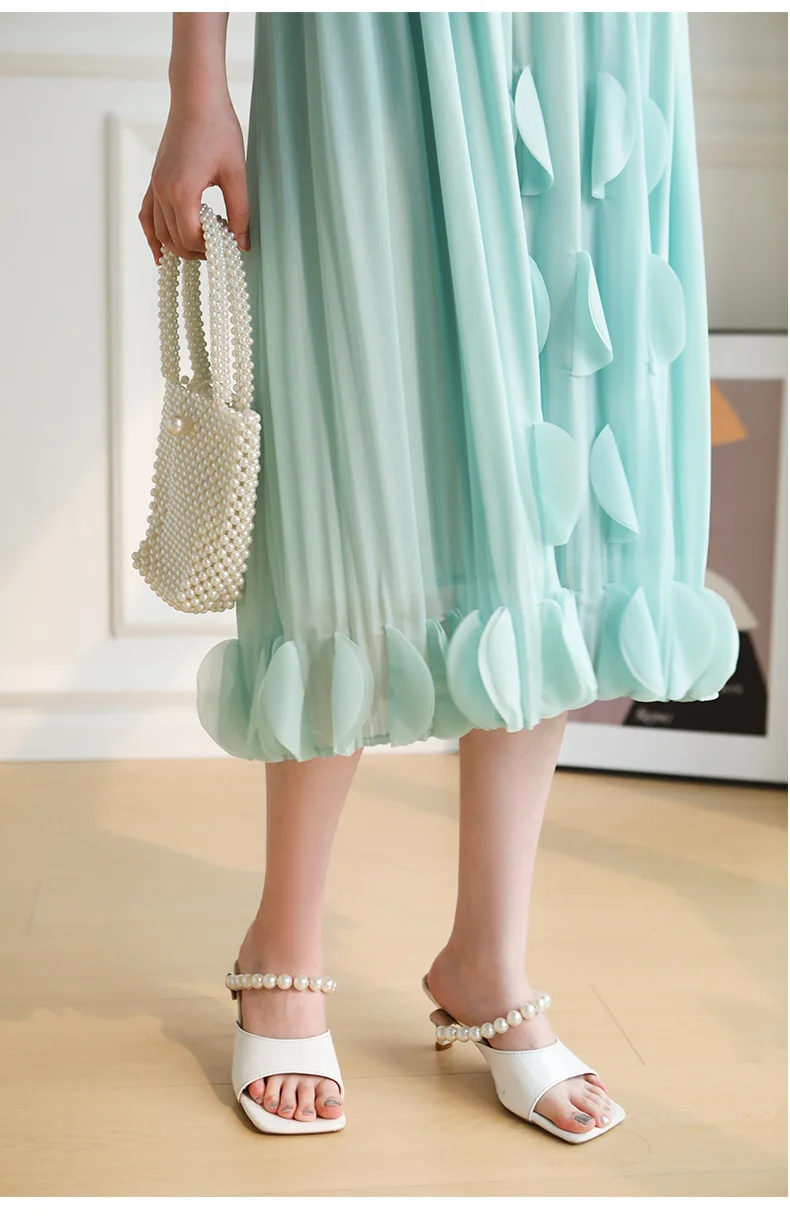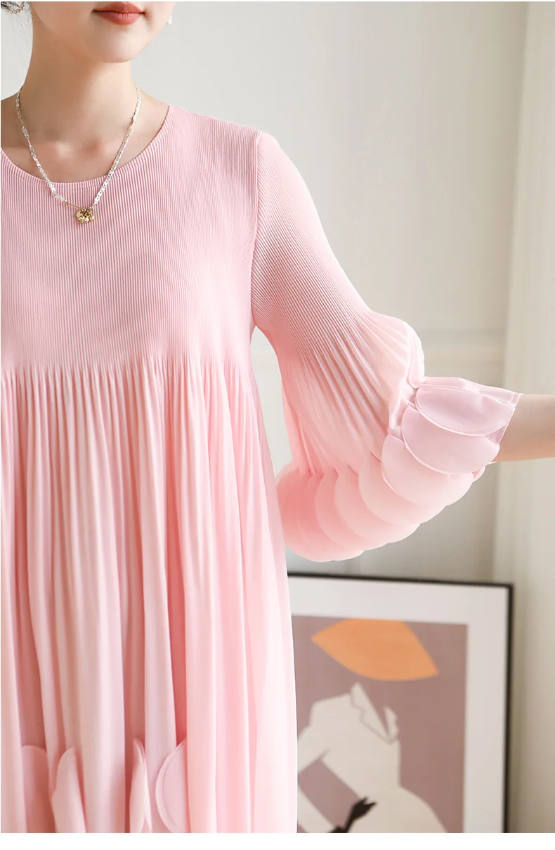 Miyake Pleated Spring/Summer New Heavy Industry Pluse-sized Women's Dress, Fashionable Patchwork Long Dress