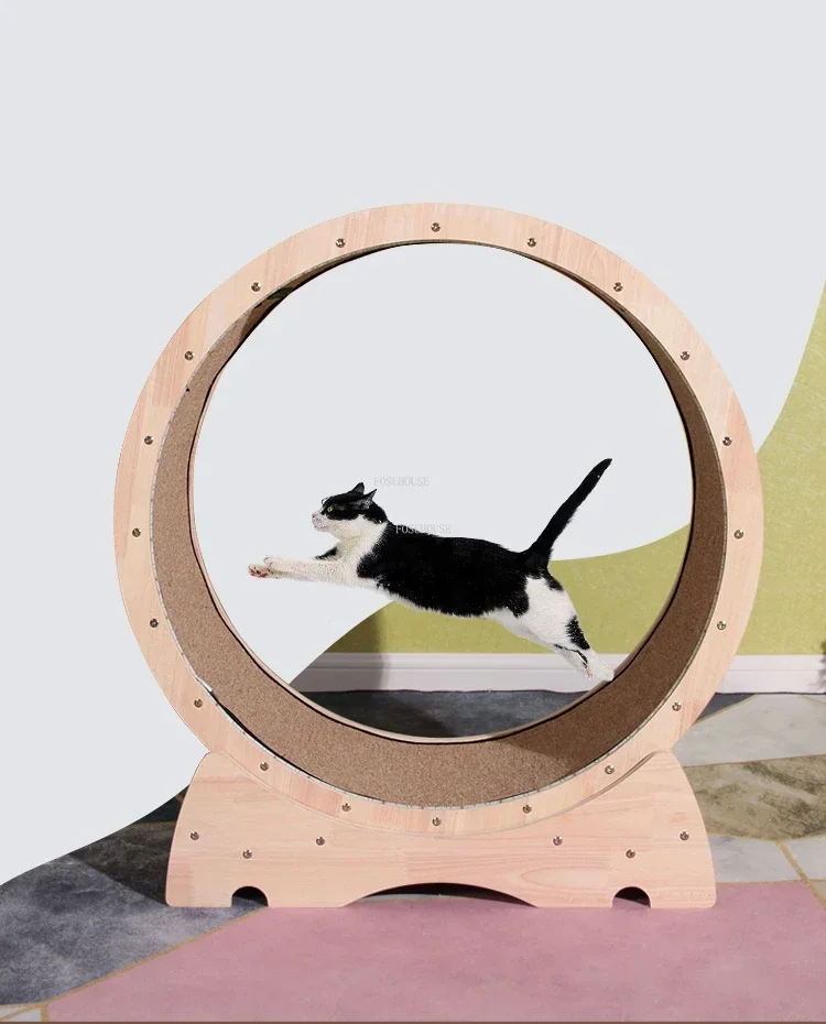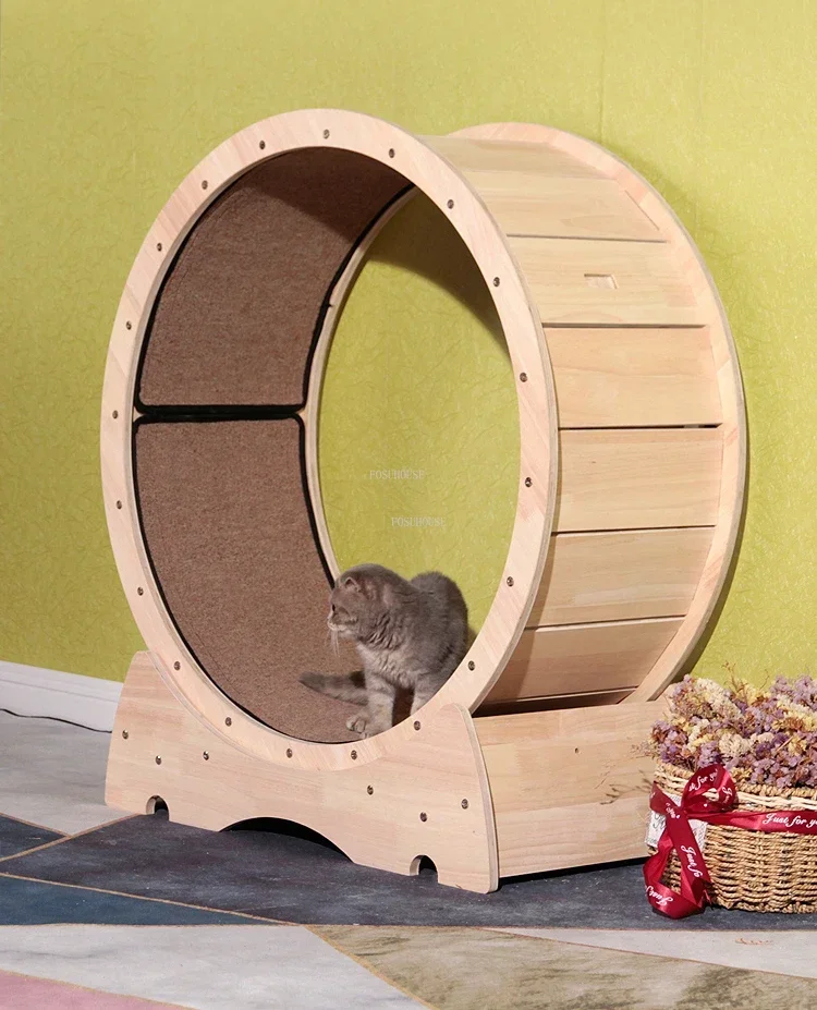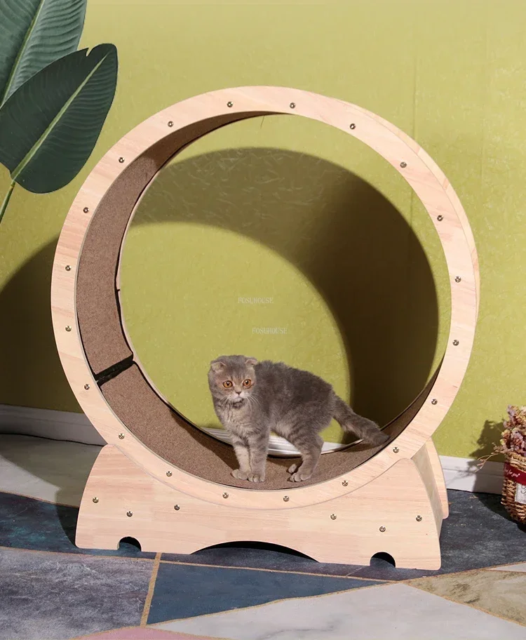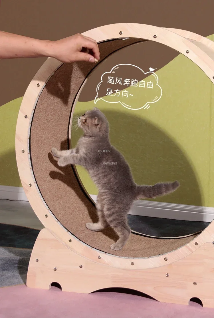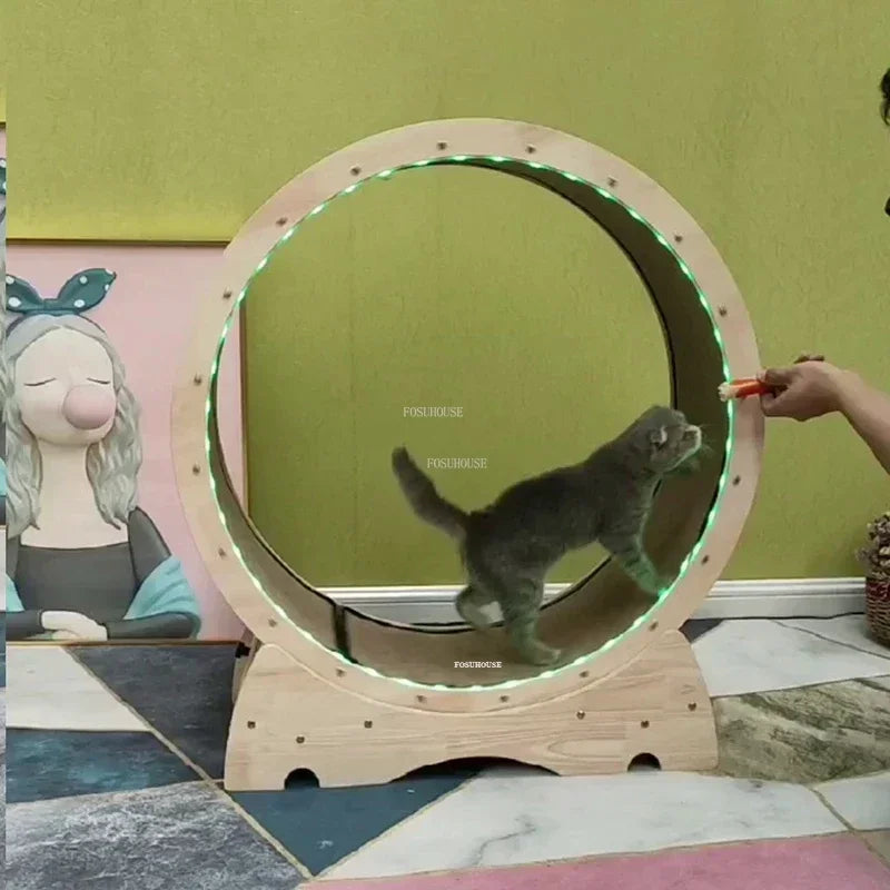 Modern Cats Toys Treadmill Home Pet Supplies Solid Wood Pet Accessories Cat Weight Loss Roller Running Wheel Frame with Light
