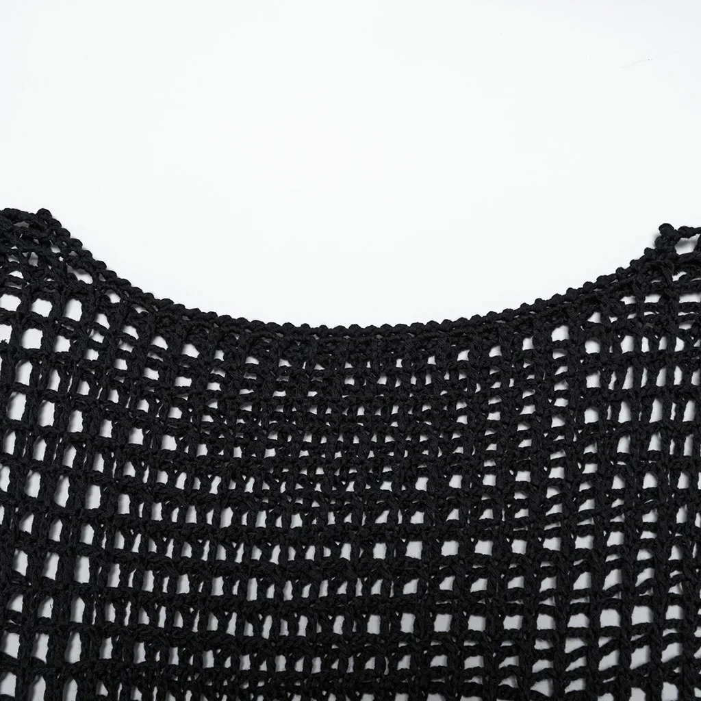 PUNK RAVE Women's Gothic Sexy Hollow Out Tassels Sweater Decadent Personalized Pointed Design Dark Loose Tops Pullovers