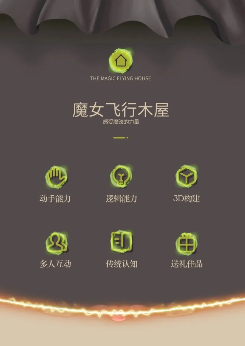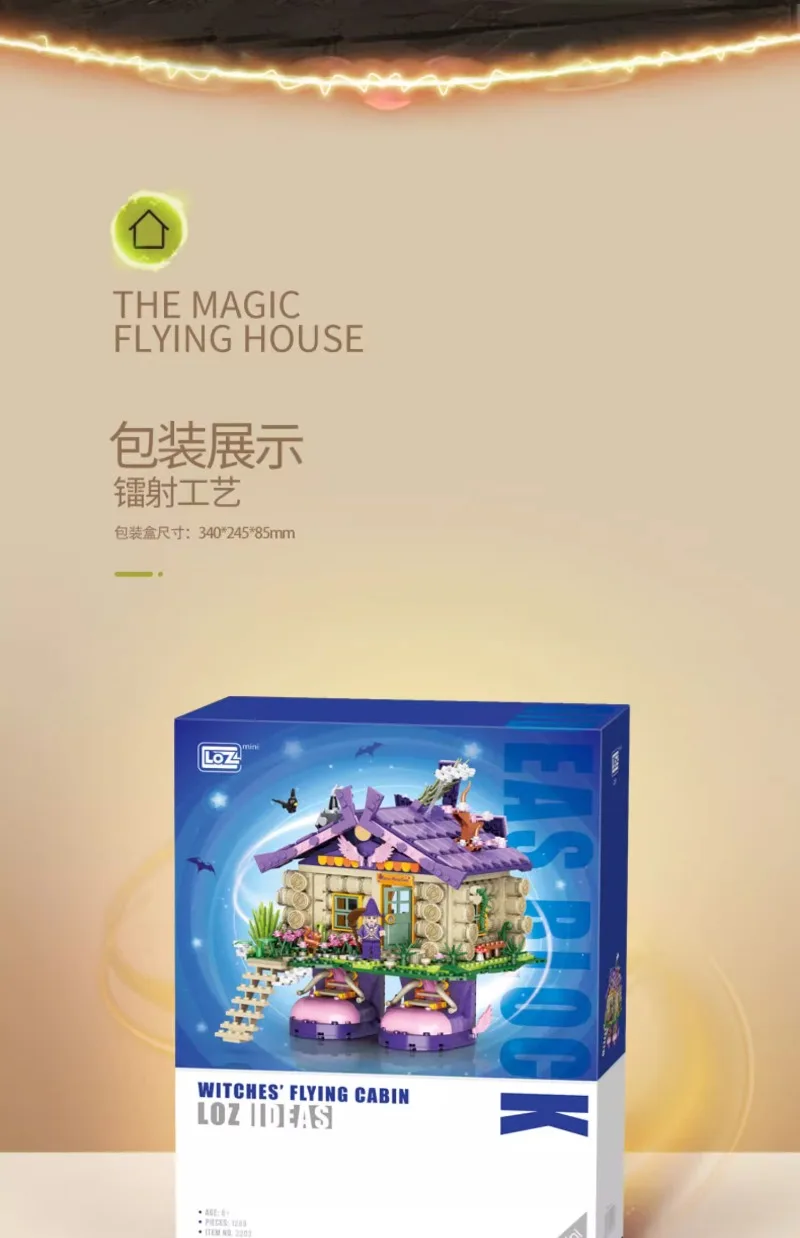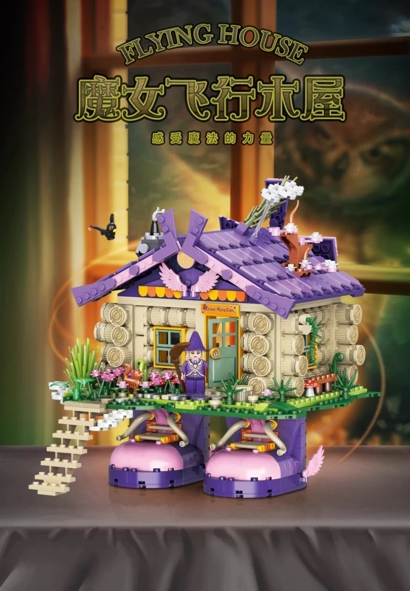 Witch Flying Log Cabin Building Blocks Magic Wooden House Model Ornaments Children’s Educational Assembled Toys Halloween Gifts