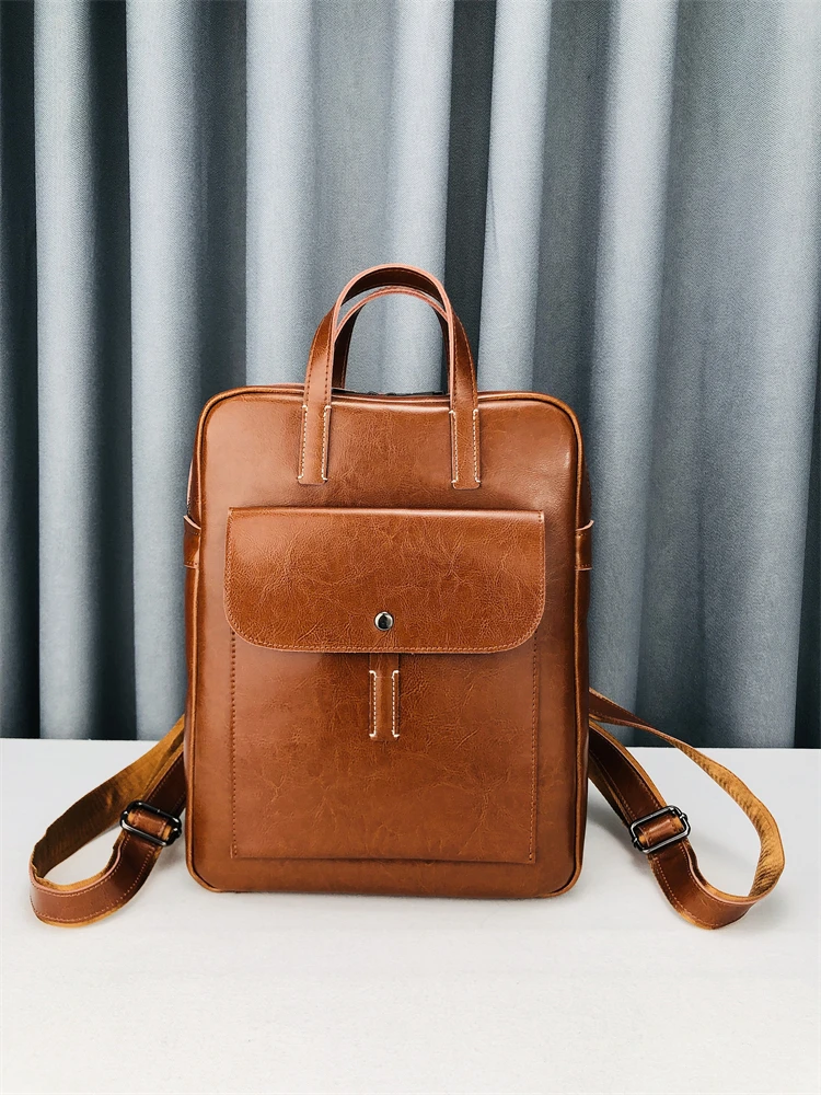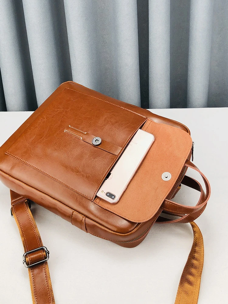 Women High Quality Cow Leather Backpack Preppy Style Teenager Girls Schoolbag Vintage Laptop Packing Satchel Unisex Shoulder Bag